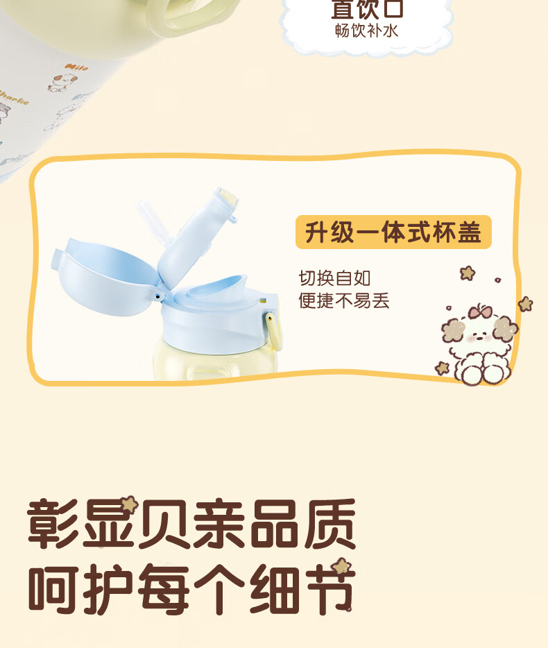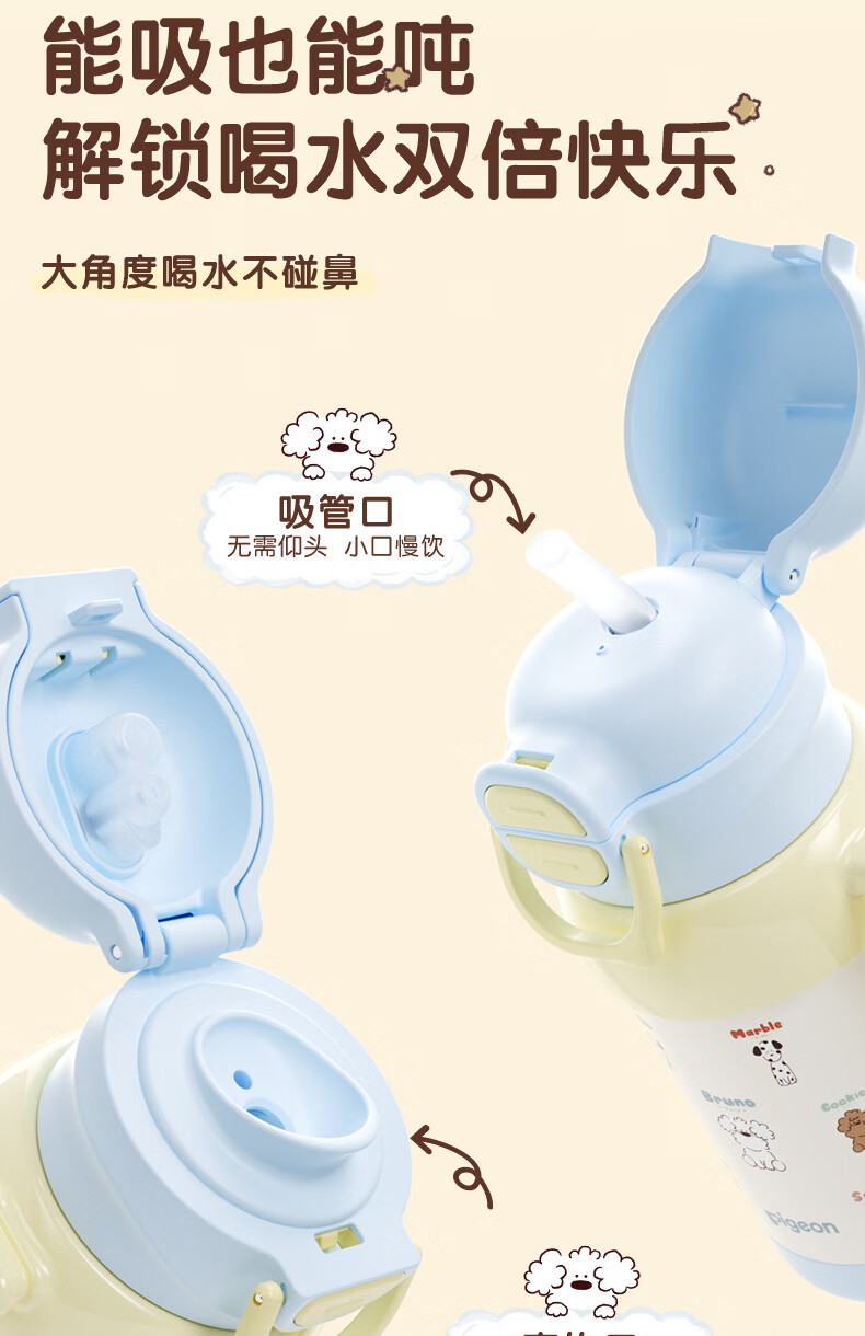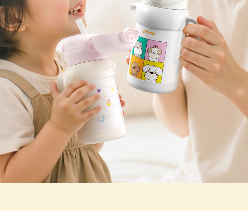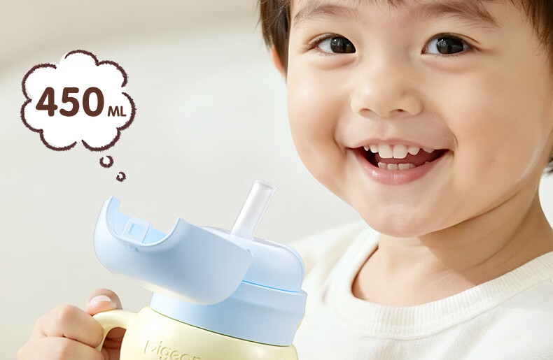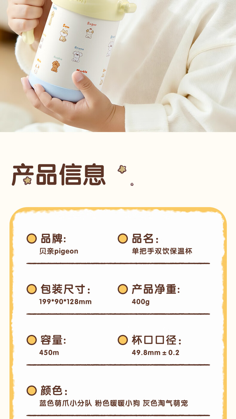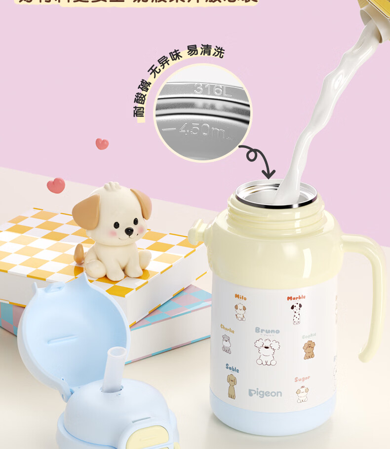 贝亲水杯保温杯 保冷杯单手柄 双饮儿童水杯450ML (灰色淘气萌宠)