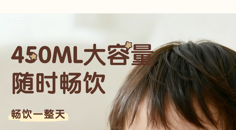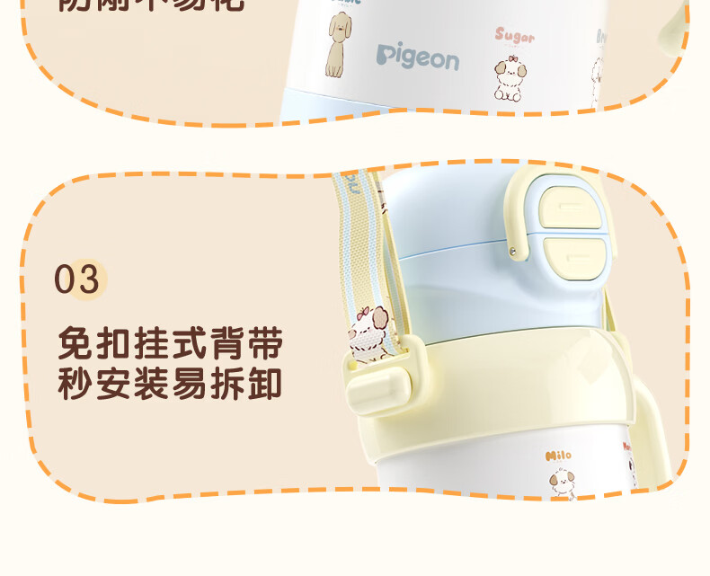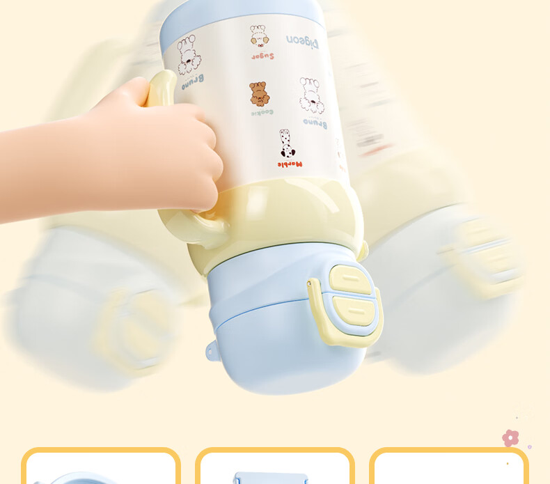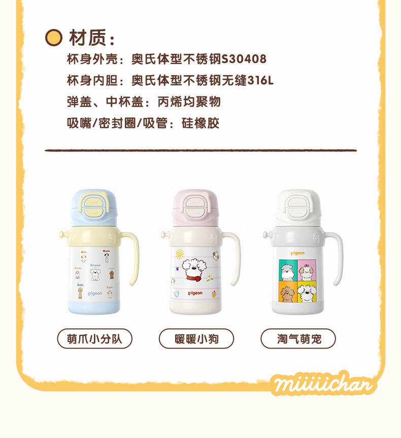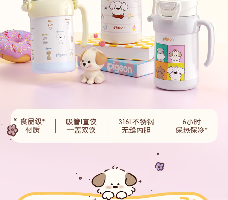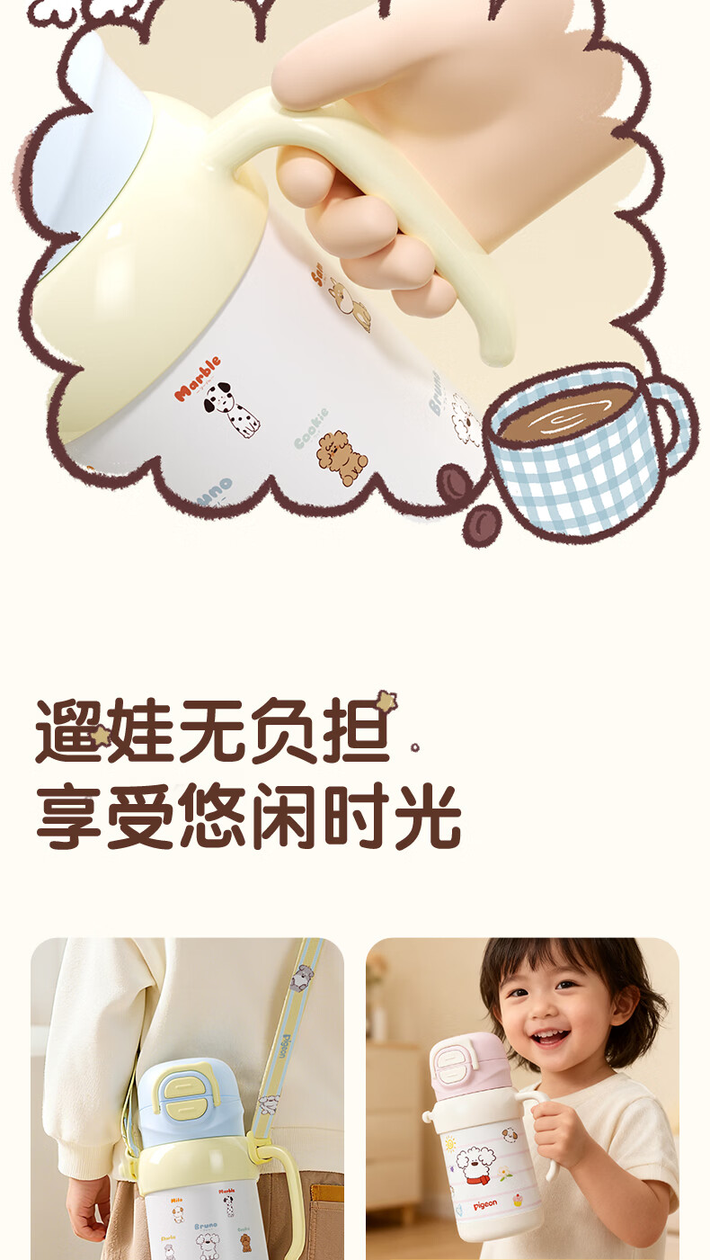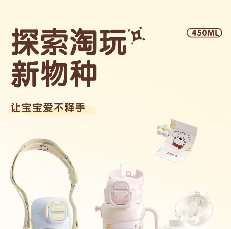 贝亲水杯保温杯 保冷杯单手柄 双饮儿童水杯450ML (灰色淘气萌宠)