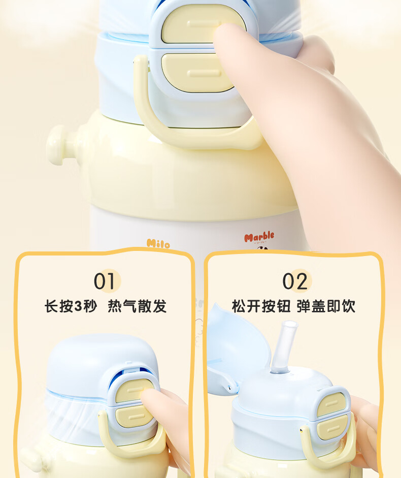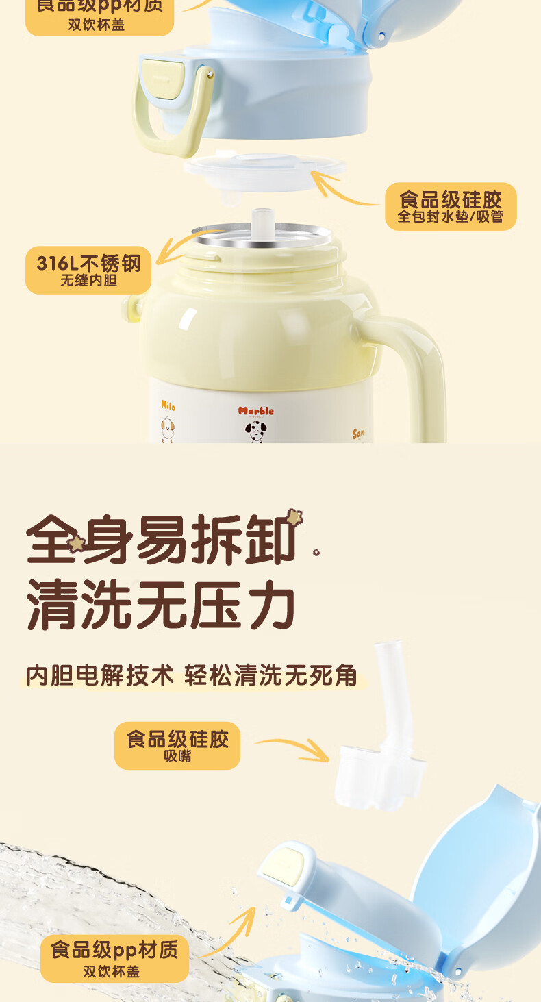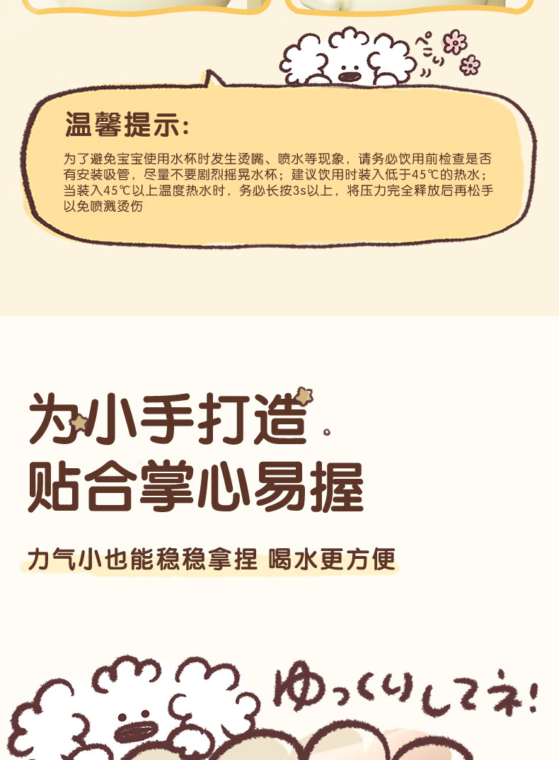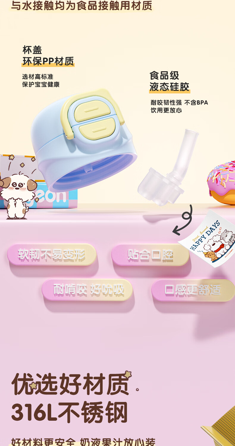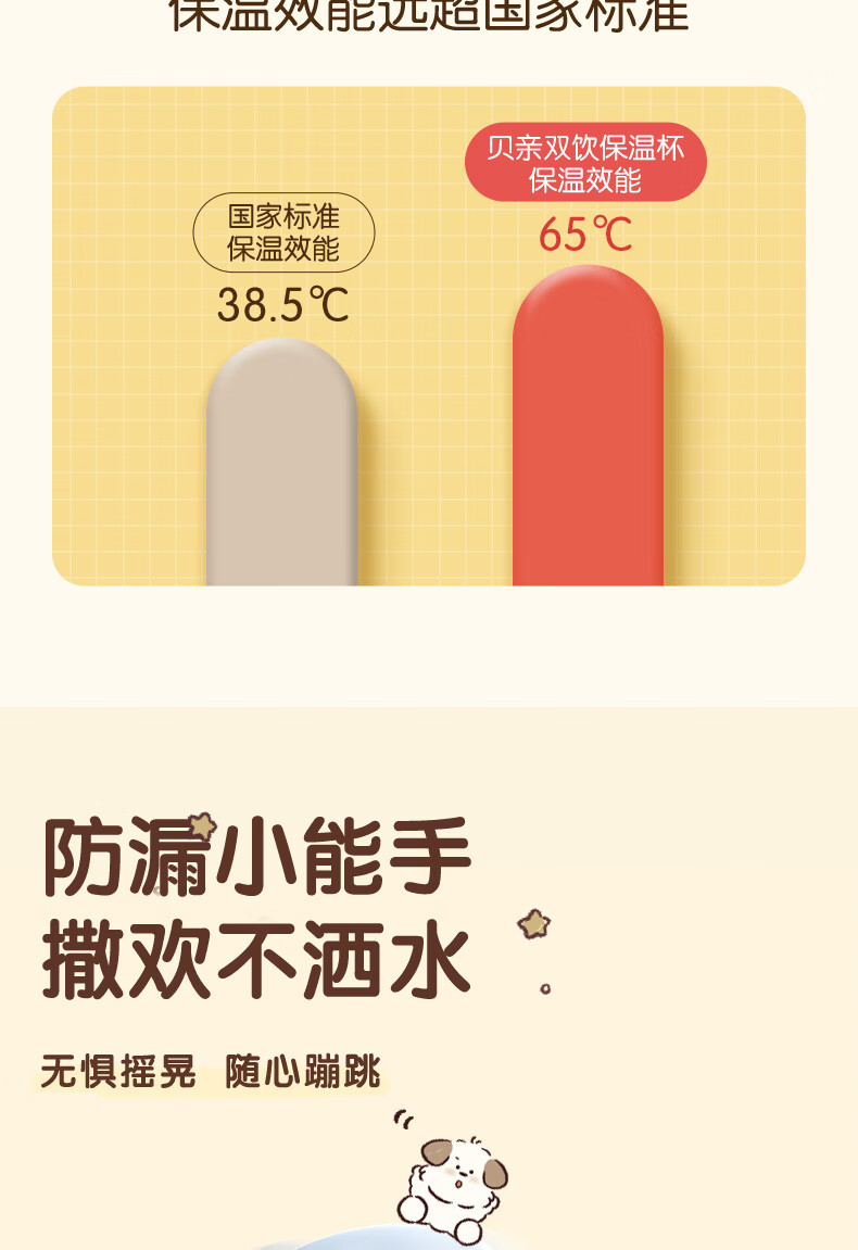 贝亲水杯保温杯 保冷杯单手柄 双饮儿童水杯450ML (灰色淘气萌宠)
