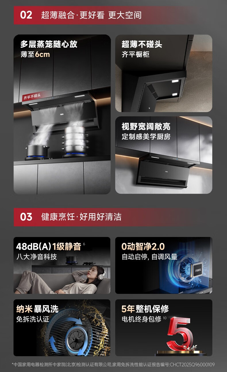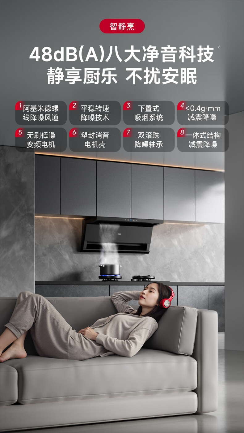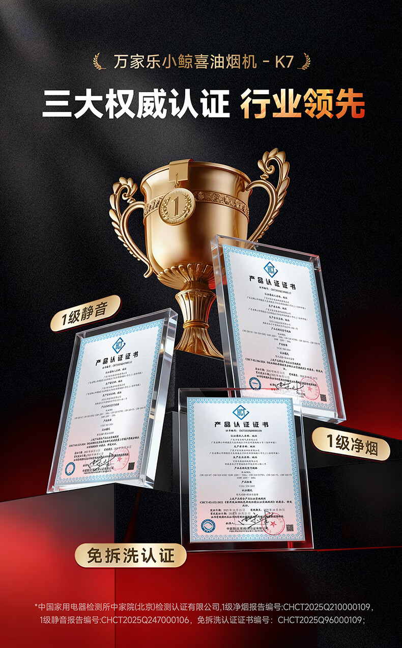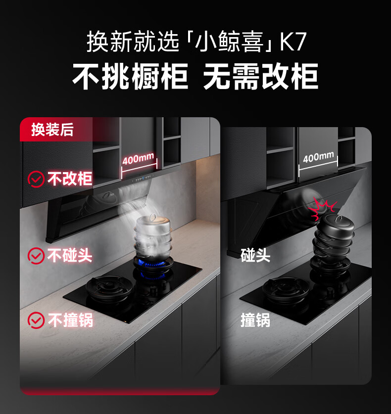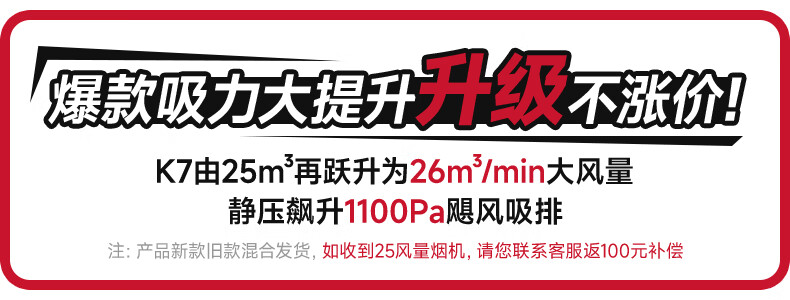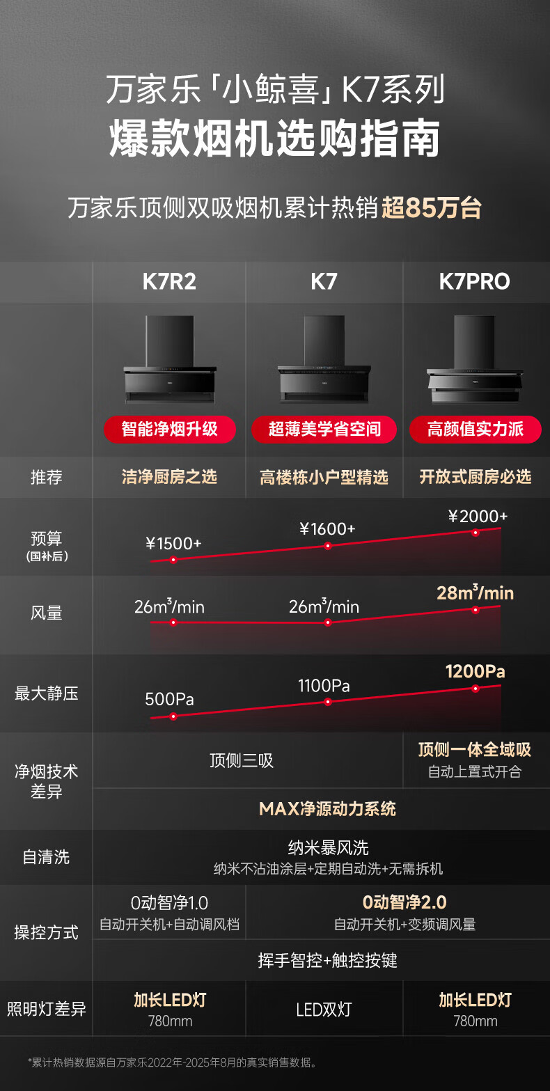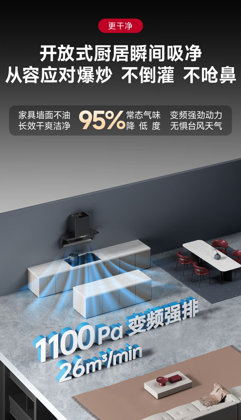 万家乐油烟机【小鲸喜K7·店长推荐】26m³顶侧双吸变频巡航烟灶联动挥手自清洗6cm超薄平嵌免拆洗油烟机