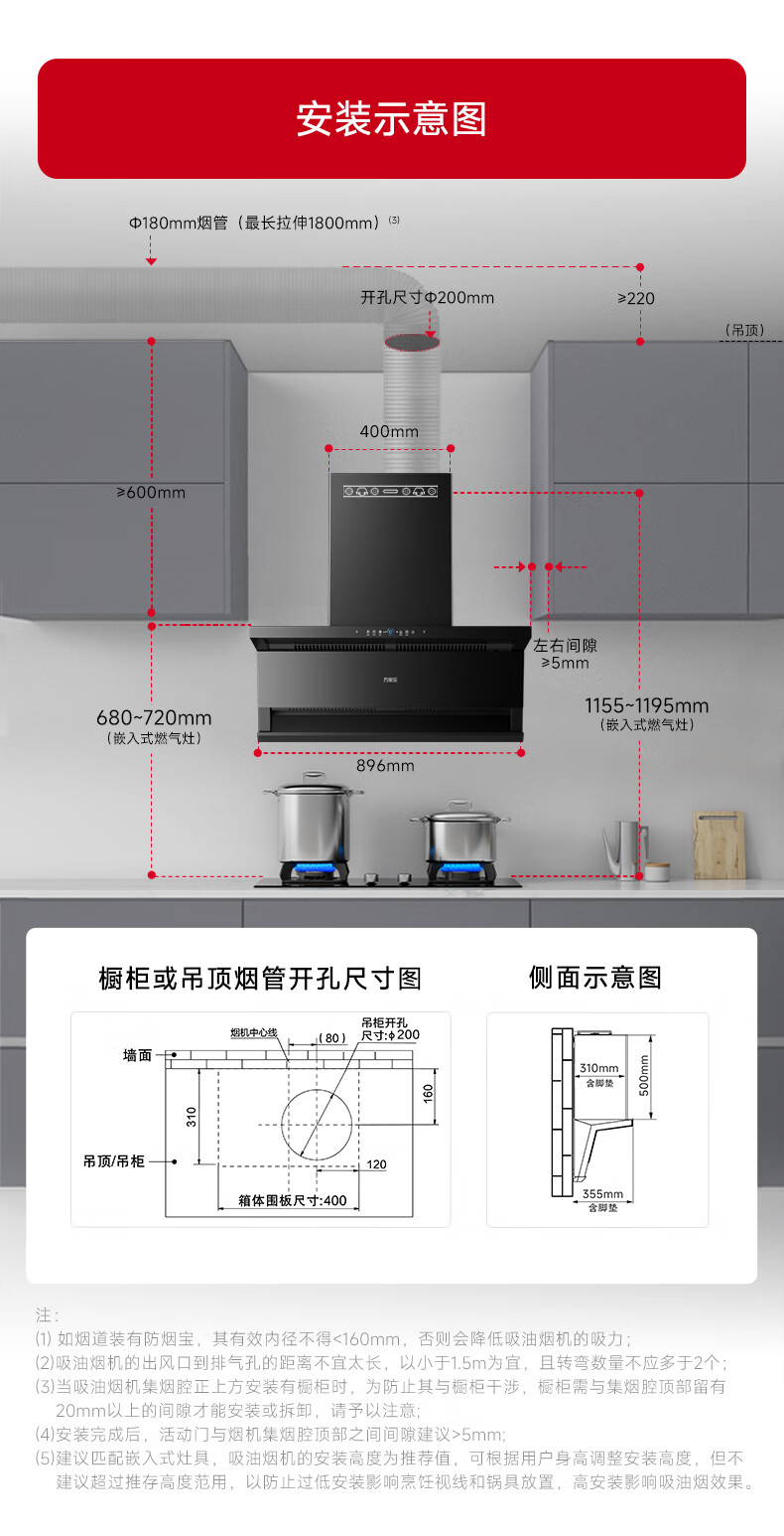 万家乐油烟机【小鲸喜TAK8】顶侧双吸不碰头 25立方变频大吸力三腔拢烟1050Pa自清洗家用抽排吸油烟机