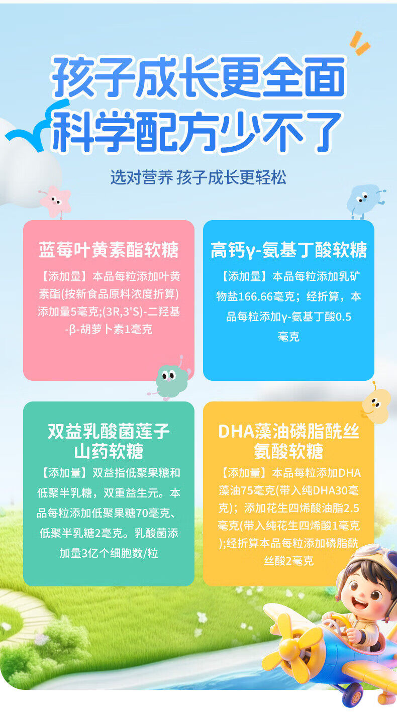 儿童营养包软糖每日凝胶糖果DHA藻油氨基丁酸蓝莓叶黄素酯 江中营养软糖包- 80g*10盒