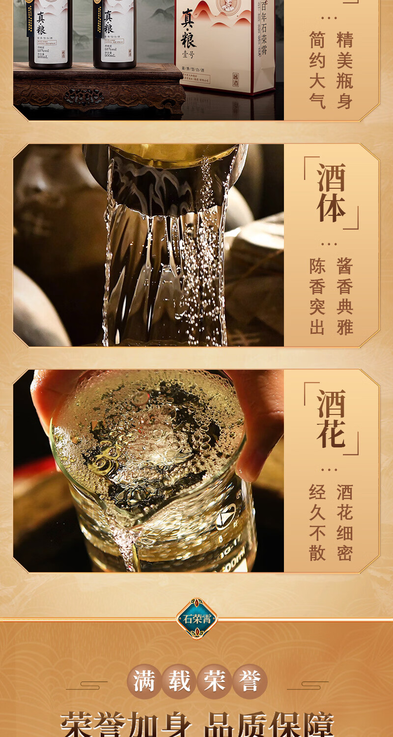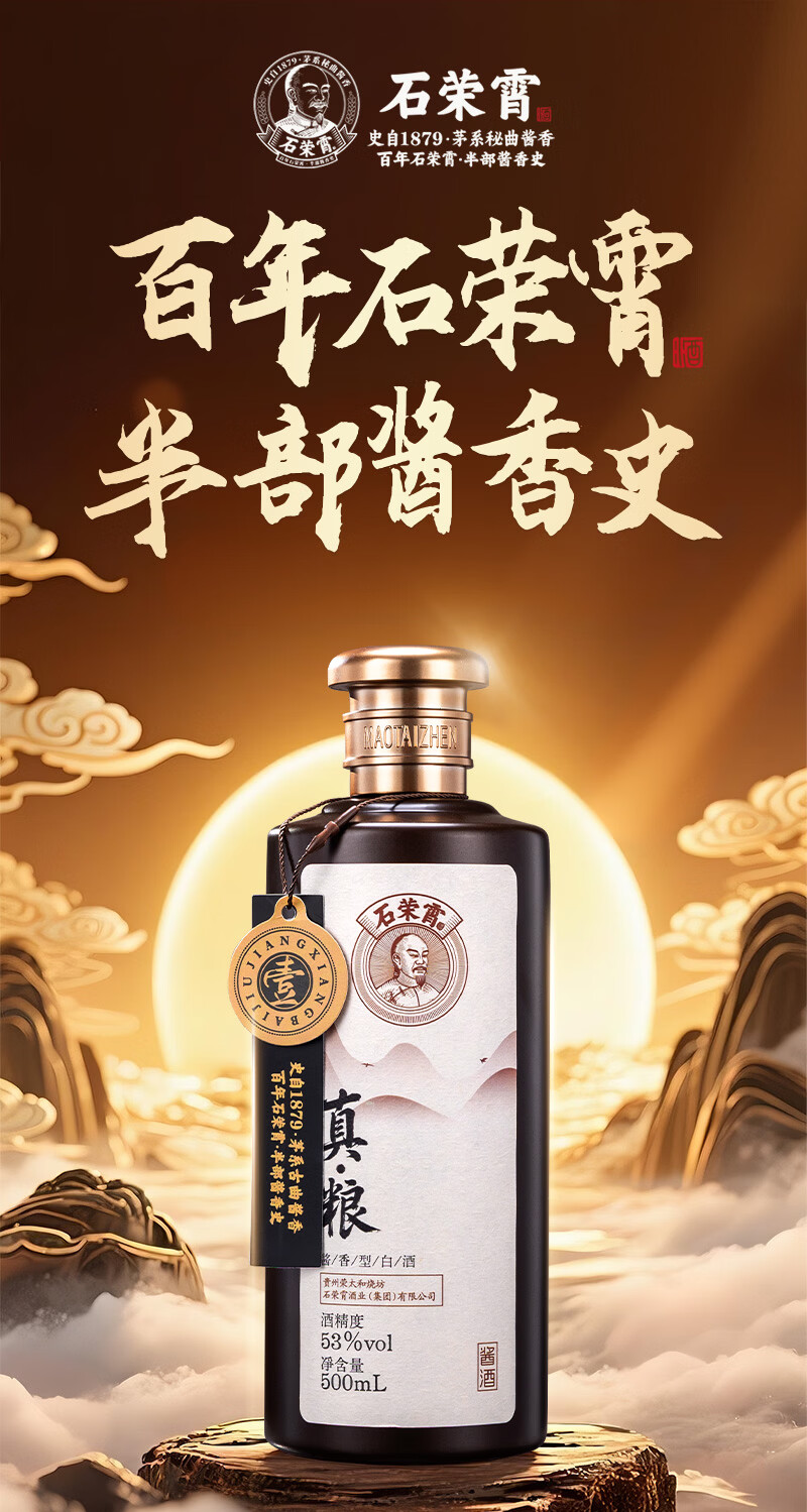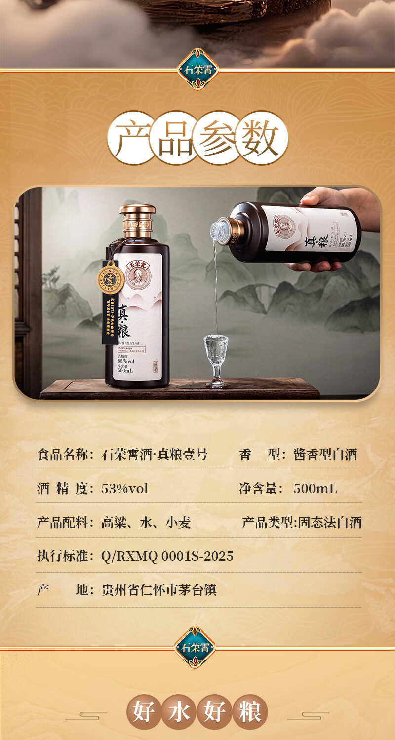石荣霄真粮一号贵州酱香型白酒粮食酿造白酒整箱高度窖藏口粮酒收藏自饮 53度 500mL 6瓶 整箱送酒具【性价比80%的选择】