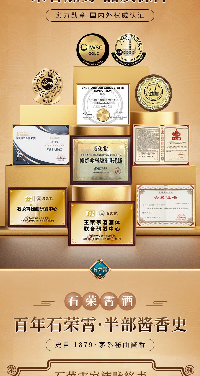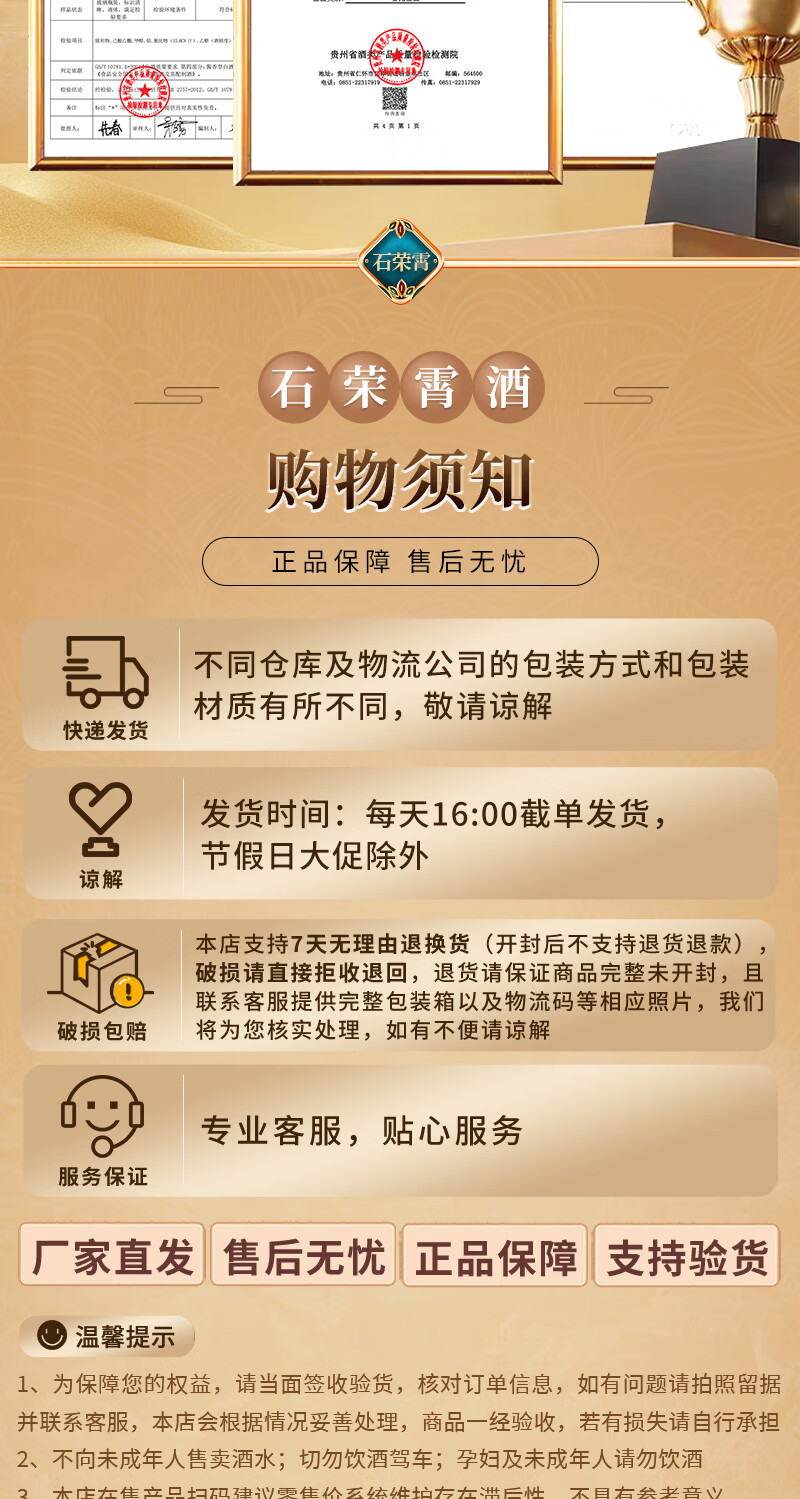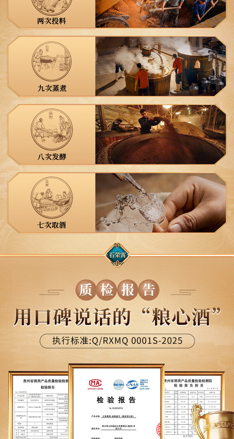 石荣霄真粮一号贵州酱香型白酒粮食酿造白酒整箱高度窖藏口粮酒收藏自饮 53度 500mL 6瓶 整箱送酒具【性价比80%的选择】