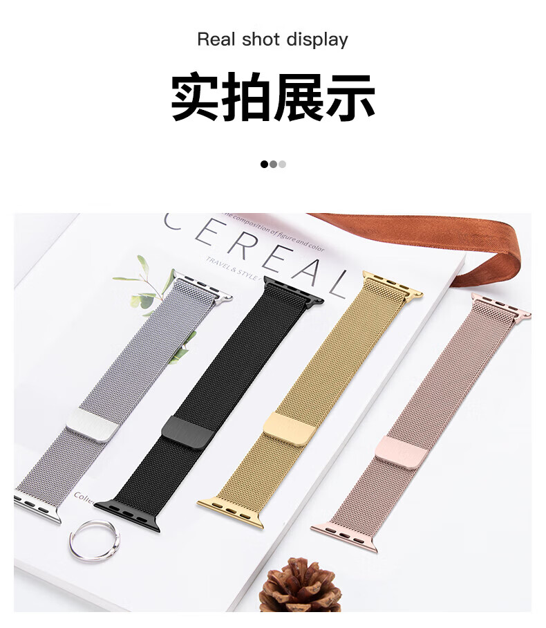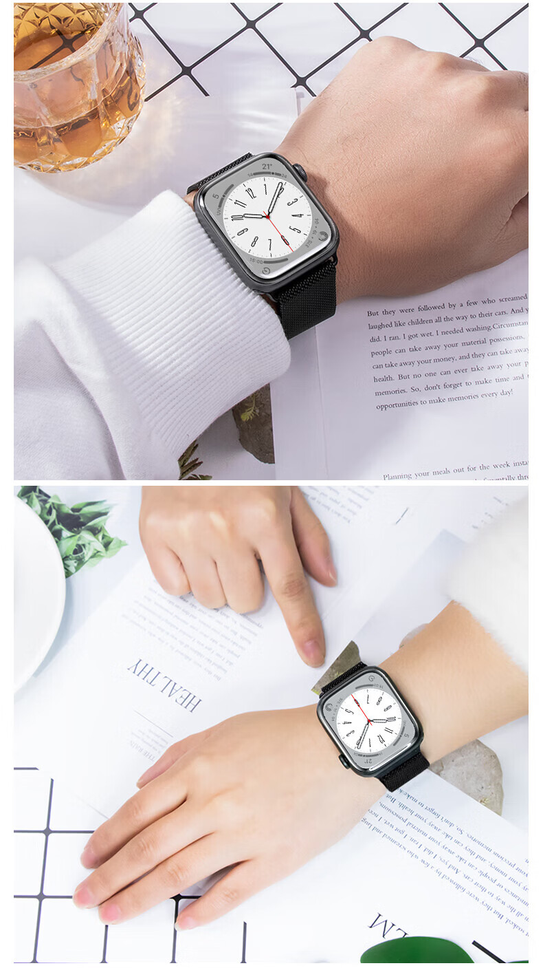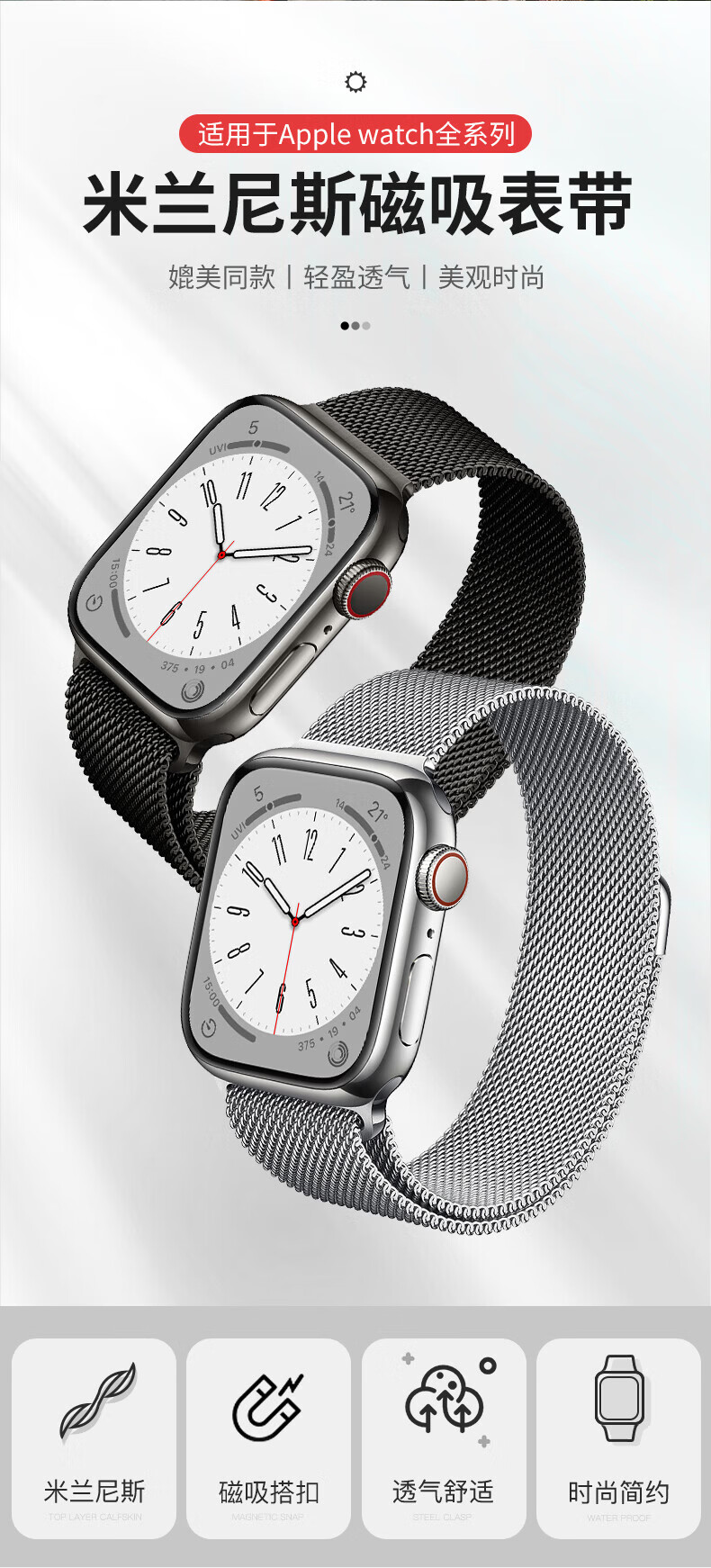 苹果手表表带适用apple watch s11/s10/se/ultra3米兰尼斯表带iwatch s9/8/7/6/5/4金属不锈钢表带 石墨色【米兰尼斯】 38/40/41/42MM表盘通用