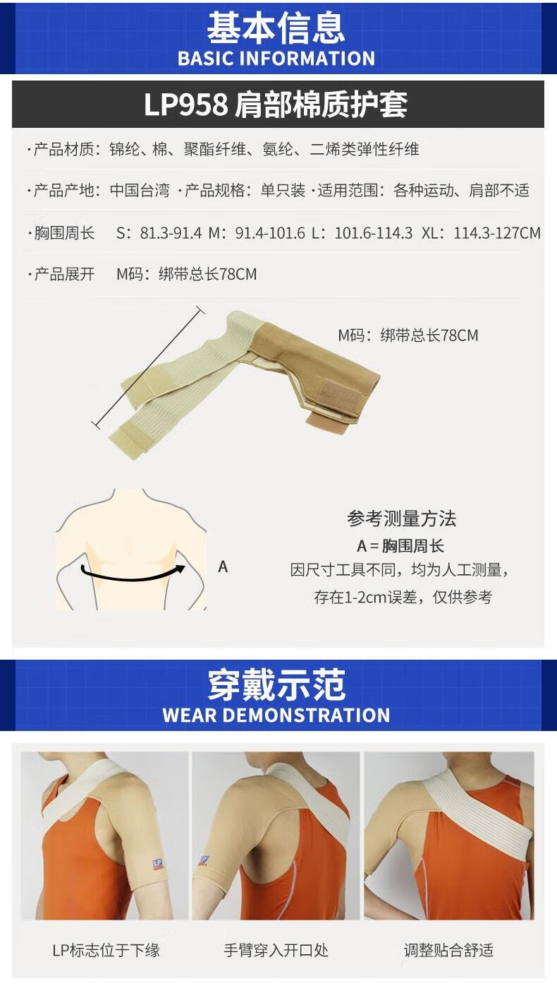 LP958护肩膀篮球羽毛球健身训练可调节透气加压运动左右肩通用款 轻薄透气款958 XL