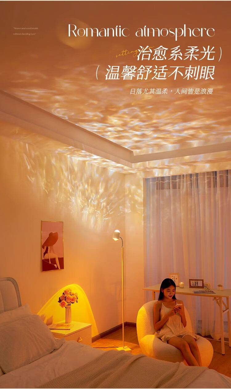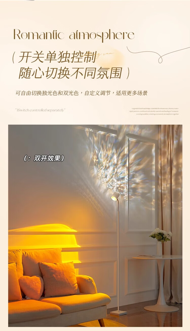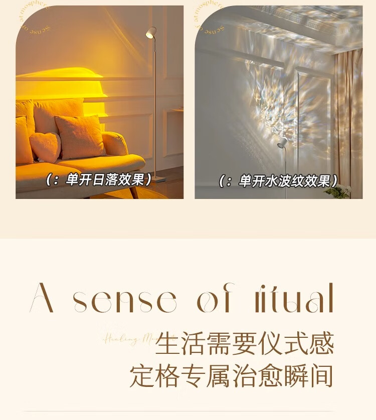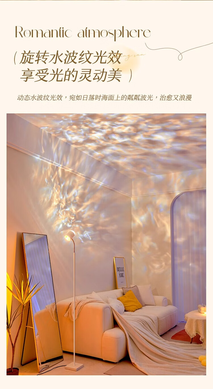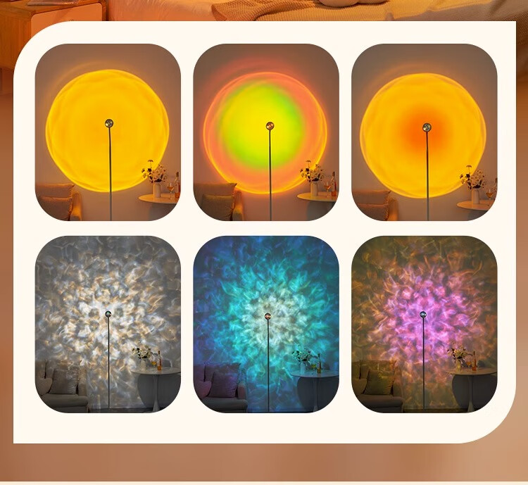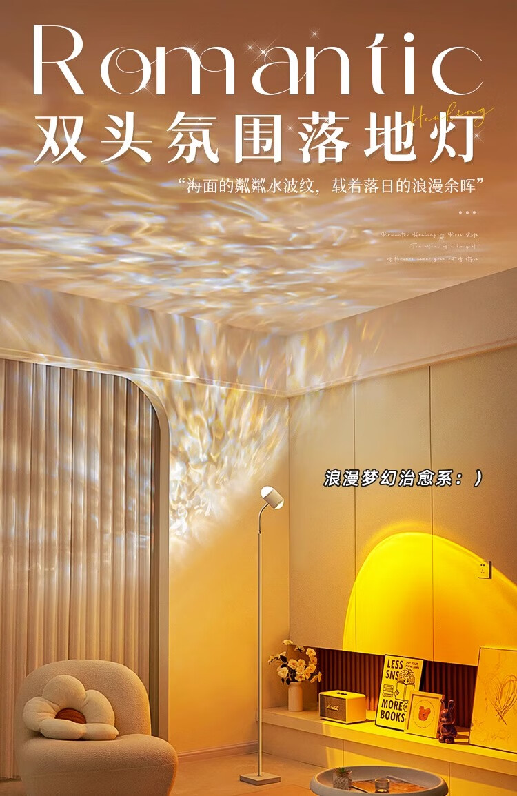 芃彩水波纹落地灯氛围感灯日落夕阳台灯直播间背景装饰房间投影日落灯 黑色【水波纹+夕阳】USB线送遥控