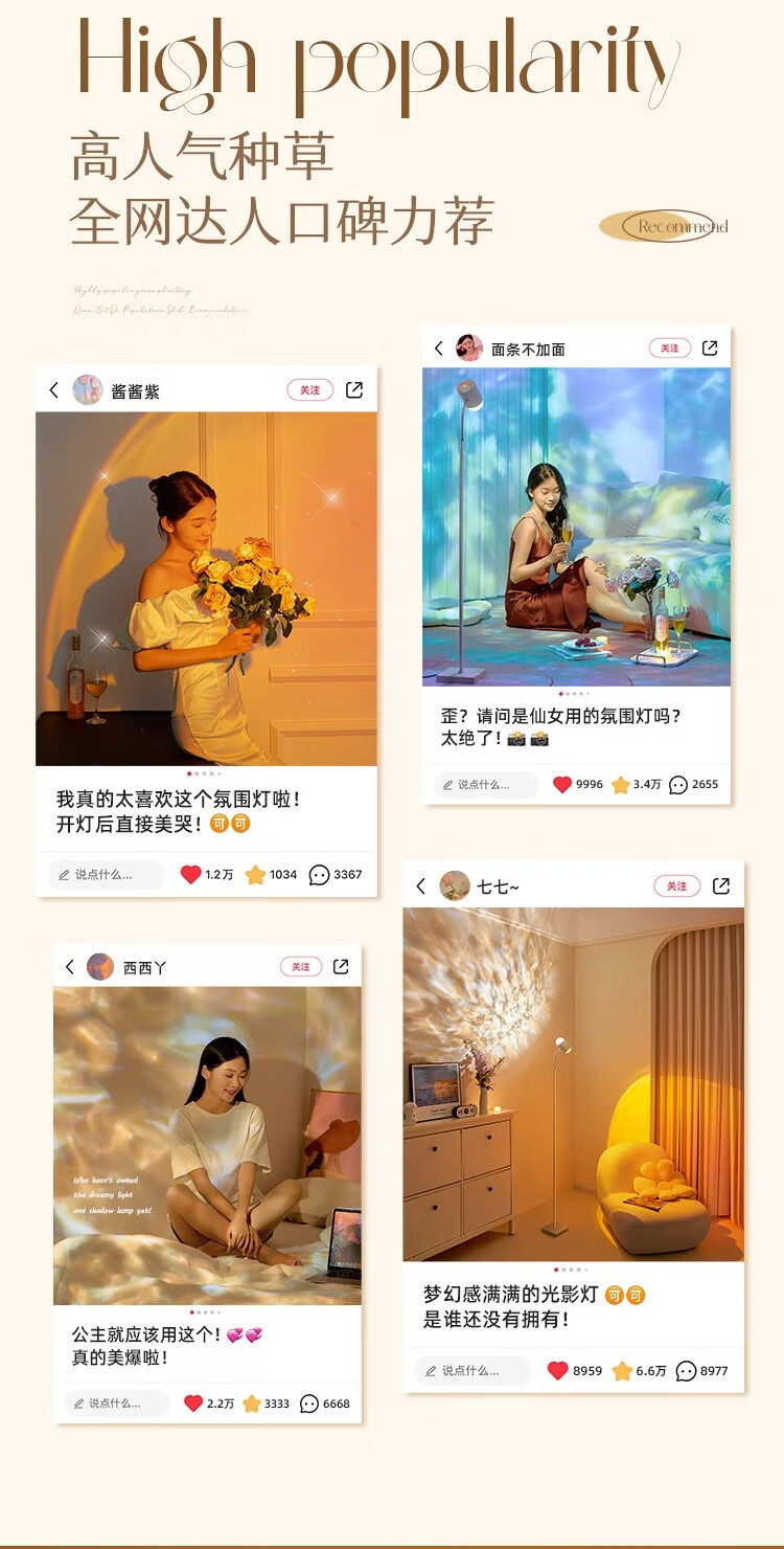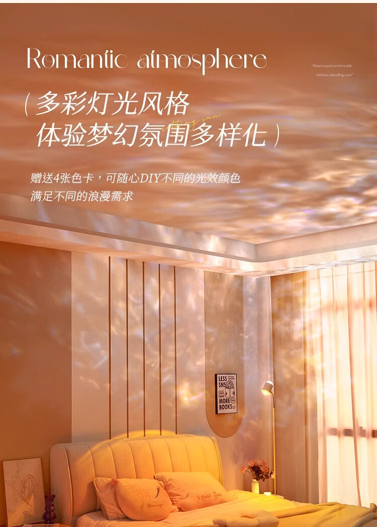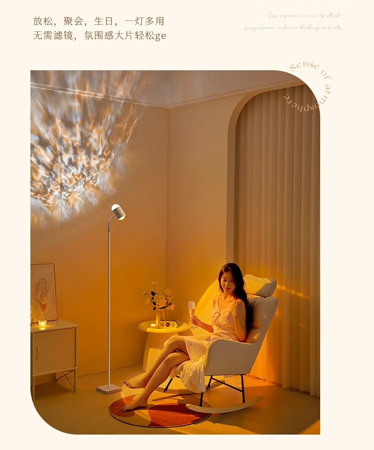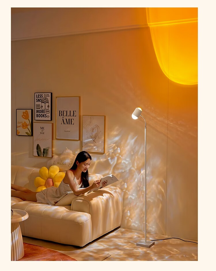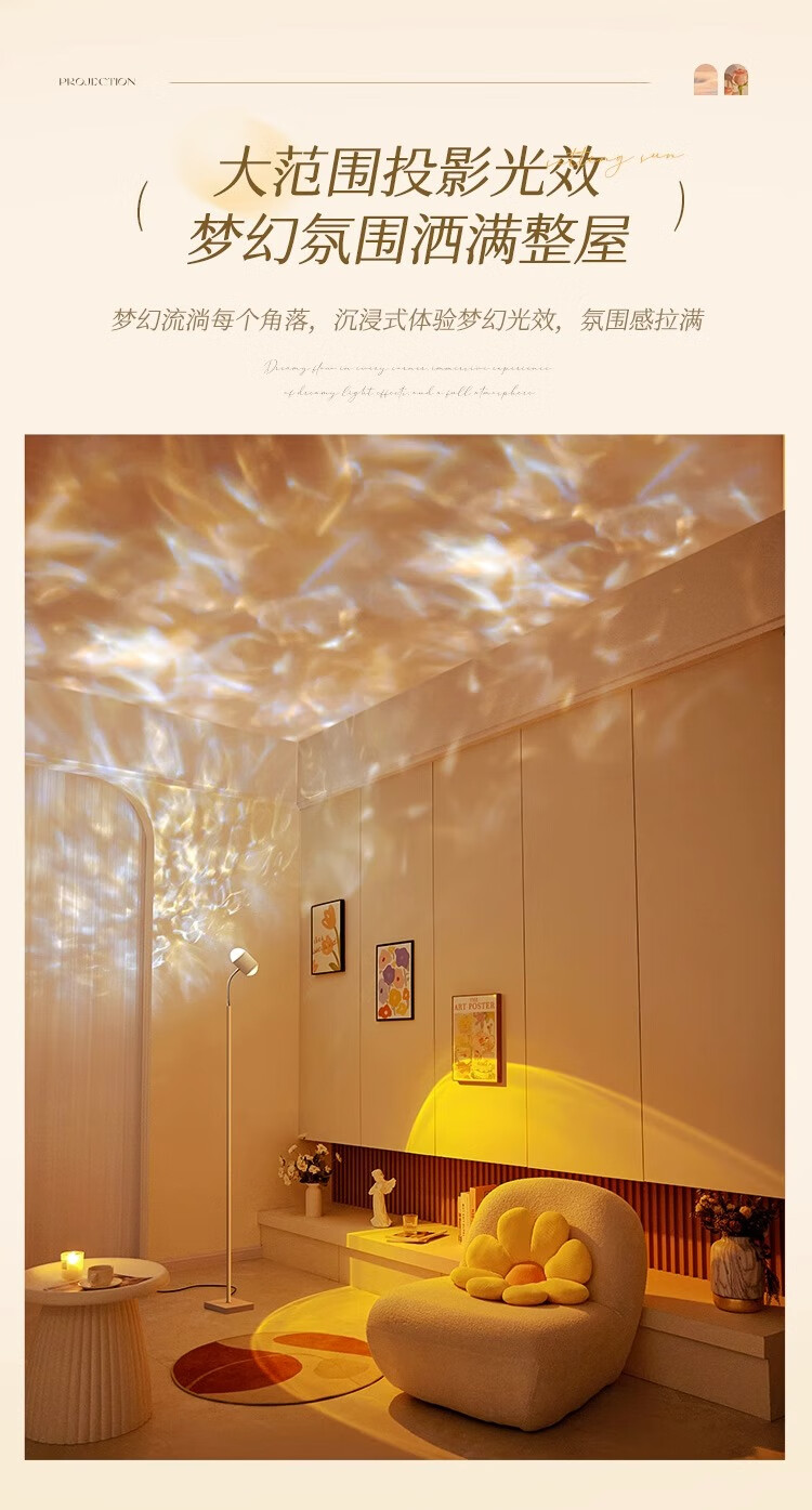 芃彩水波纹落地灯氛围感灯日落夕阳台灯直播间背景装饰房间投影日落灯 黑色【水波纹+夕阳】USB线送遥控