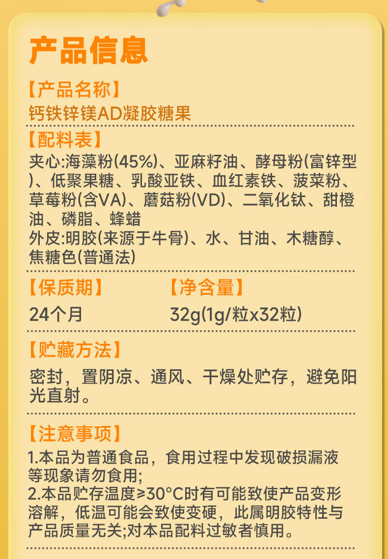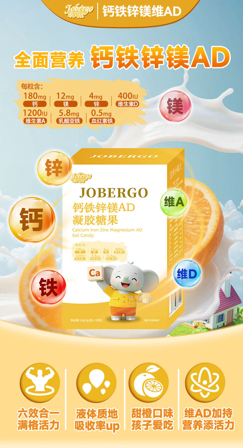 卓贝冠钙铁镁锌四合一婴幼儿0-3岁液体钙镁锌儿童4-17岁官方旗舰店 【体验装】 32粒*1盒