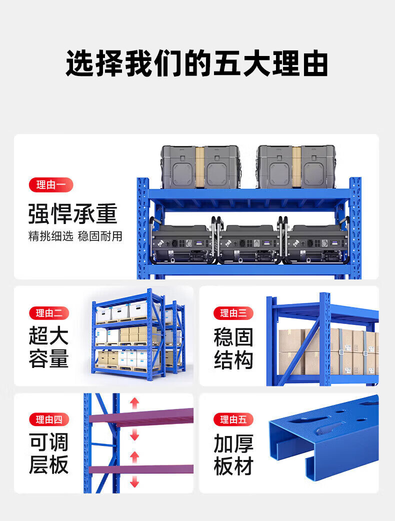 仓储多层置物架超强承重加厚重型收纳储物架落地式蝴蝶扣器材货架 2026新款升级款【100*40*200cm】 承重200kg/层=市场白牌虚标严重