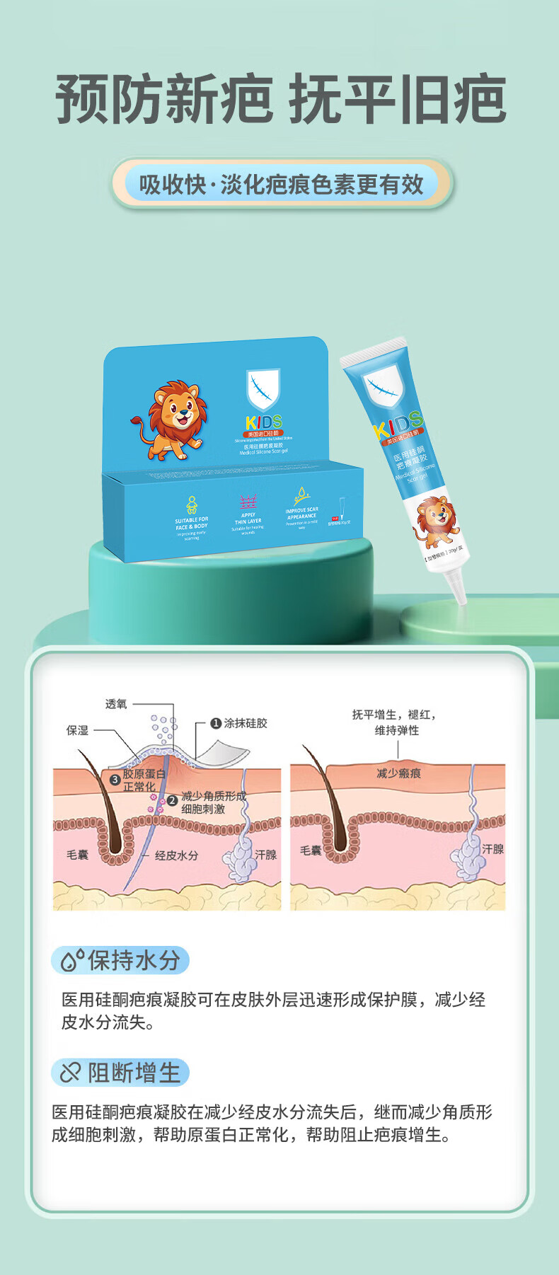 御夫清美国进口疤克巴克祛疤膏儿童去疤痕修复凝胶小孩专用除去疤膏手术