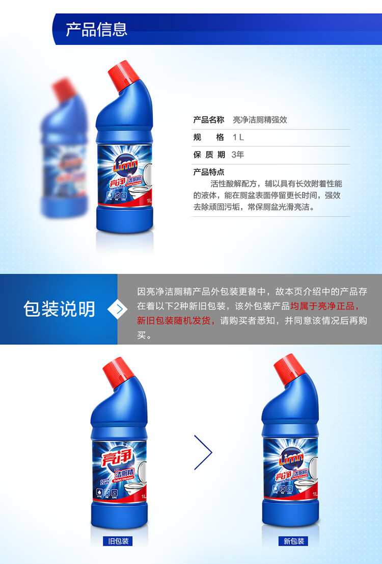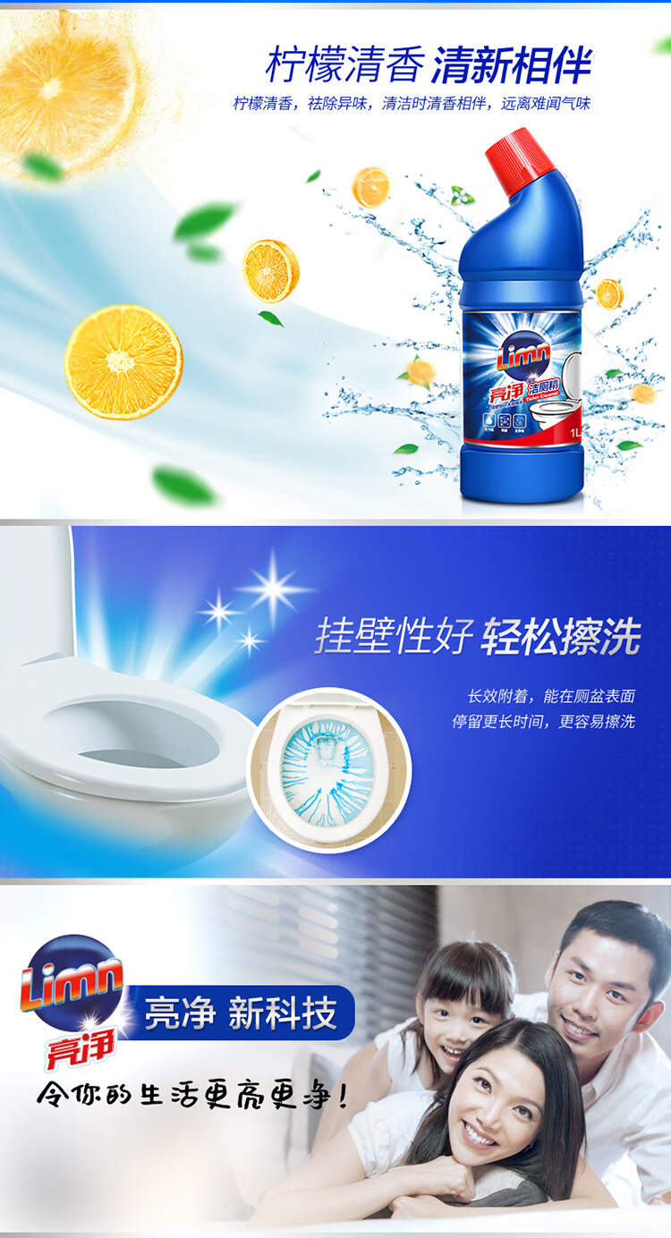 亮净强力洁厕液1L 洁厕灵 马桶清洁剂 去味清新 柠檬香 有效抑菌
