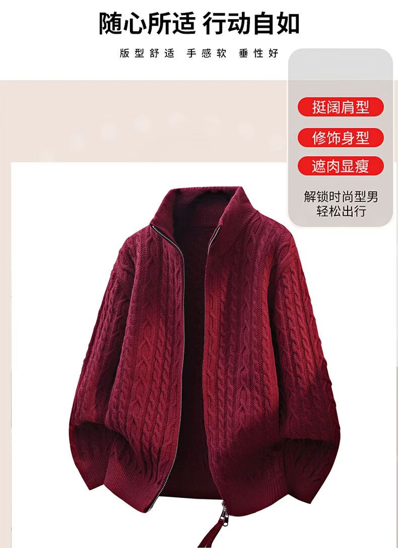 真维斯(Jeanswest)官方美拉德针织衫外套男士秋冬季美式男生复古男款毛衣 安可拉红色 【官方正品】 4XL 【建议165-180斤】