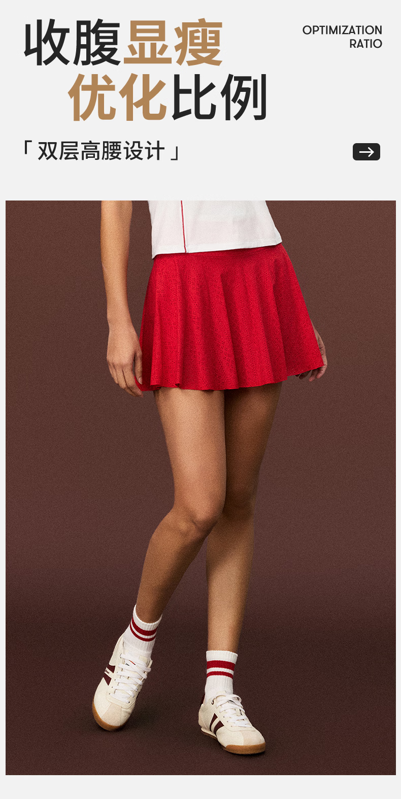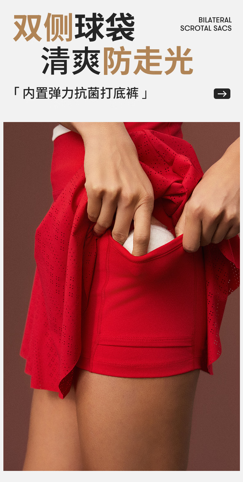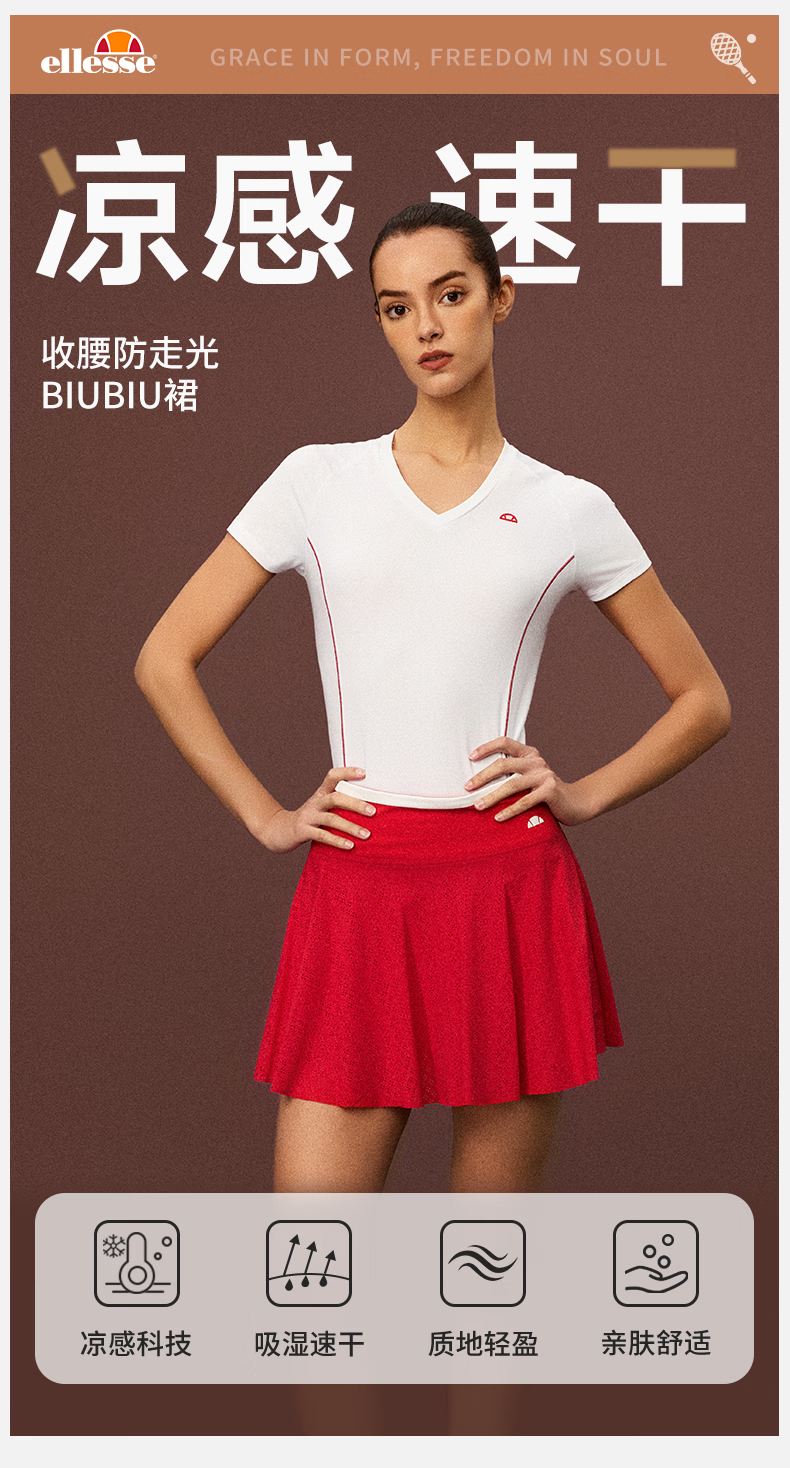 ellesse小贝壳26春新品网球裙收腹显瘦防走光打底裤新年半裙女 中国红 L
