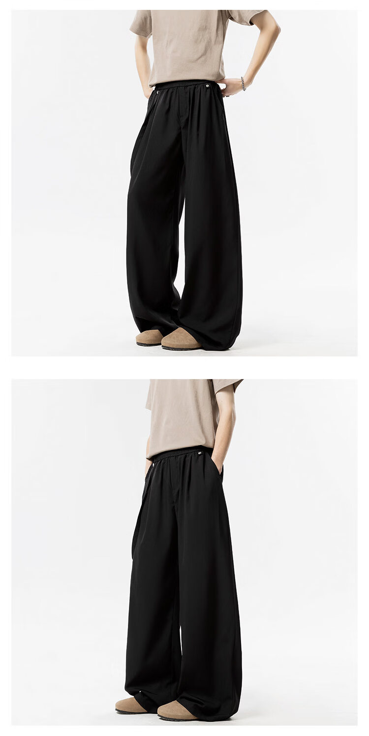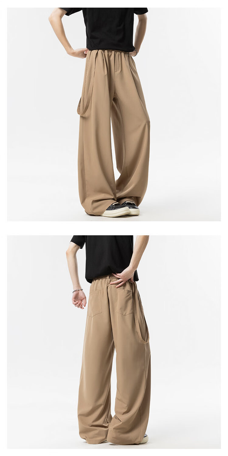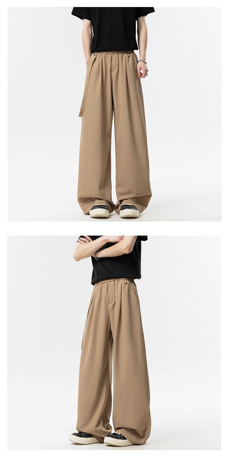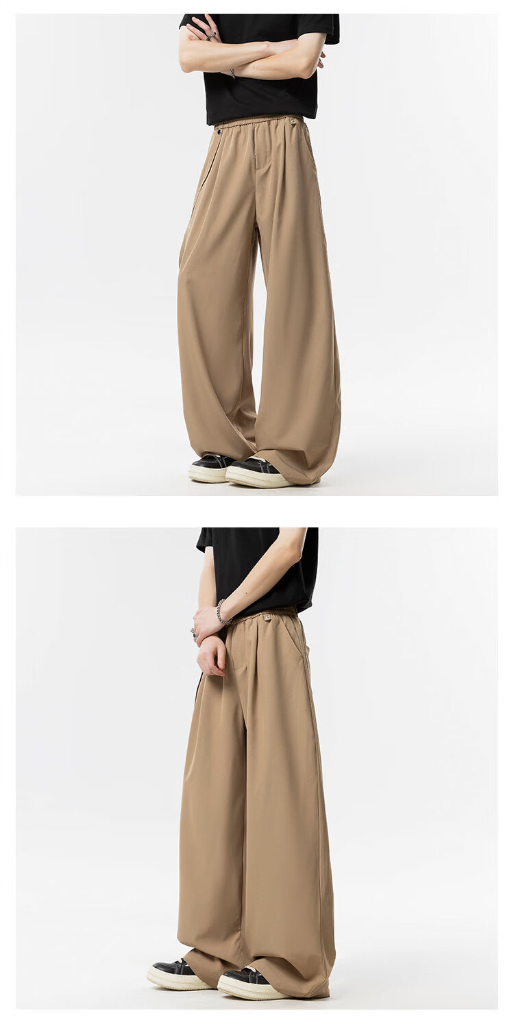 NEW OR MODE美式垂感冰丝休闲裤子男夏季新款凉感速干宽松设计感运动阔腿西裤 卡其色【高品质】 M 【建议90-110斤】
