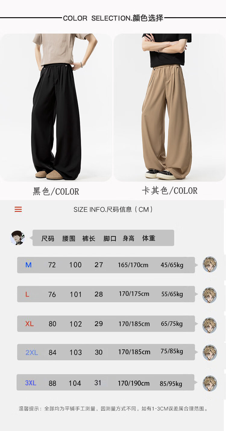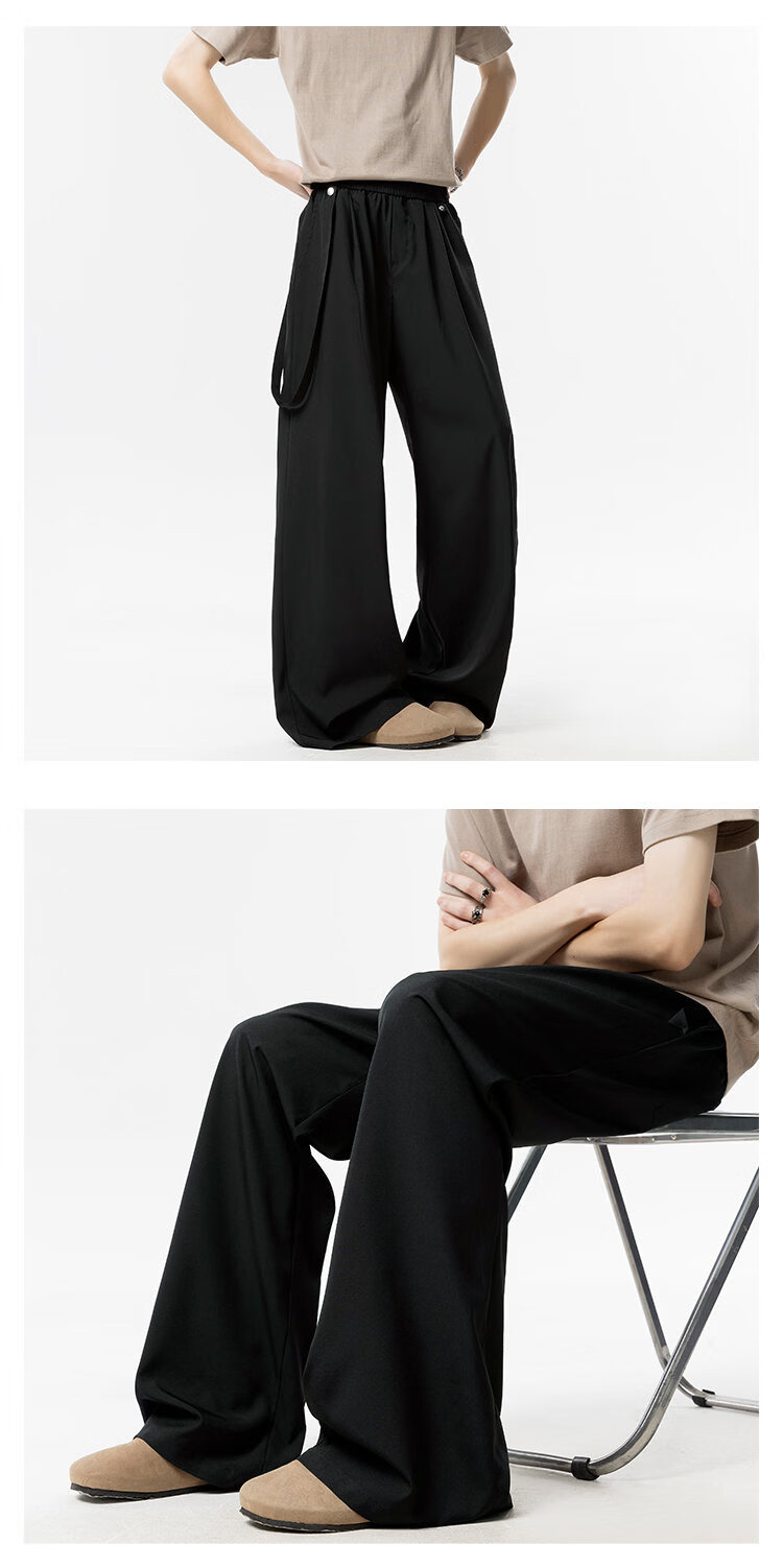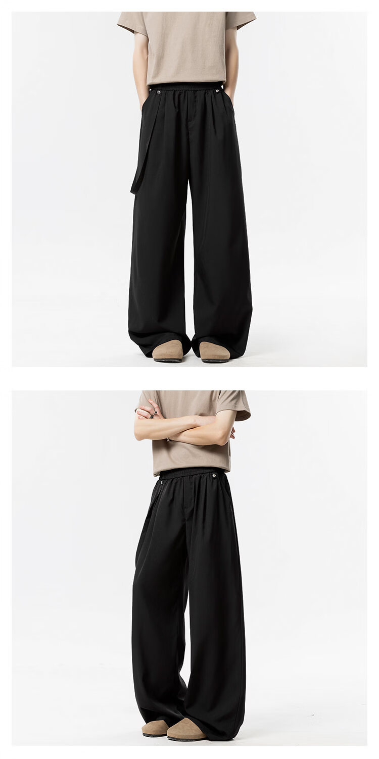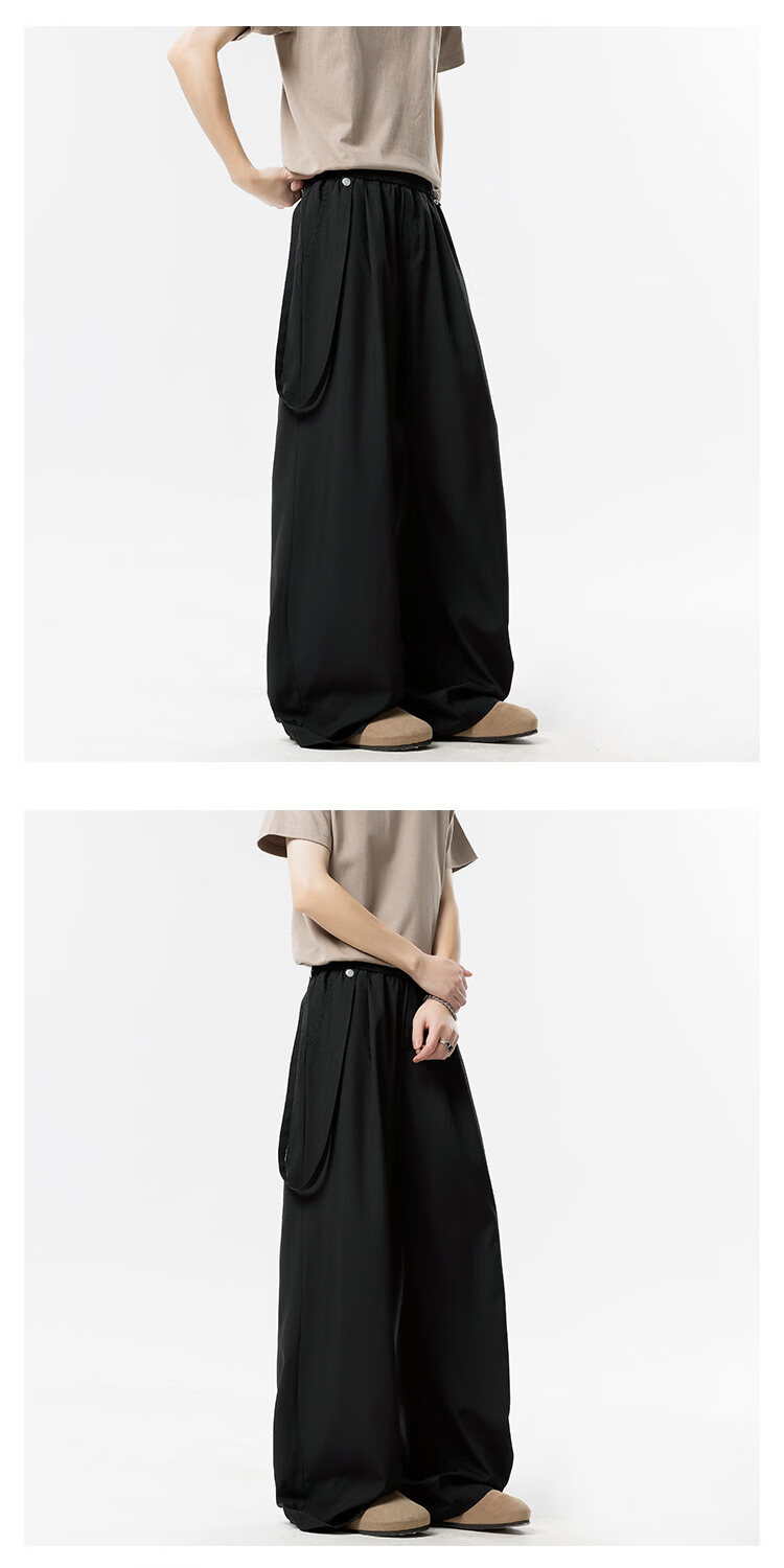 NEW OR MODE美式垂感冰丝休闲裤子男夏季新款凉感速干宽松设计感运动阔腿西裤 卡其色【高品质】 M 【建议90-110斤】