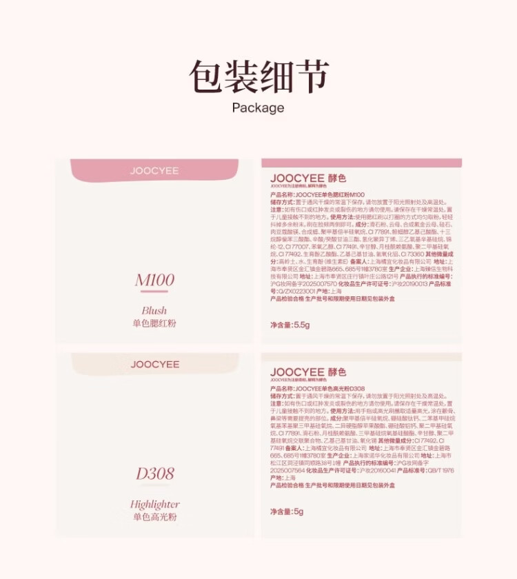 屈臣氏酵色JOOCYEE单色腮红粉 高光粉 腮红M229 5.5g 单色