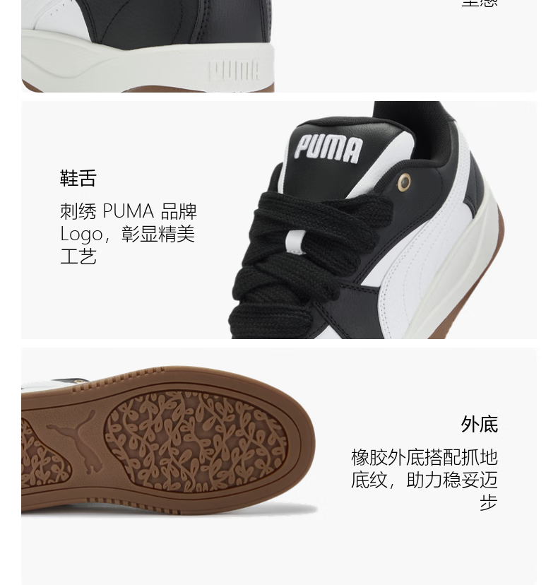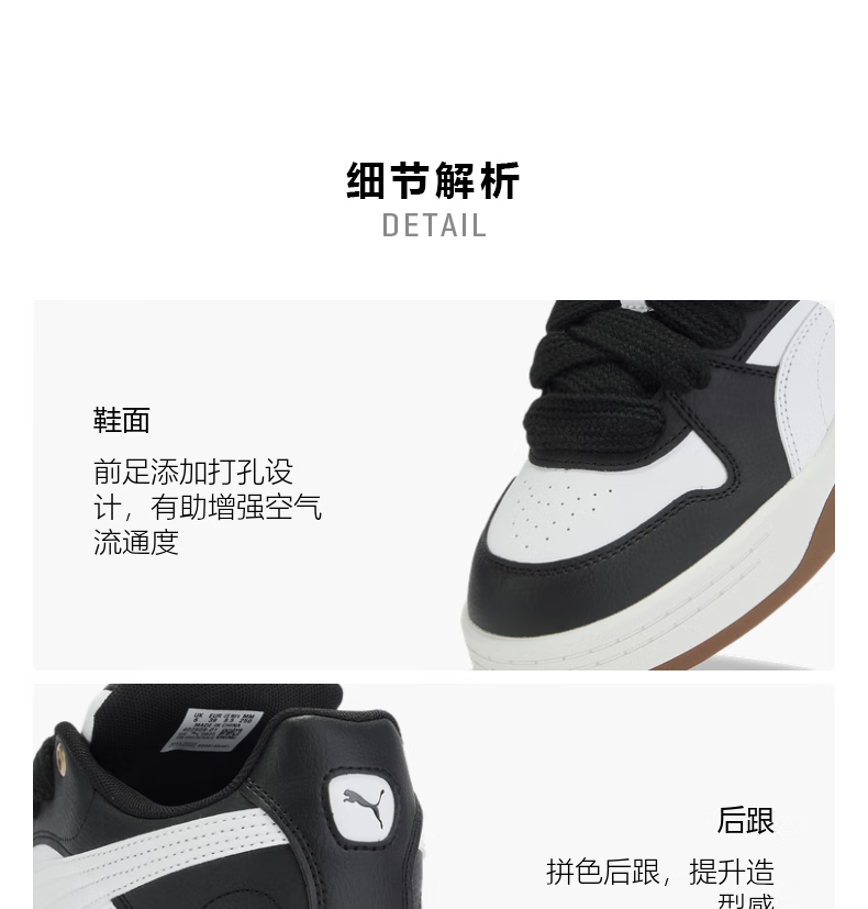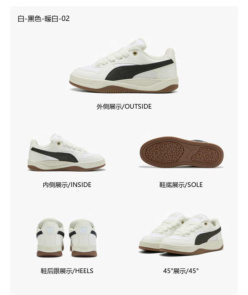彪马(PUMA)面包鞋|复古厚底滑板鞋女款新款冬季板鞋PARK402509 黑色-白-01 37.5