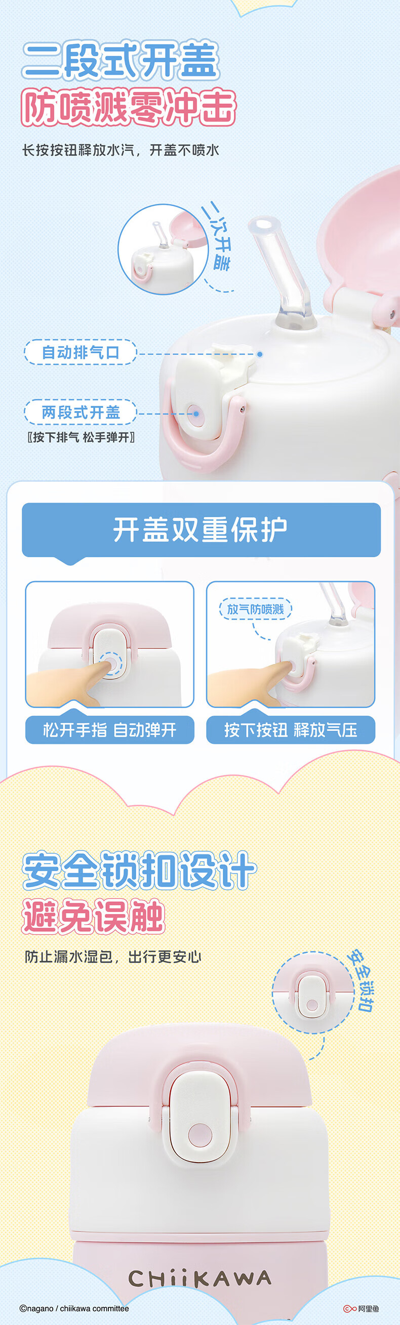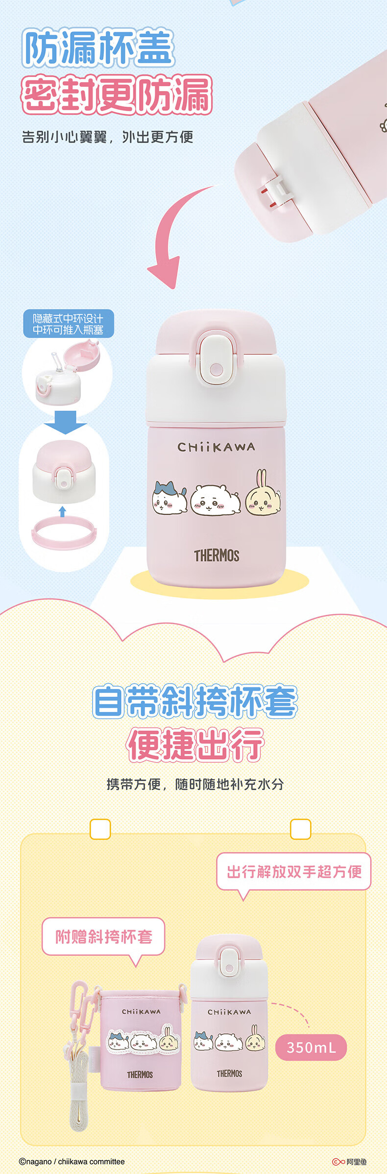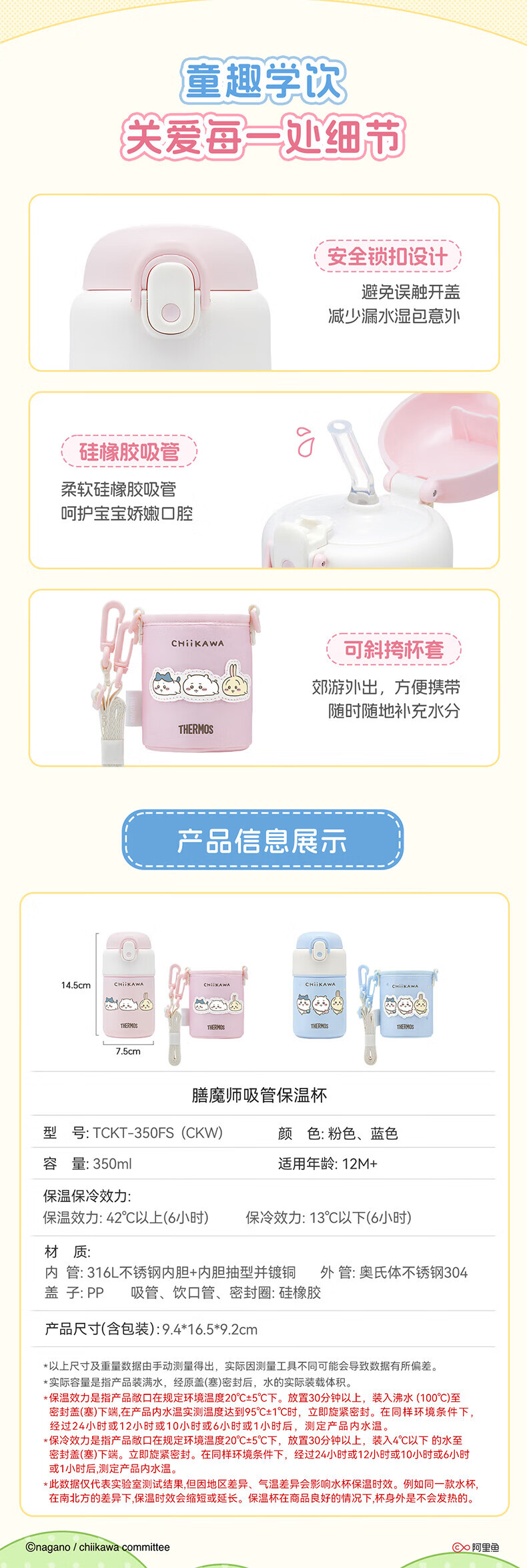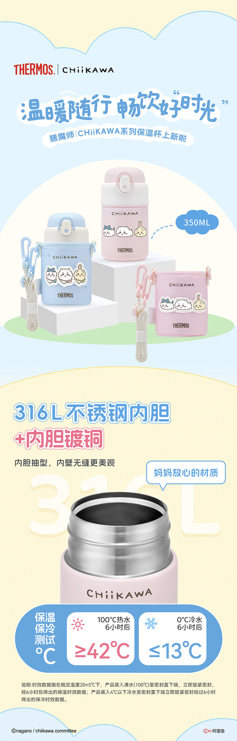 膳魔师(THERMOS)儿童保温杯水杯chiikawa联名带杯套316L不锈钢学生杯吉伊卡哇TCKT