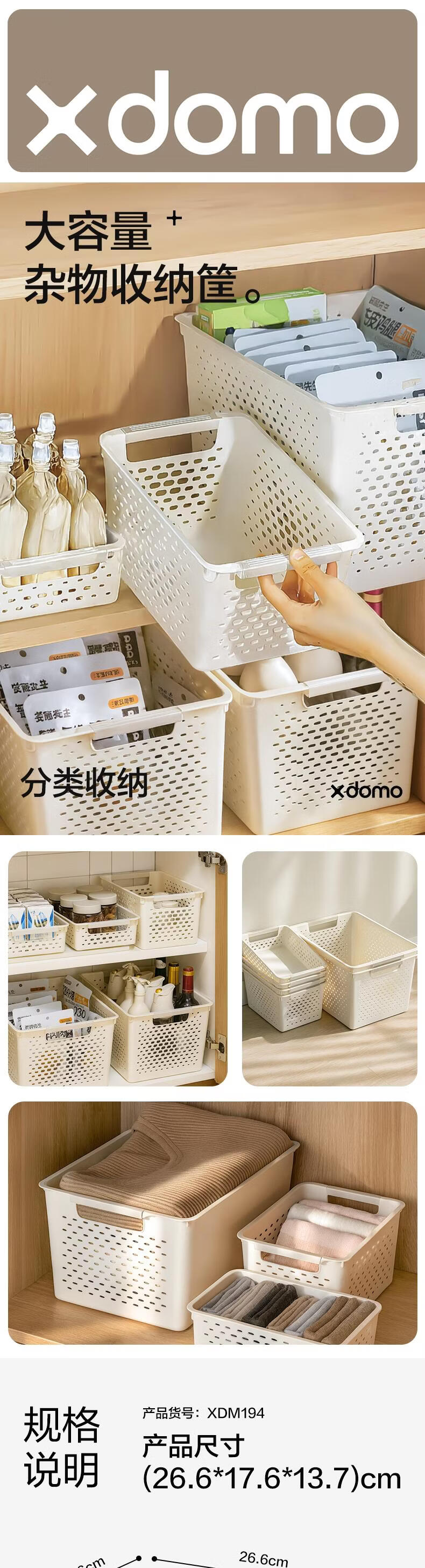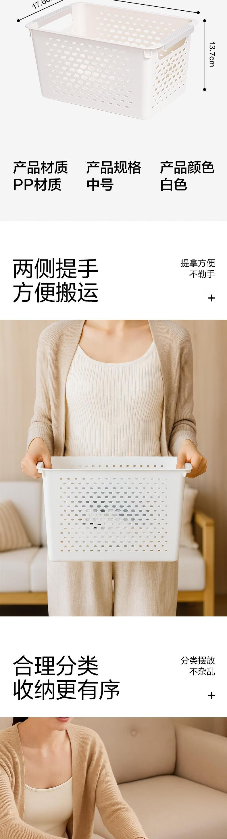 得力(deli)【中号】多功能桌面档案收纳盒办公文件框 文具资料收纳筐厨房浴室客厅收纳筐 XDM194