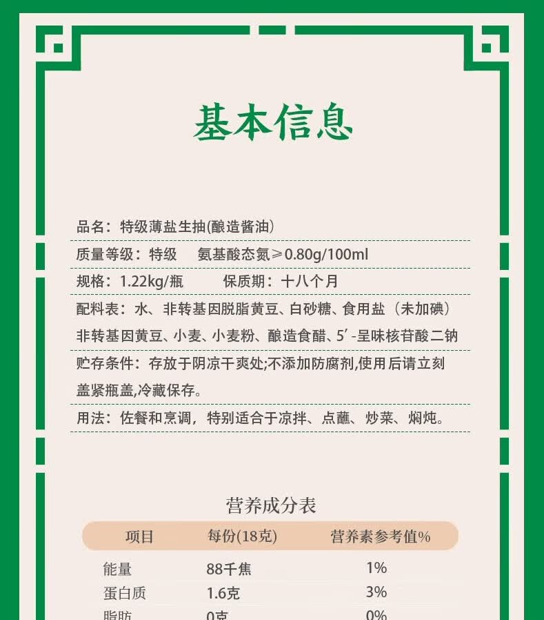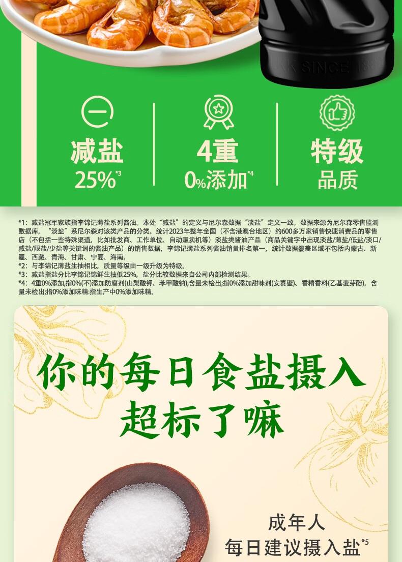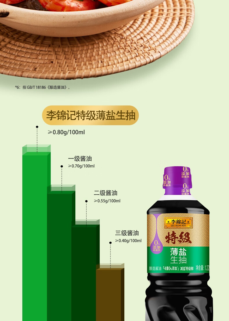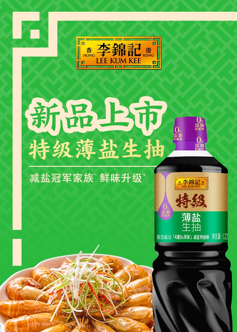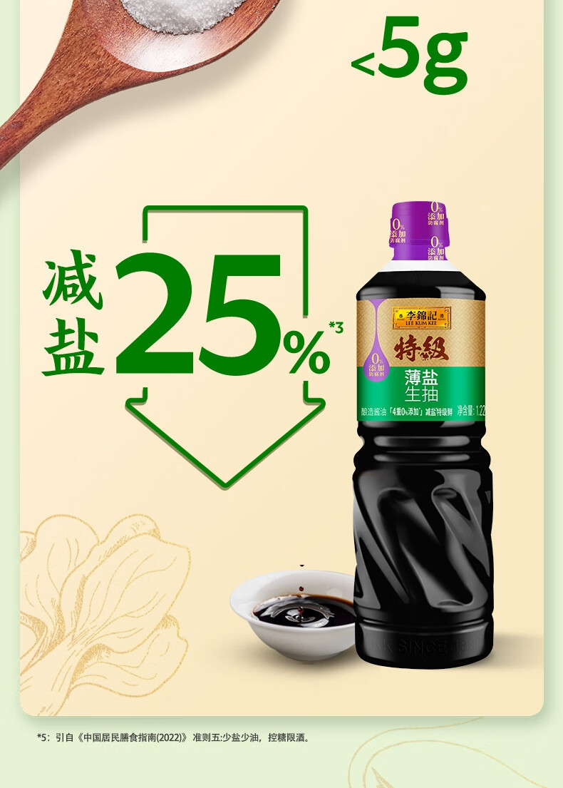 李锦记特级薄盐生抽1.22kg 减盐25% 特级品质 减盐特级鲜 酿造酱油