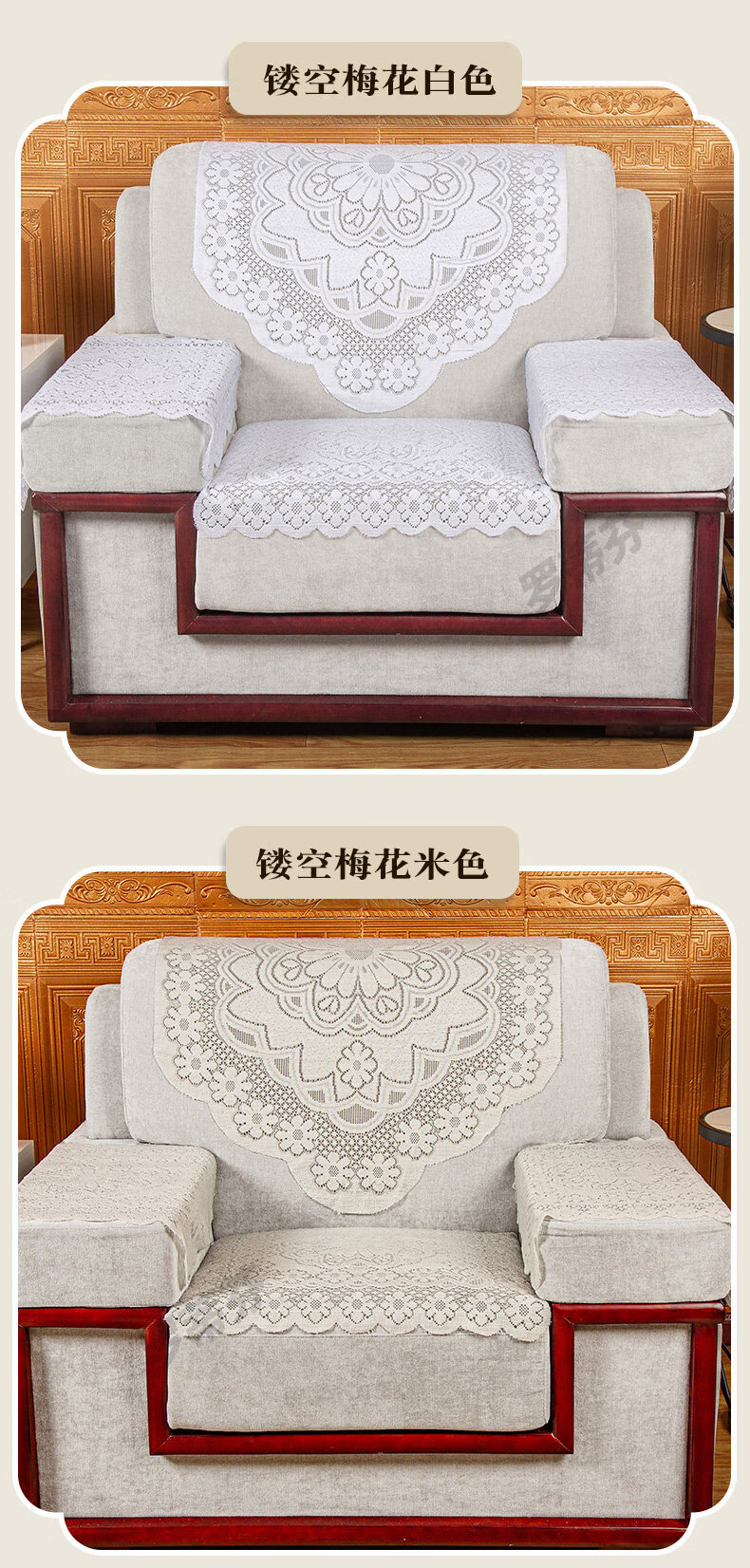 正圣贵宾室单人沙发巾会议室坐垫靠背巾办公简约时尚蕾丝扶手沙发盖布 镂空梅花白色【18针镂空】 65cm*70cm 三角巾