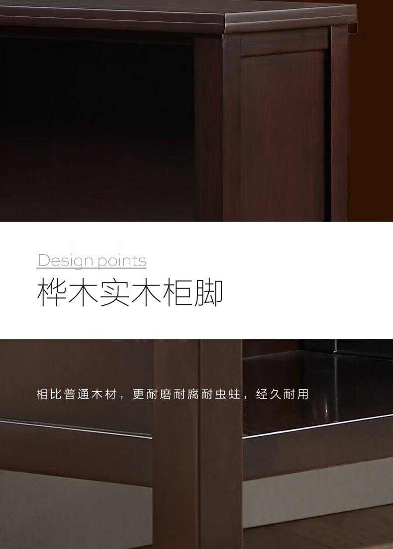 全友家居原木风实木餐边柜家用玻璃展示柜收纳储物小柜子沙发边柜KS 【樱桃木色|橡胶木】双门款餐边柜