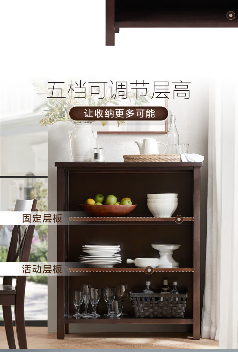 全友家居原木风实木餐边柜家用玻璃展示柜收纳储物小柜子沙发边柜KS 【胡桃木色|橡胶木】双门款餐边柜