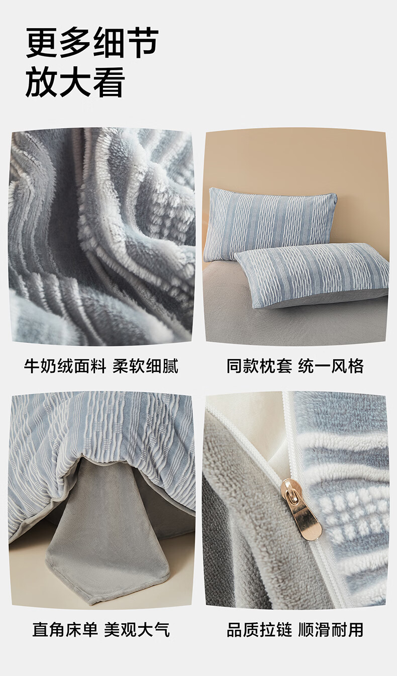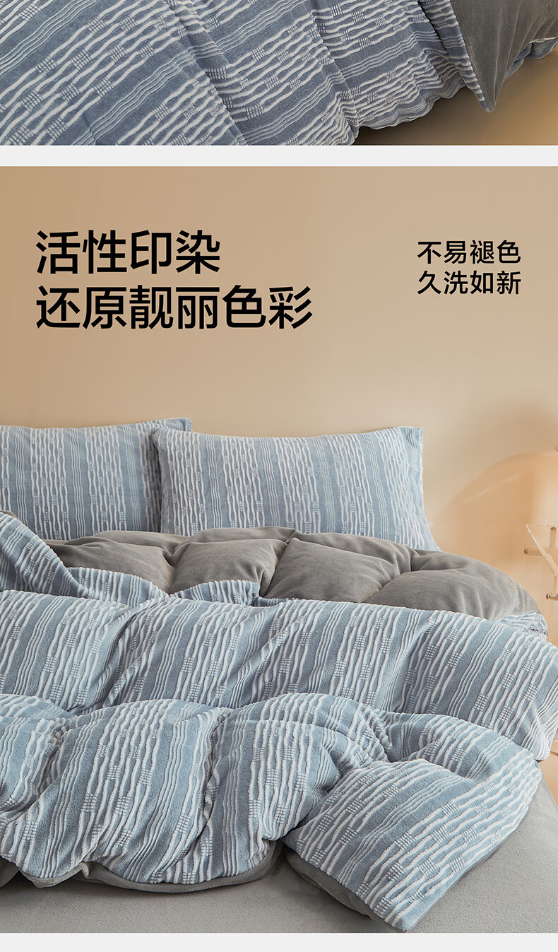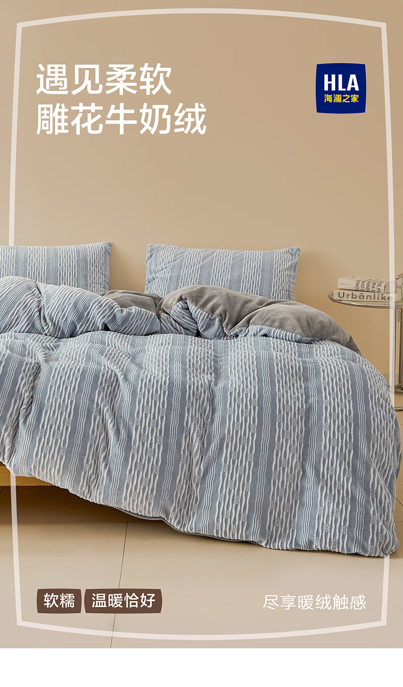 海澜之家(HLA)A类剪花牛奶绒四件套双面暖绒被套冬季加绒床上套件高级轻奢新款 白+咖色【A类加厚加密牛奶绒 剪花工艺】 三件套被套150*200 床单款 180*230