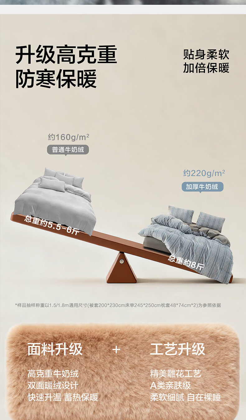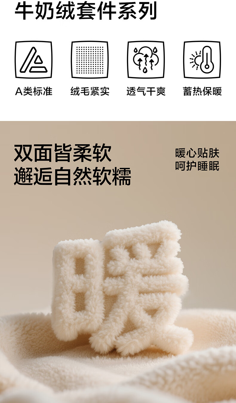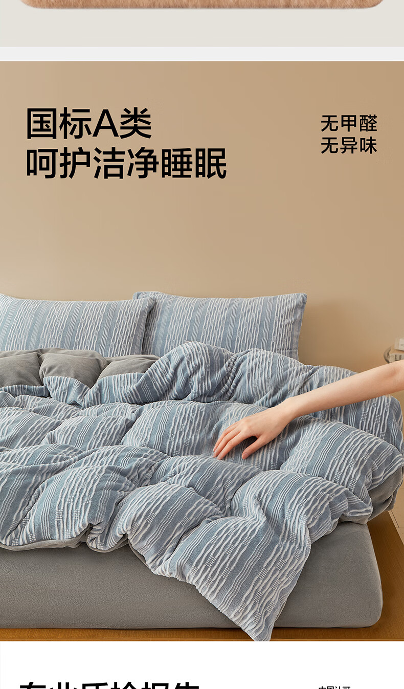 海澜之家(HLA)A类剪花牛奶绒四件套双面暖绒被套冬季加绒床上套件高级轻奢新款 白+咖色【A类加厚加密牛奶绒 剪花工艺】 三件套被套150*200 床单款 180*230