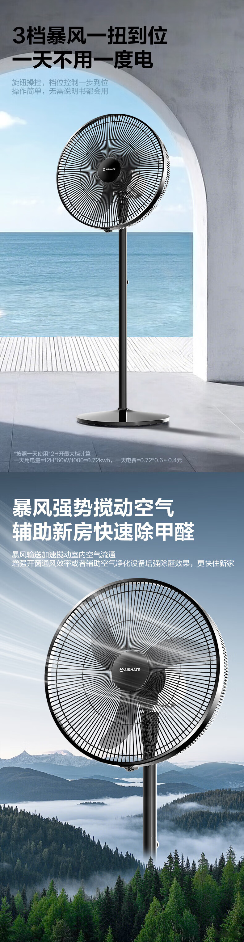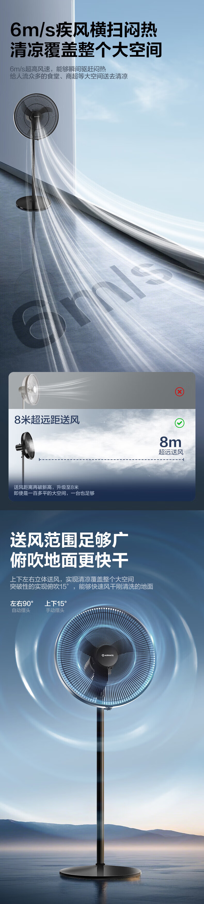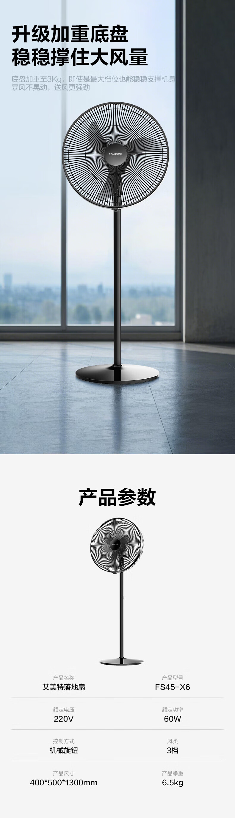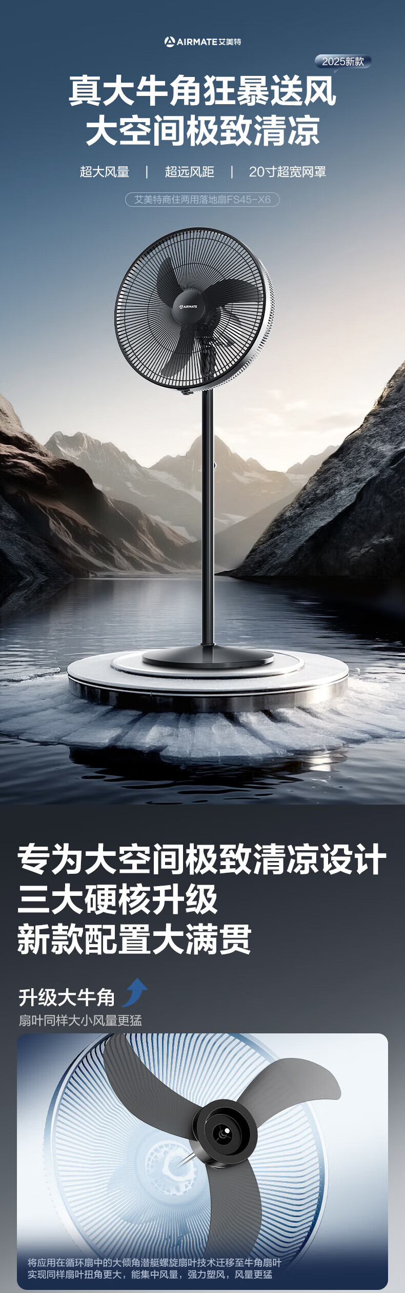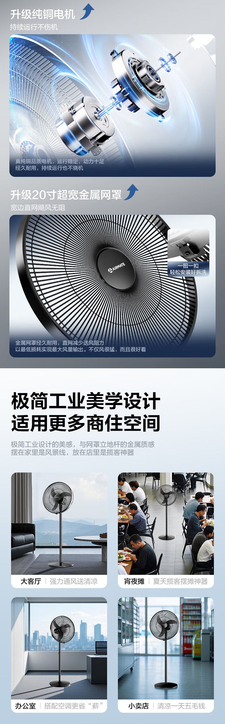 艾美特(AIRMATE)【商住两用电风扇】18寸工业牛角扇落地扇家用商用大功率电风扇纯铜电机工厂车间烧烤大风力电扇 18寸商住两用大风力牛角扇【纯铜电机+3档】