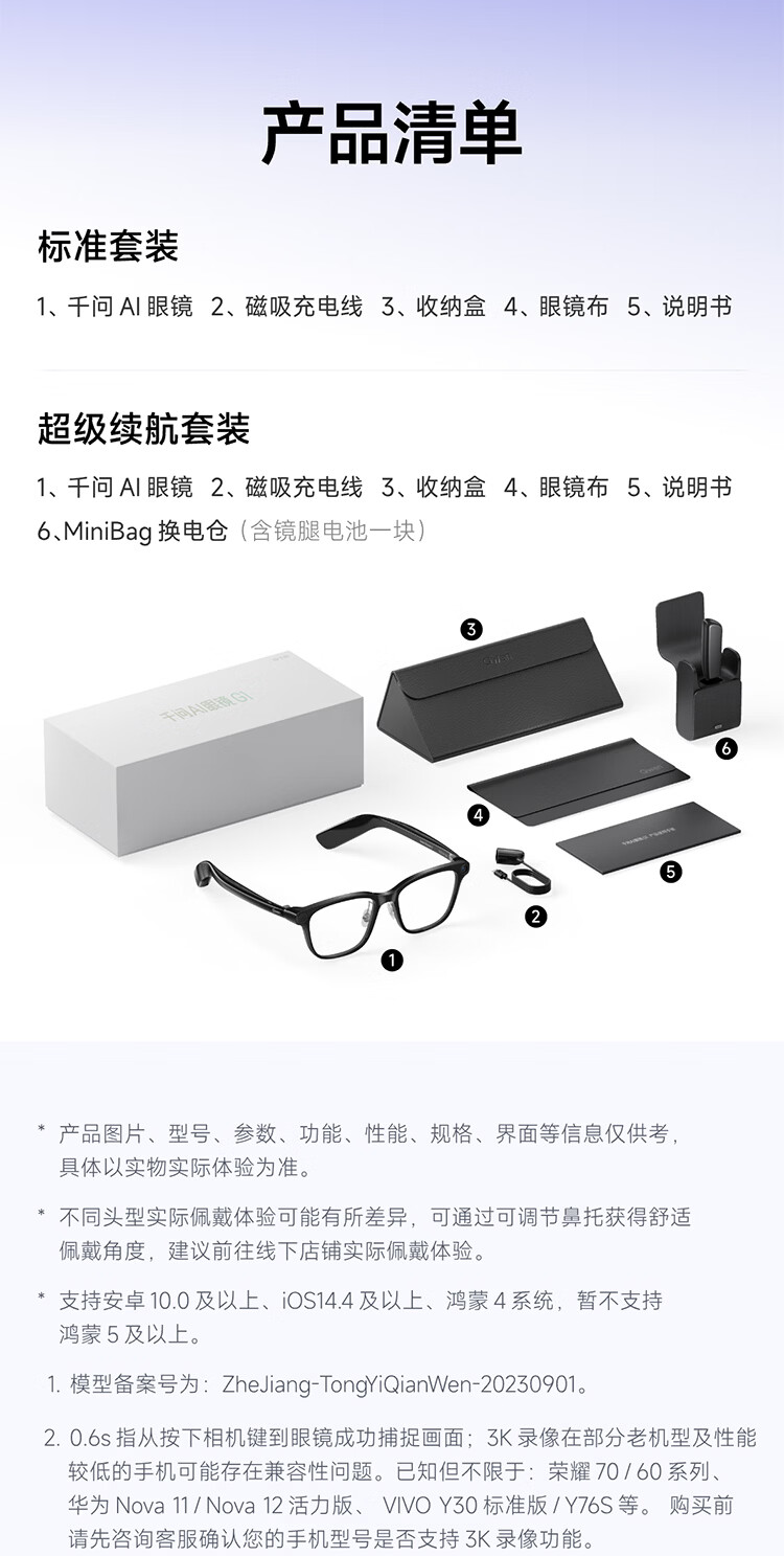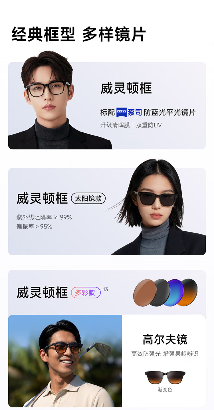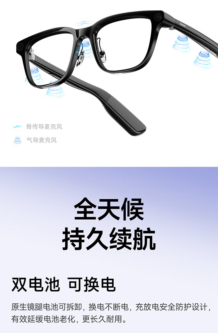 千问AI眼镜G1 智能眼镜AI大模型助手 无限续航翻译拍照录像眼镜 蓝牙耳机 高科技礼物 政府补贴立省15% 威灵顿框 标准套装 蔡司【防蓝光镜片】平光镜