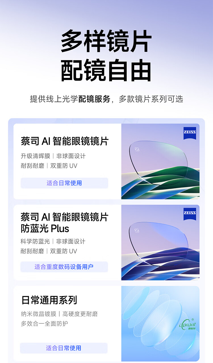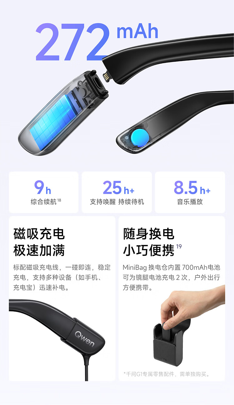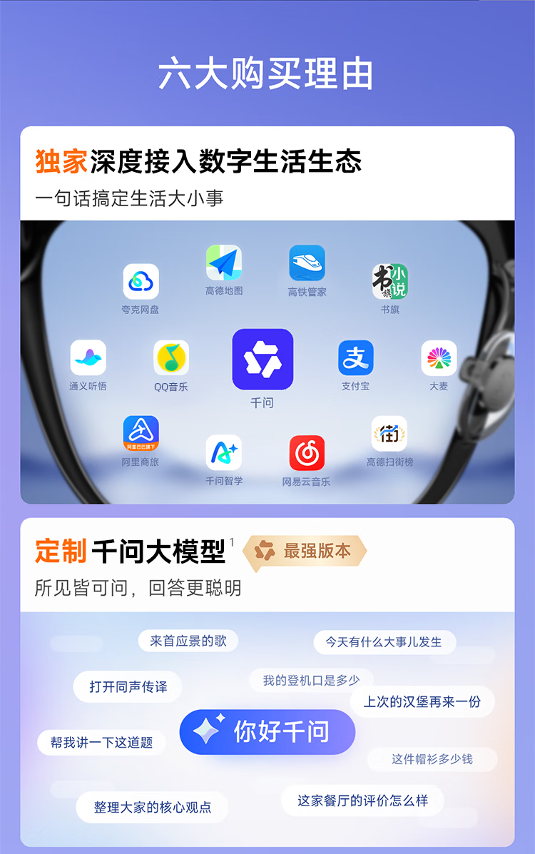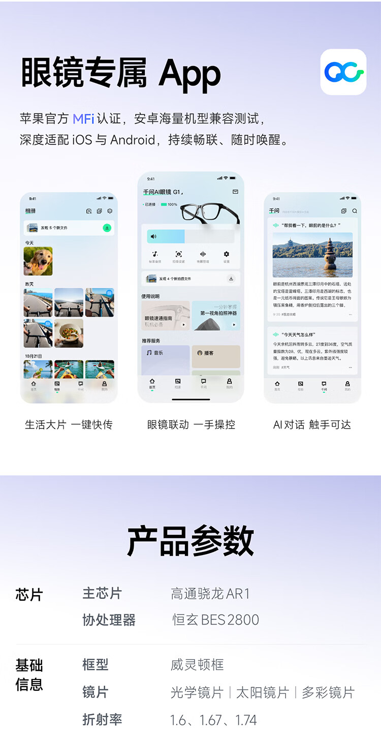 千问AI眼镜G1 智能眼镜AI大模型助手 无限续航翻译拍照录像眼镜 蓝牙耳机 高科技礼物 政府补贴立省15% 威灵顿框 标准套装 蔡司【防蓝光镜片】平光镜