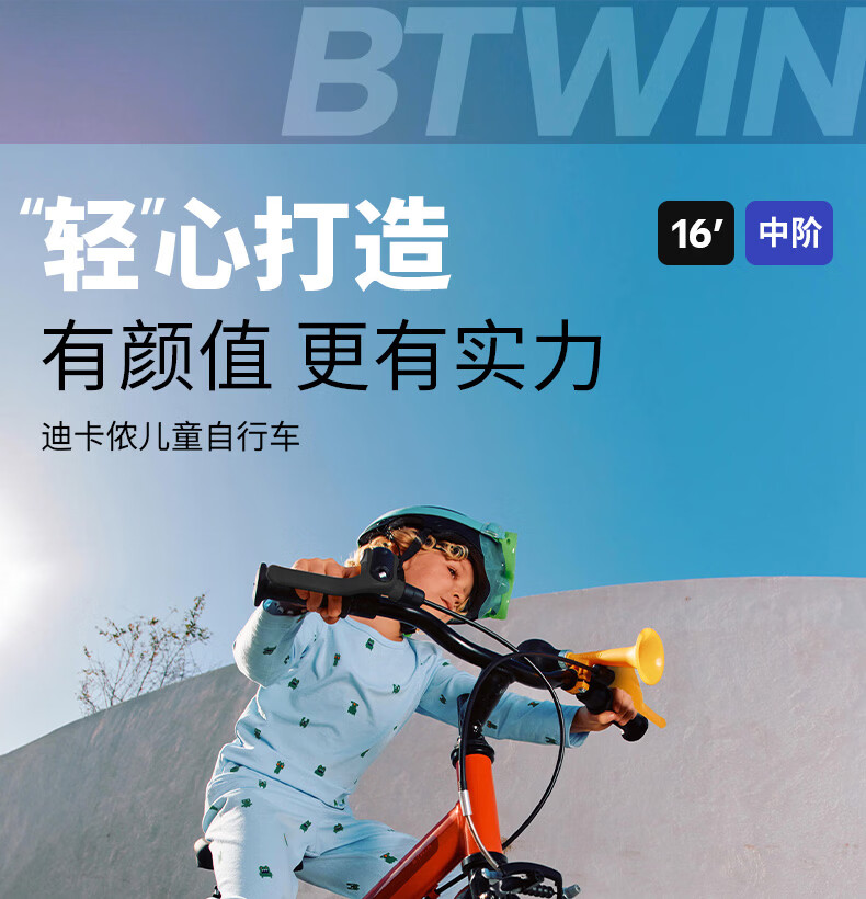 迪卡侬儿童自行车单车脚踏车男孩女孩宝宝童车OVBK 16寸儿童自行车-森光绿 【铝架】 单速