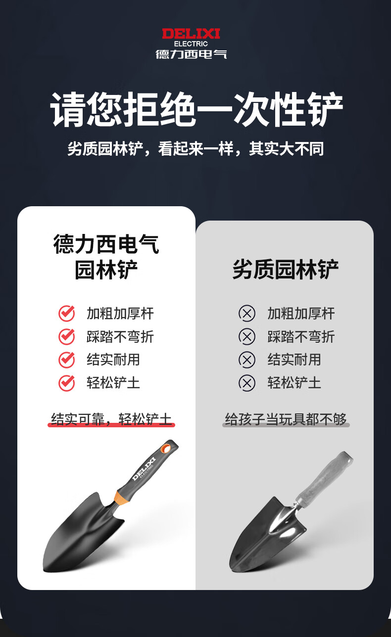 德力西种花园艺工具小铲子沙滩赶海神器家用养花盆栽种菜