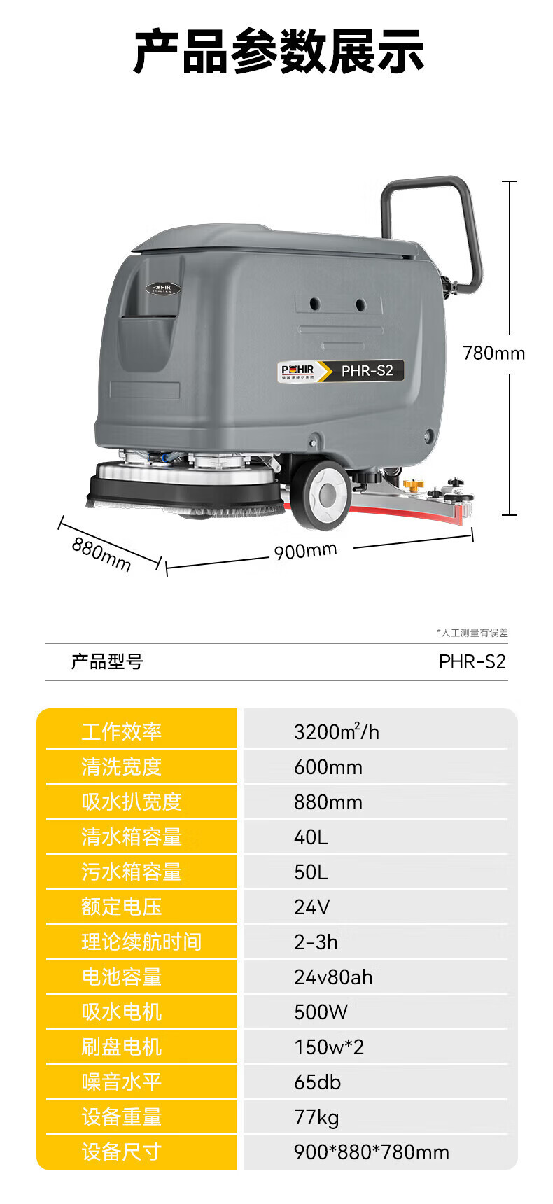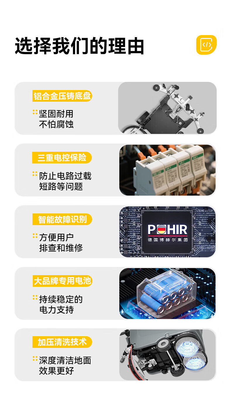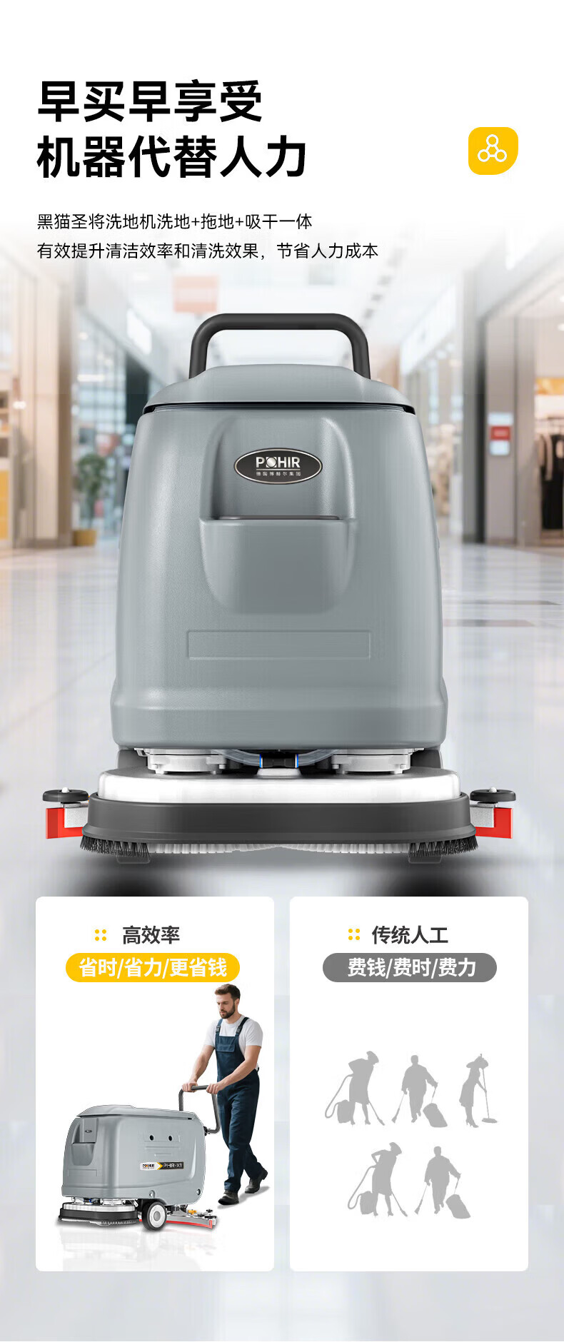 博赫尔(POHIR)德国博赫尔集团商用洗地机手推式工业工厂物业商场车库拖吸一体扫地机 PHR-S2手推双刷免维护款