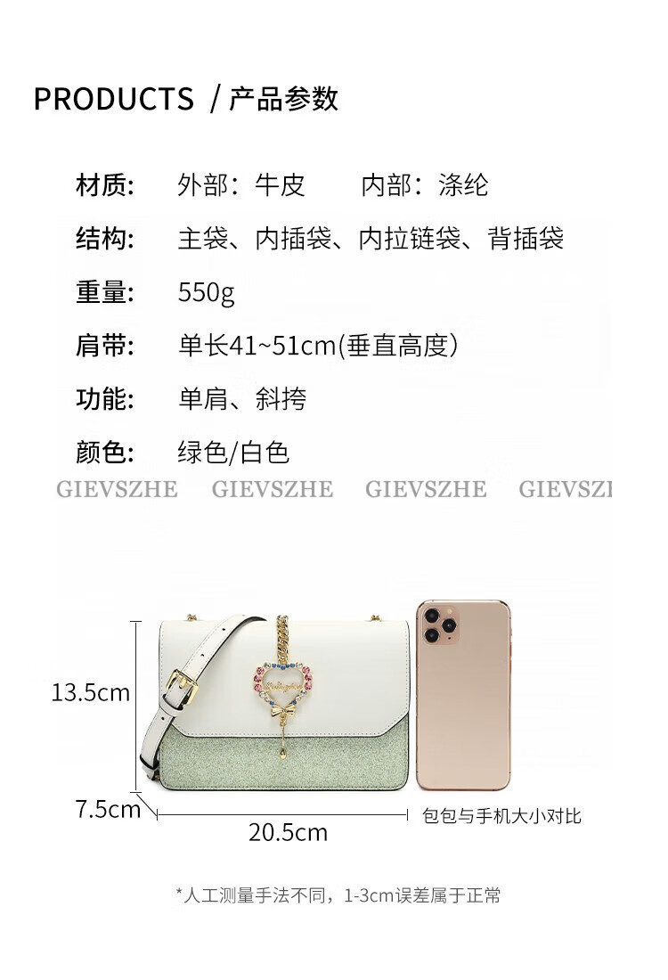纪诗哲(GIEVSZHE)包包女包2026年新款轻奢侈女士斜挎包情人节生日礼物送女友 青绿色【次日达】热销推荐 品牌礼盒装