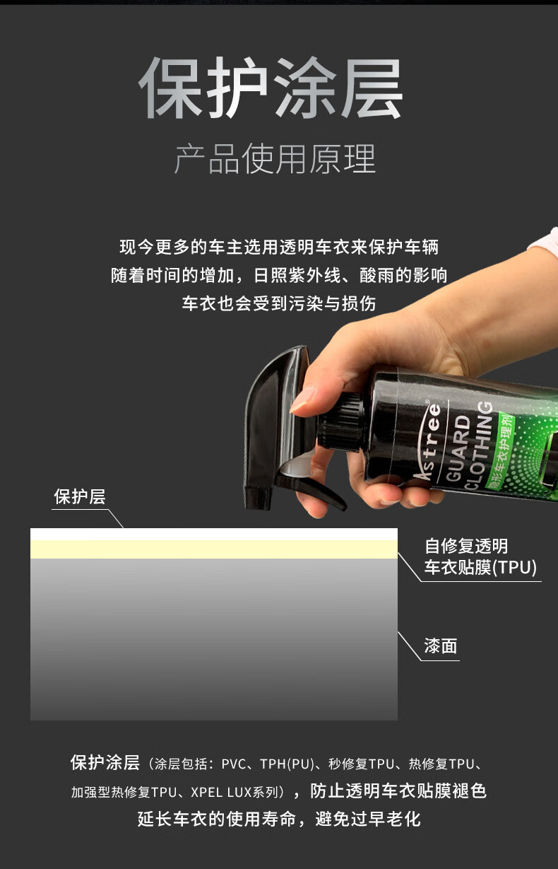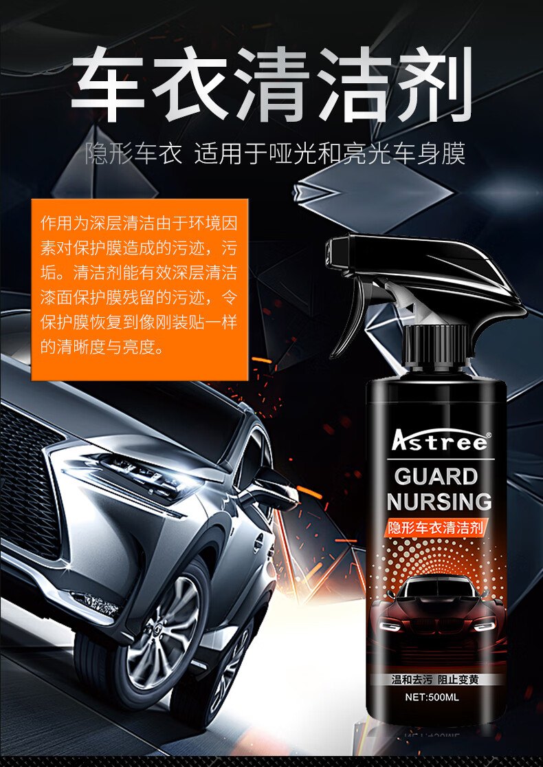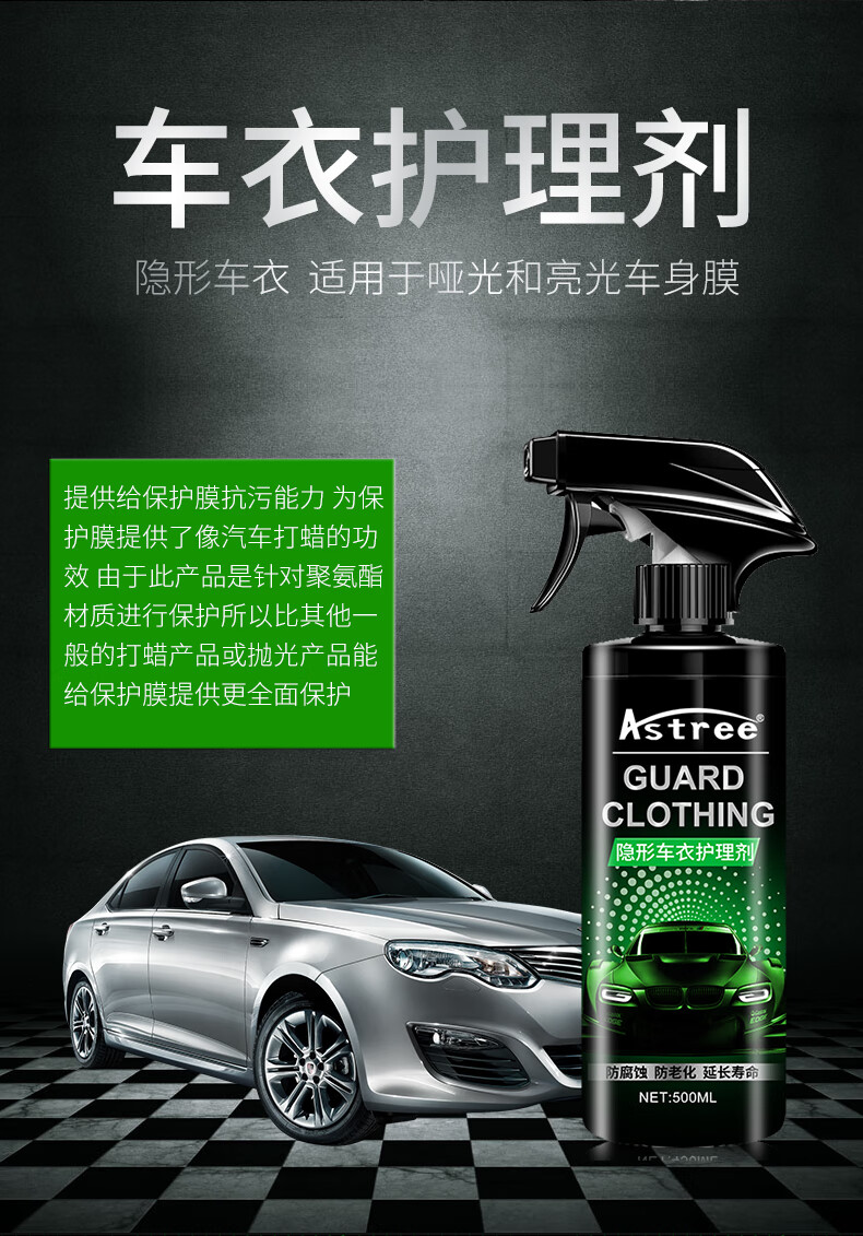 Astree春节正常发货、汽车隐形车衣保养液护理液养护去污清洗清洁剂增亮 车衣护理剂500ml
