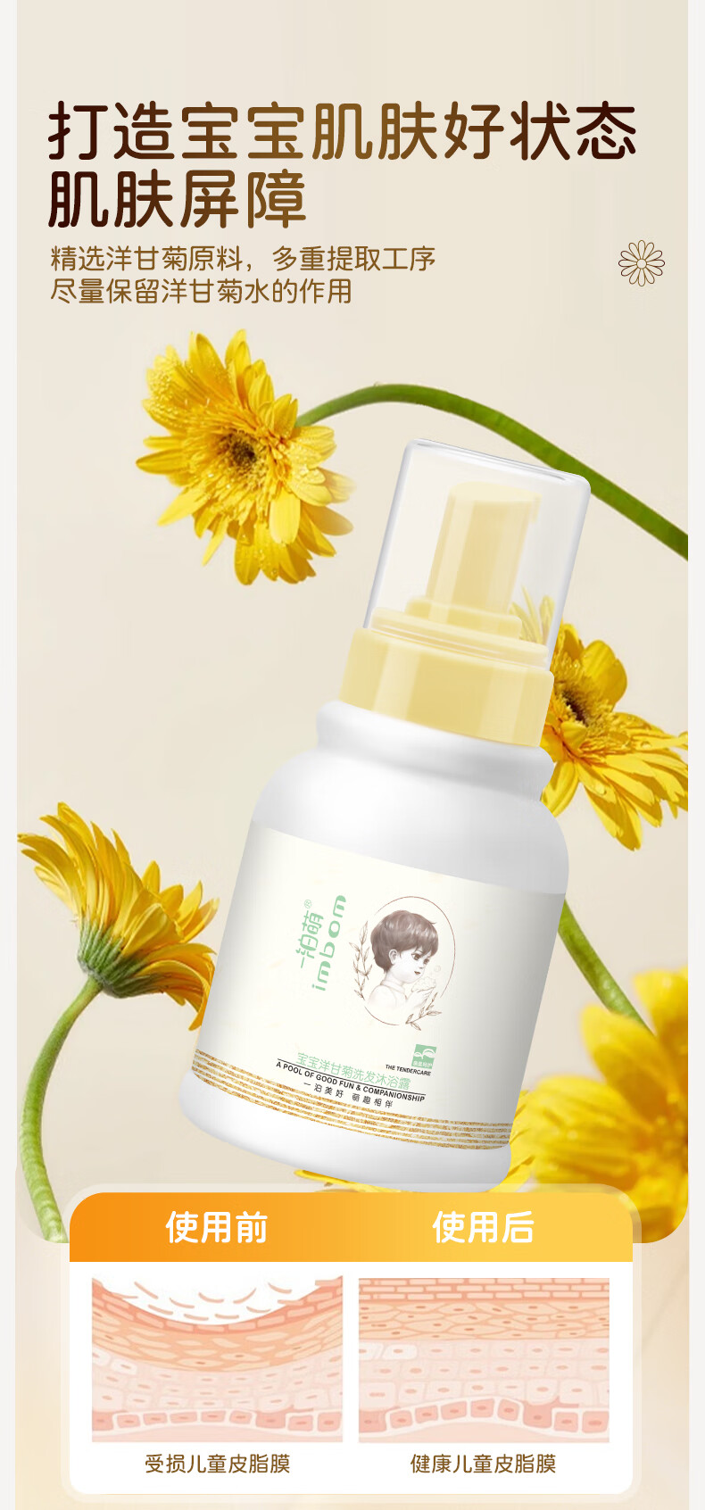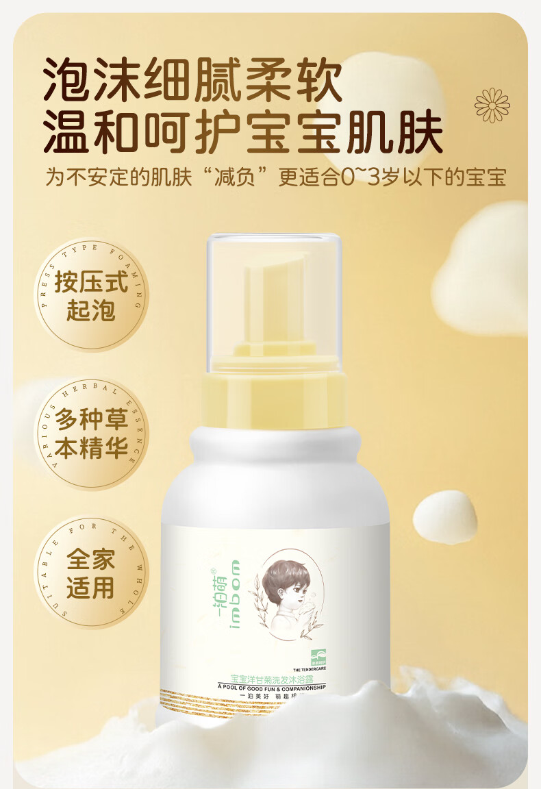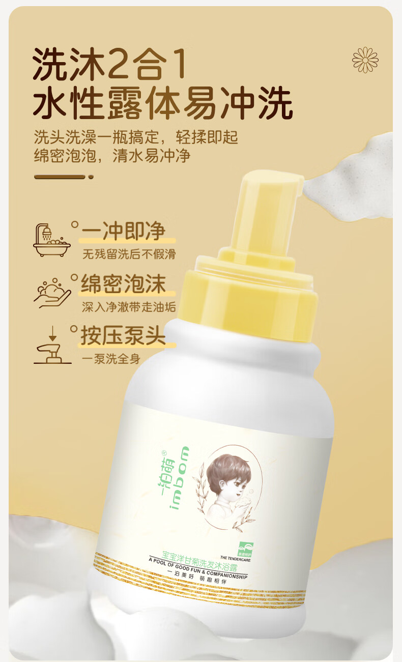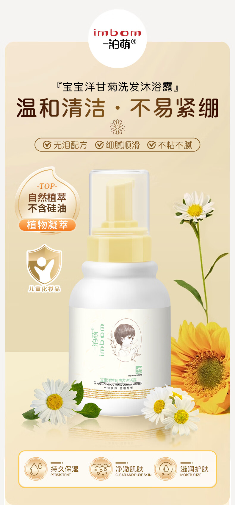 一泊萌洋甘菊洗发沐浴露儿童二合一多泡泡柔顺无泪洗发水沐浴露清洁润肤 洋甘菊320ml*3