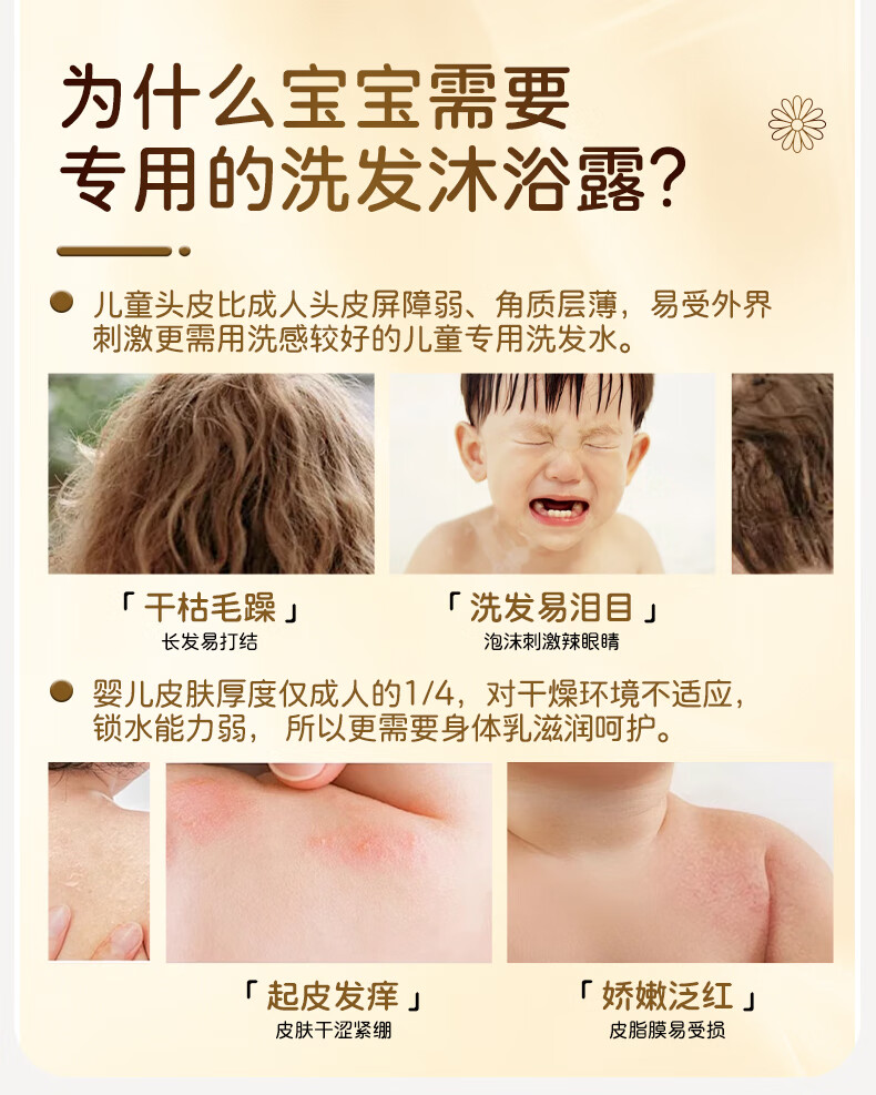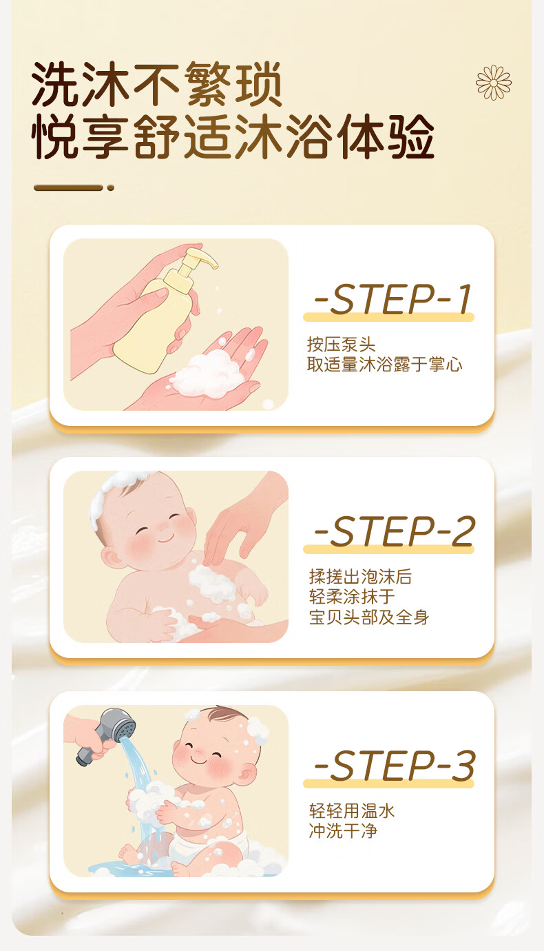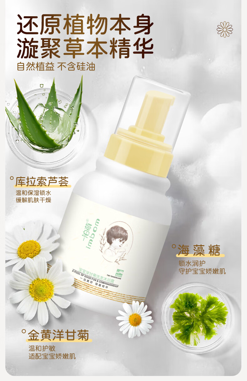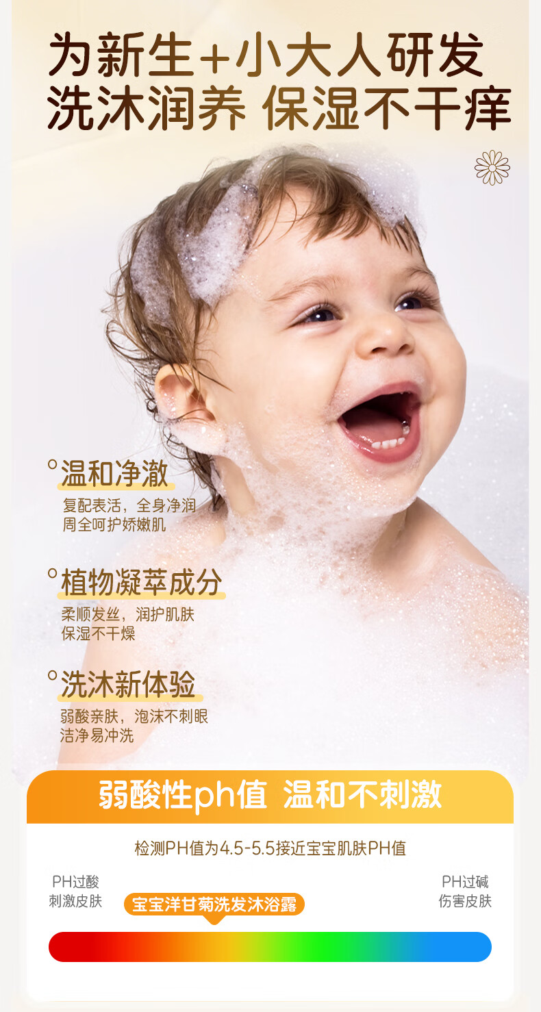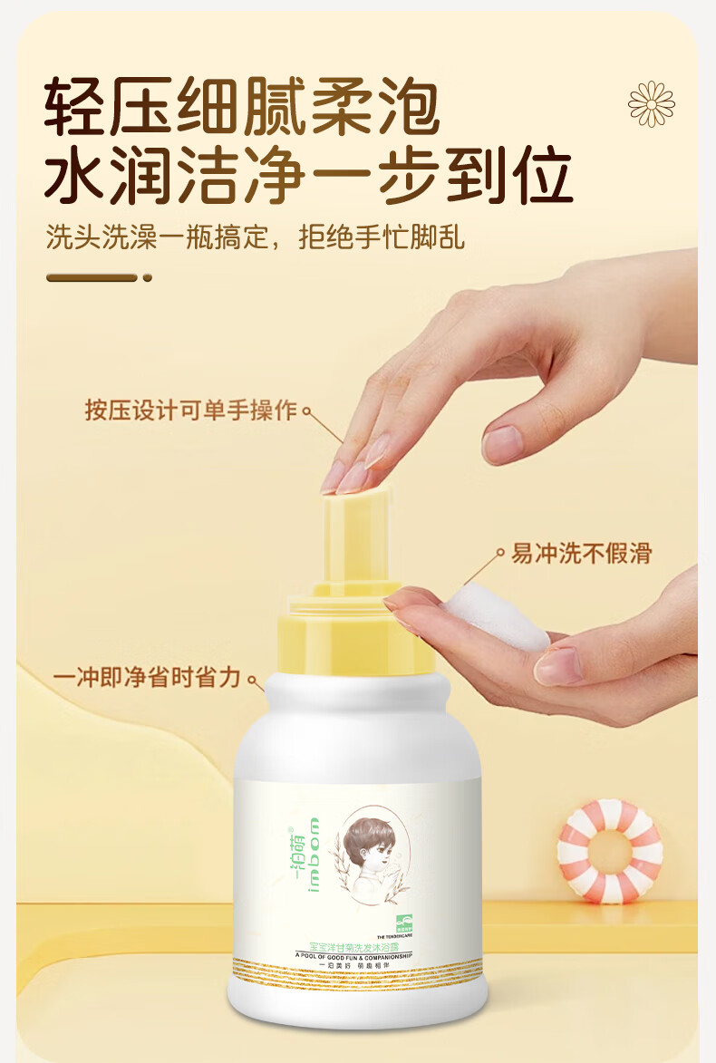 一泊萌洋甘菊洗发沐浴露儿童二合一多泡泡柔顺无泪洗发水沐浴露清洁润肤 洋甘菊320ml*3