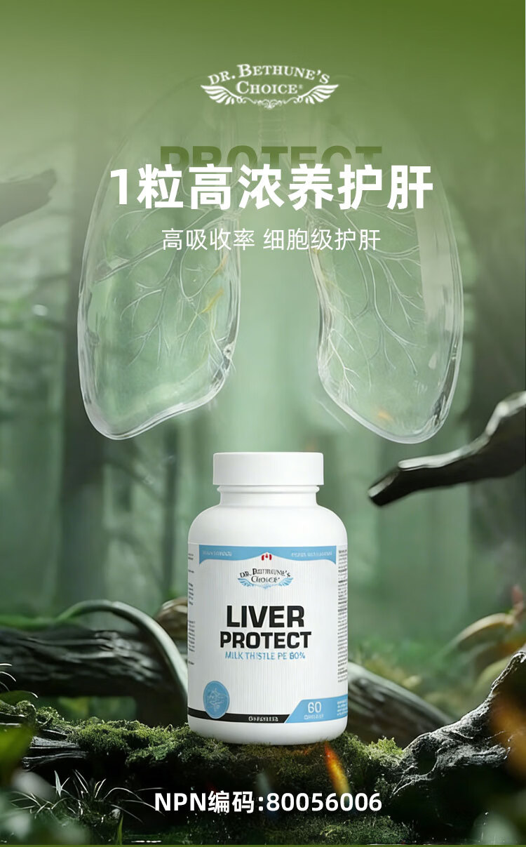 Dr. Bethune's Choice白求恩医生之选 护肝片养肝应酬男女熬夜加班肝火 加拿大天然提取 天然成分护肝片60粒/瓶 朝鲜蓟根提取物、蒲公英根提取物、西洋蓍草粉