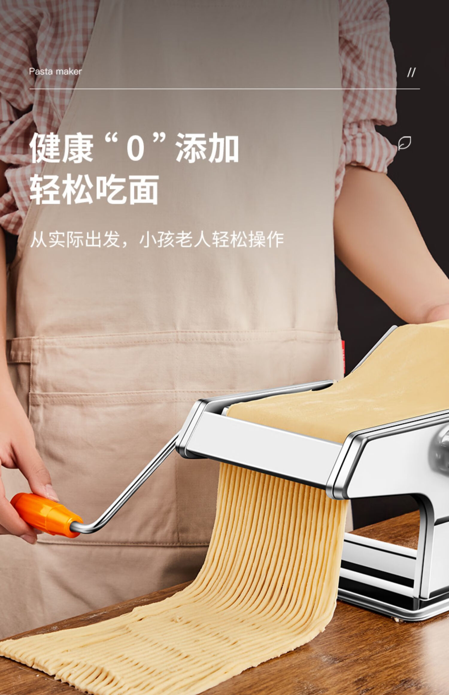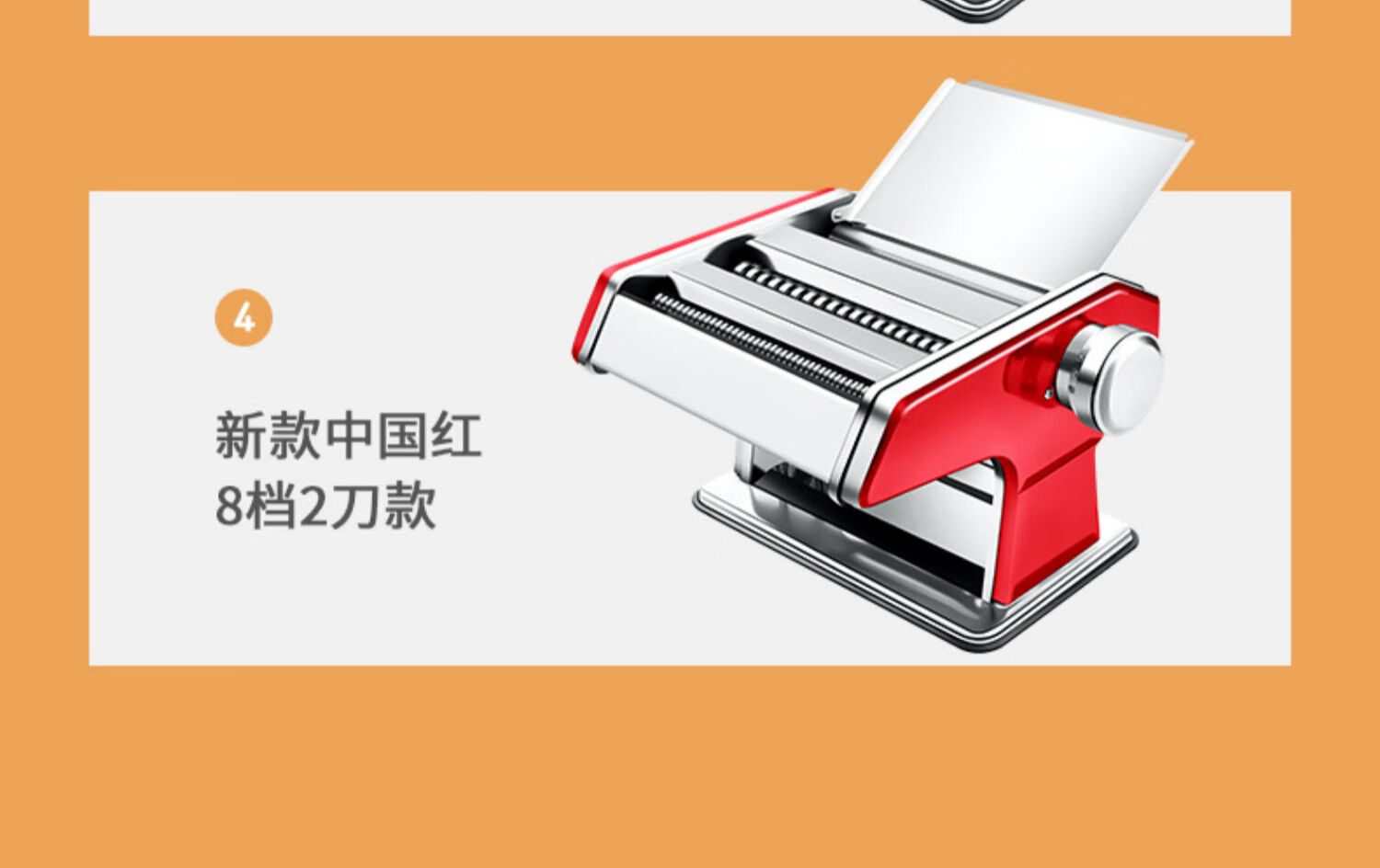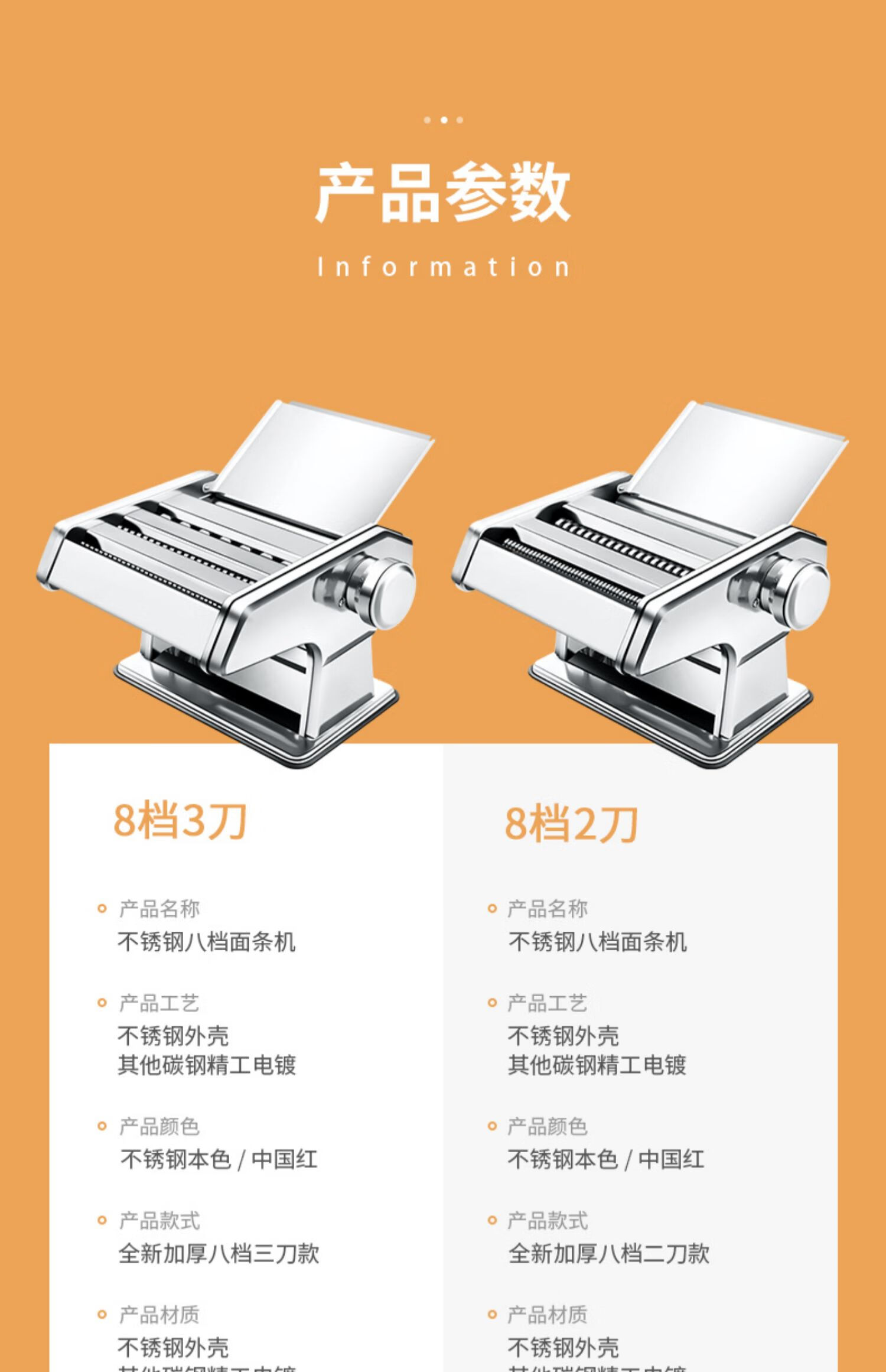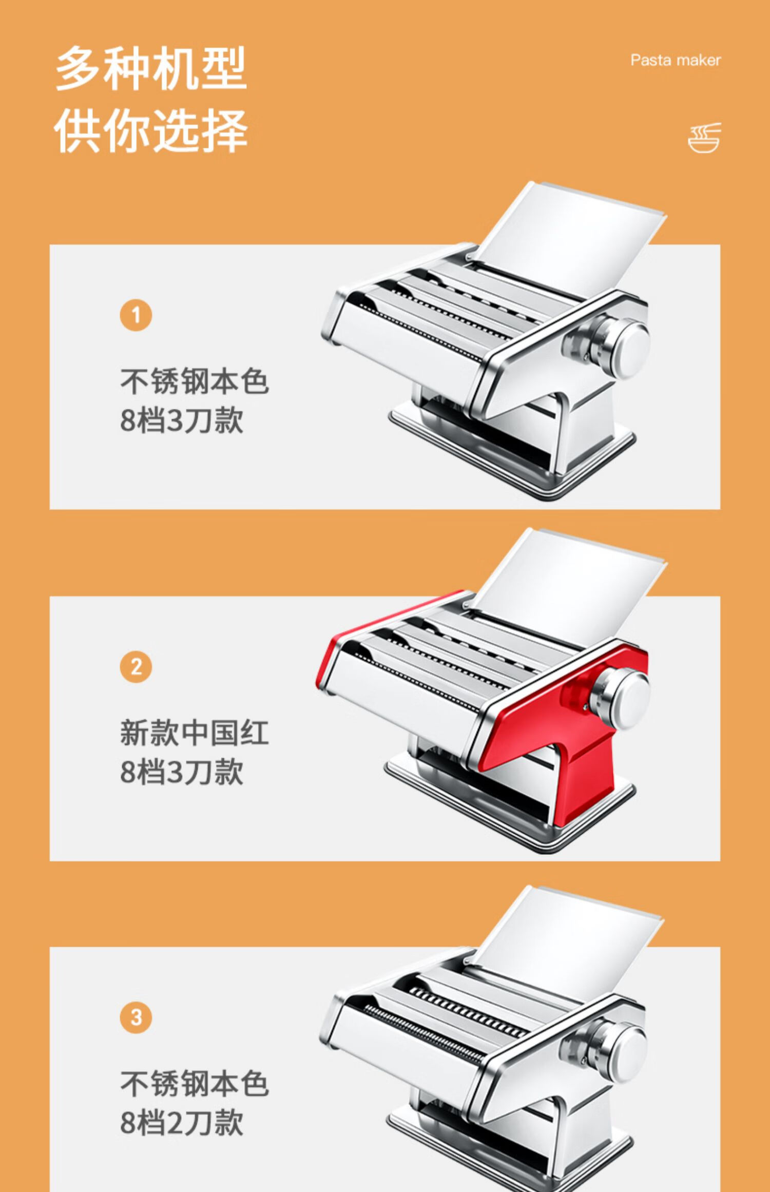 希格鲨家庭用面条机小型多功能压面机手动擀面机制面机饺子馄饨皮机 至尊红【豪华款-三刀】配挂面架 无规格