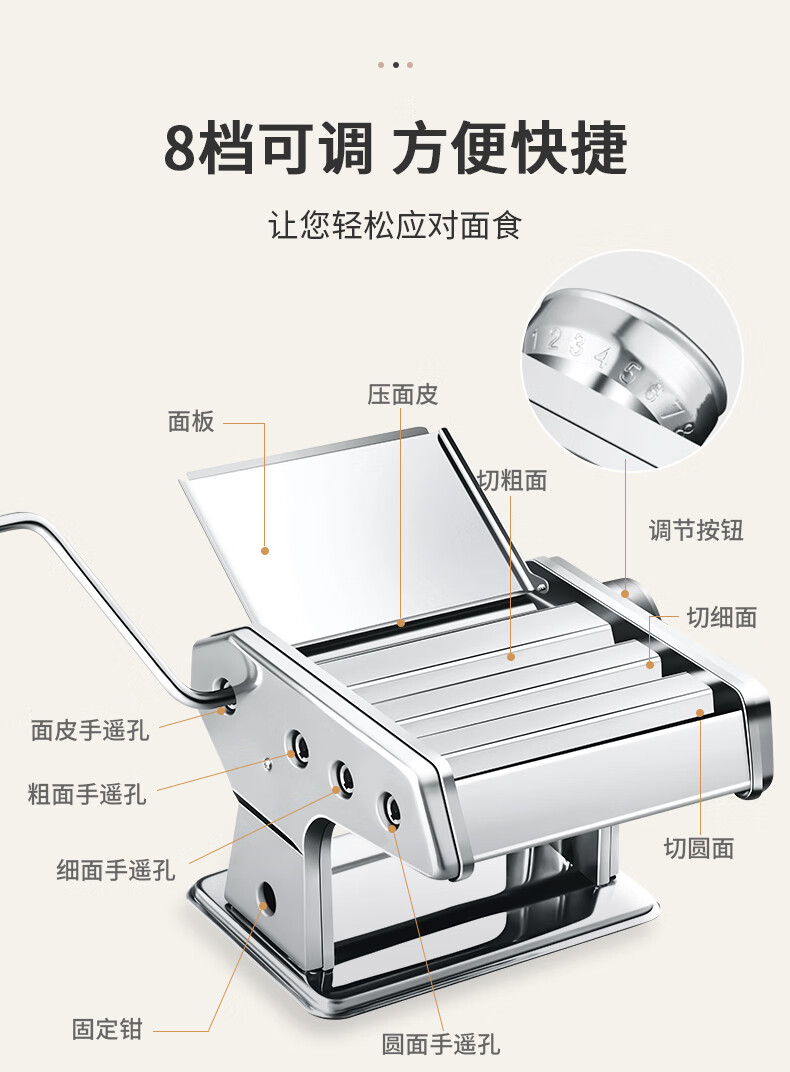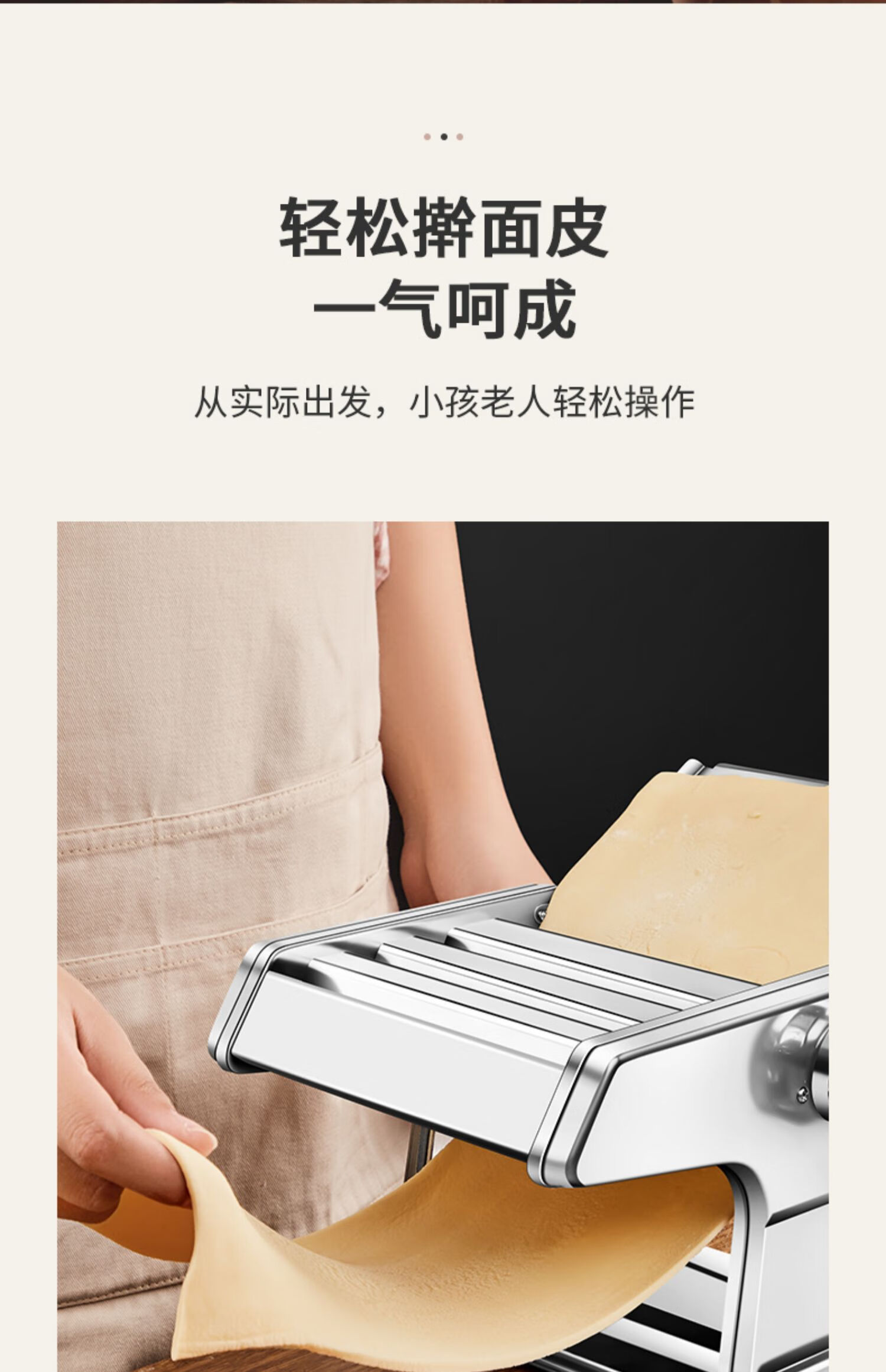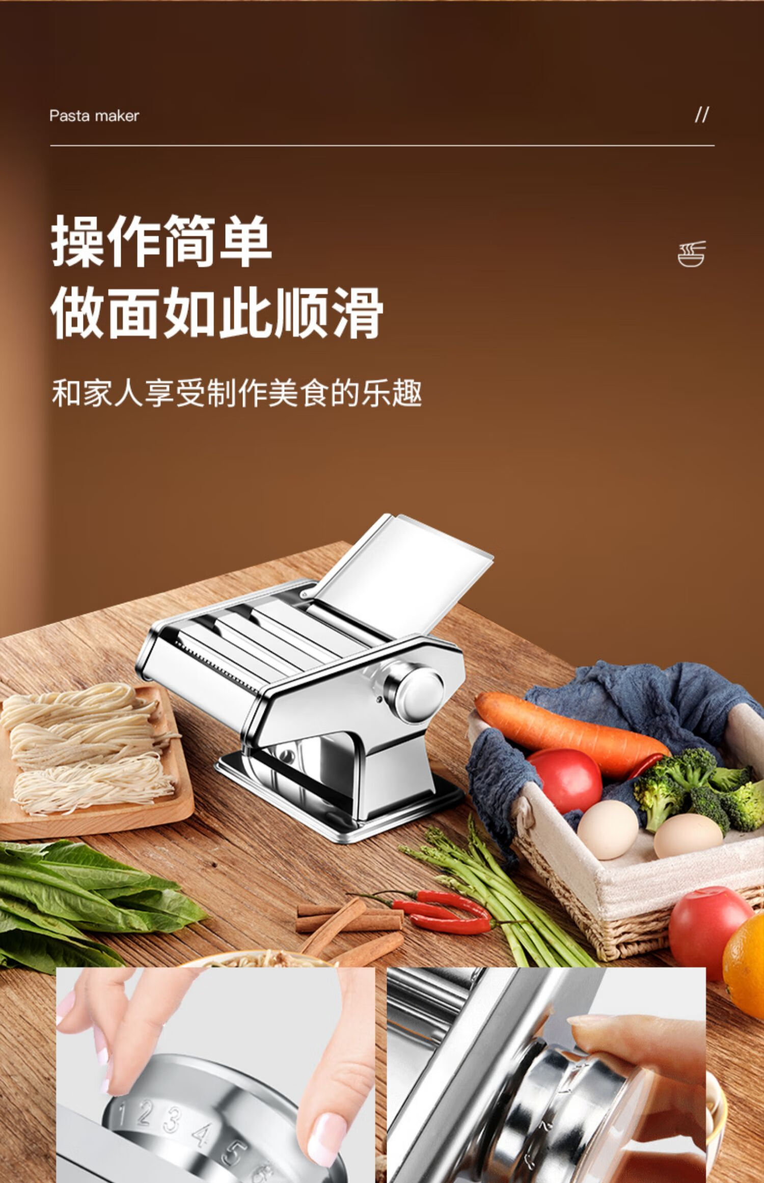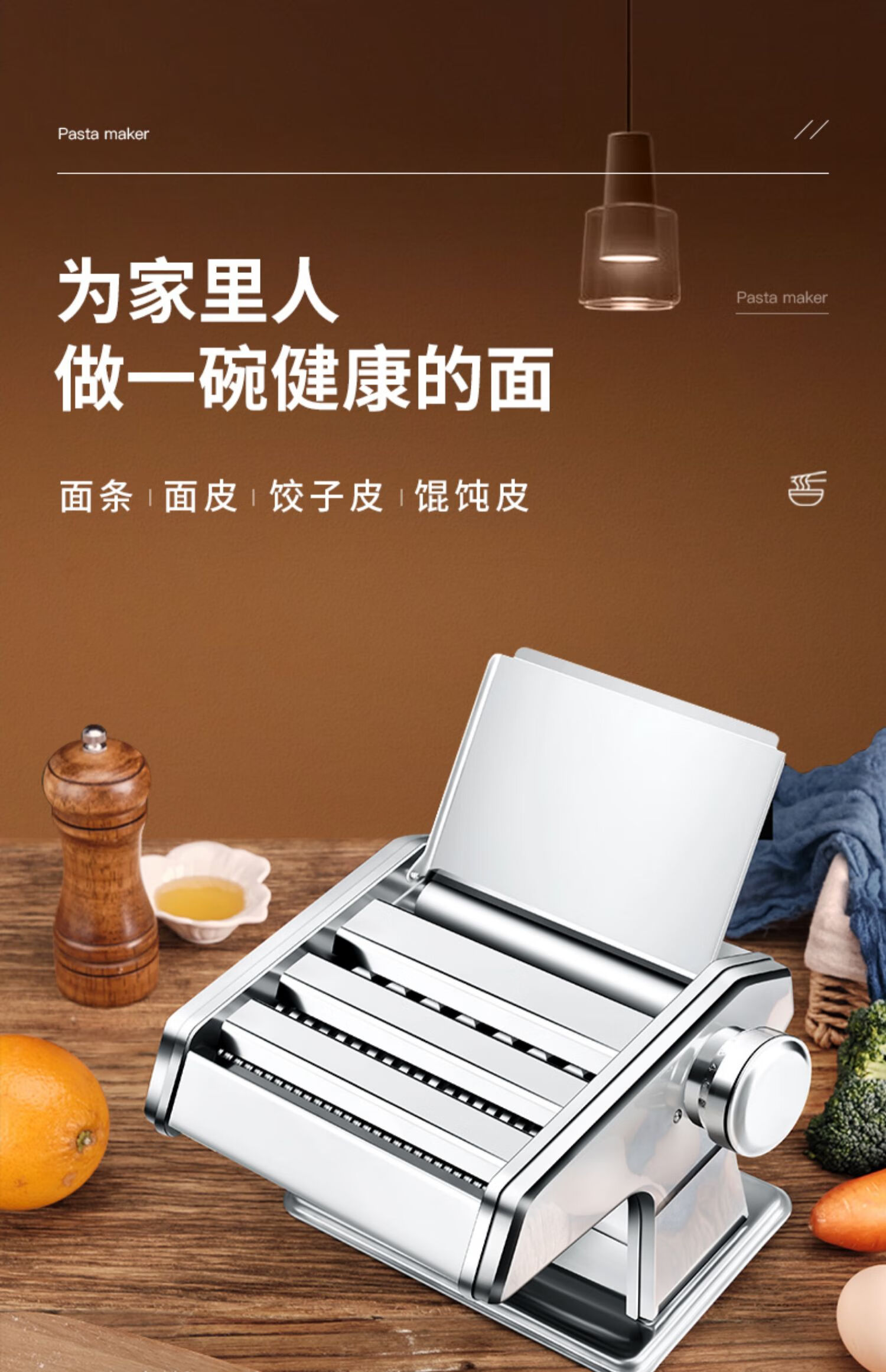 希格鲨家庭用面条机小型多功能压面机手动擀面机制面机饺子馄饨皮机 至尊红【豪华款-三刀】配挂面架 无规格