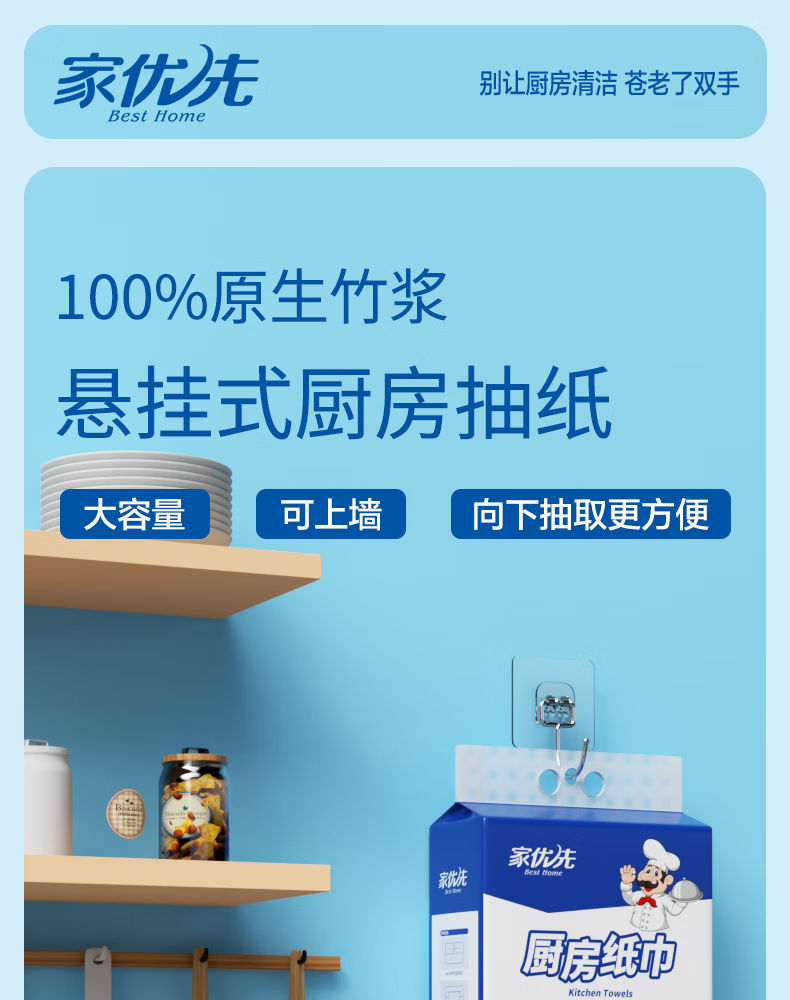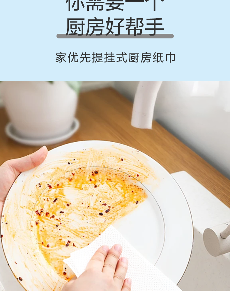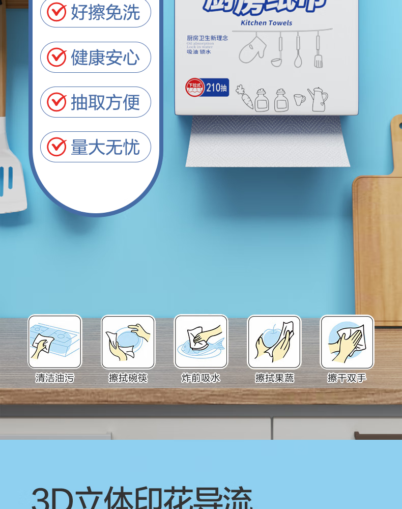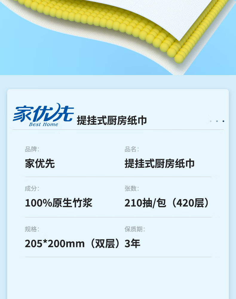 家优先厨房抽纸 双层加厚 吸水吸油大规格加厚一次性懒人抹布 2层 210抽*6包