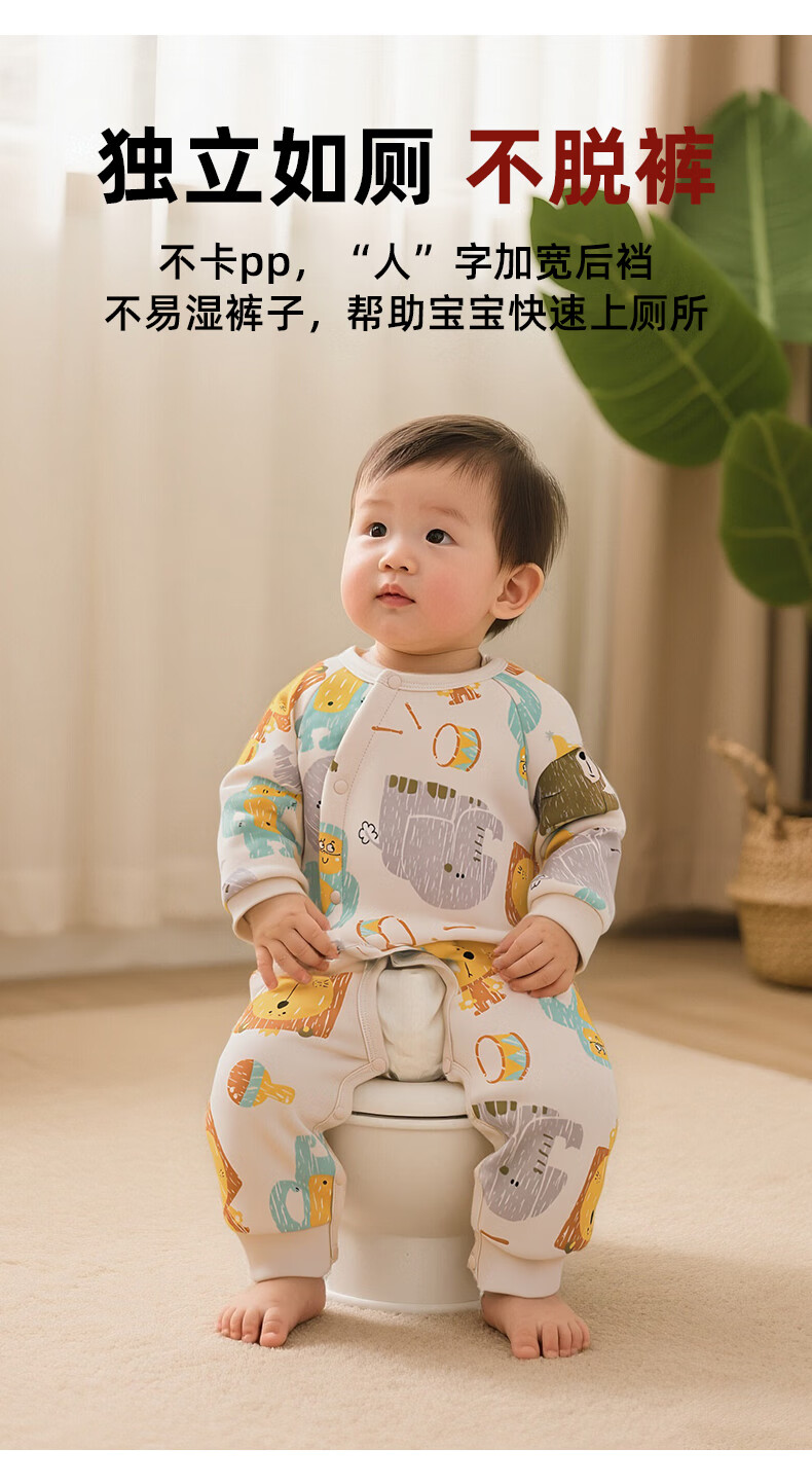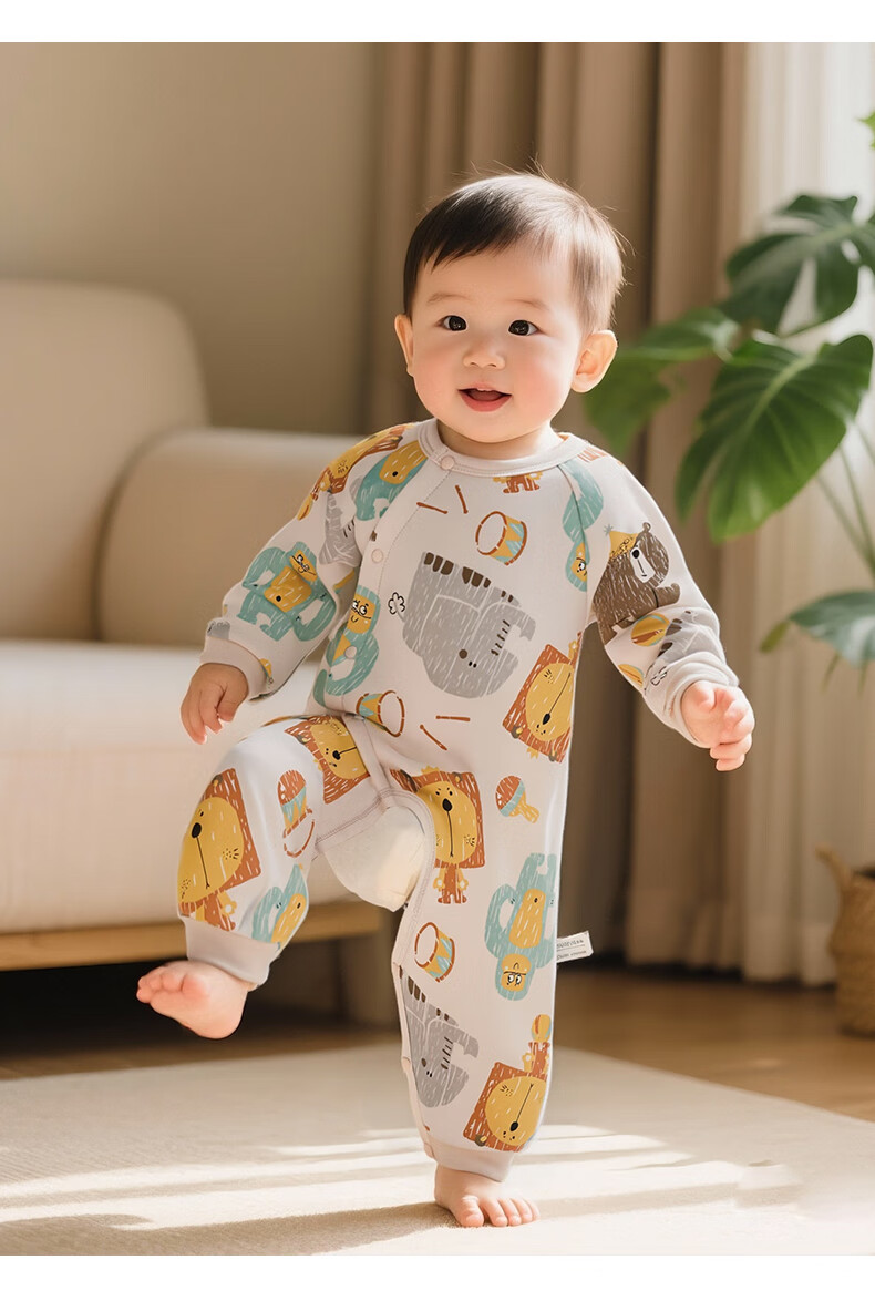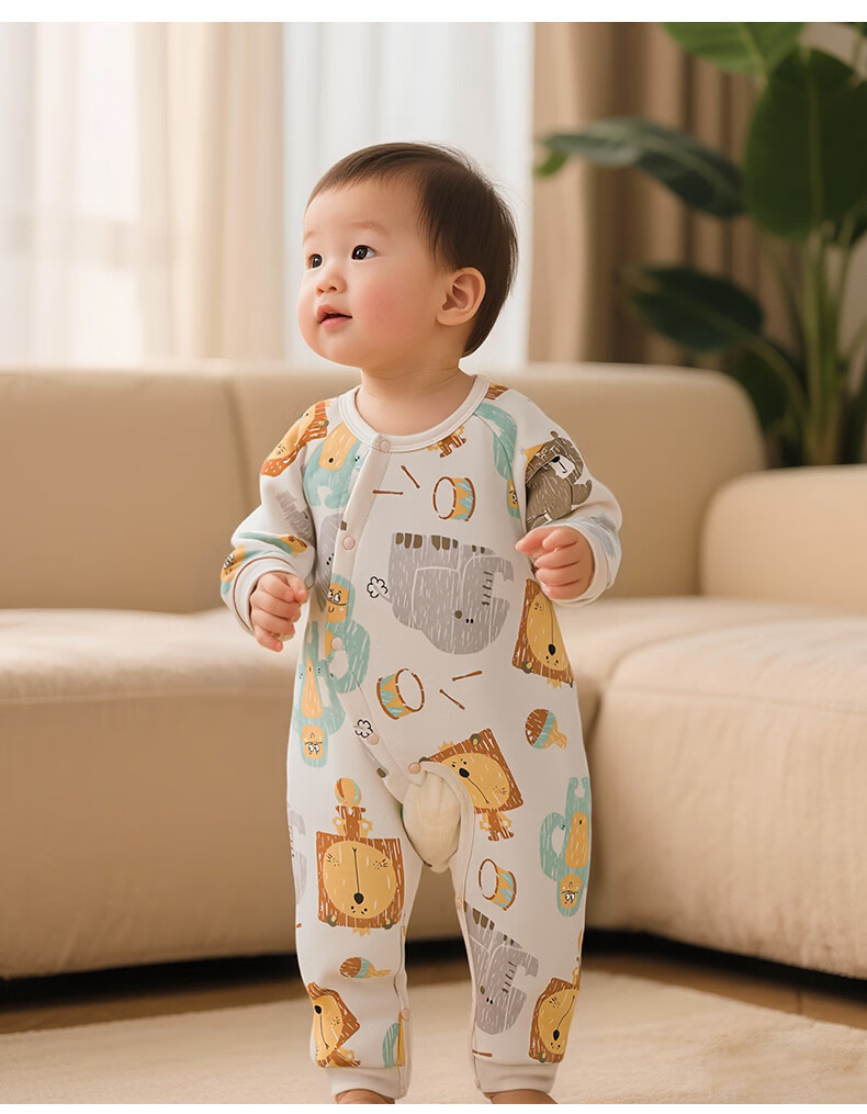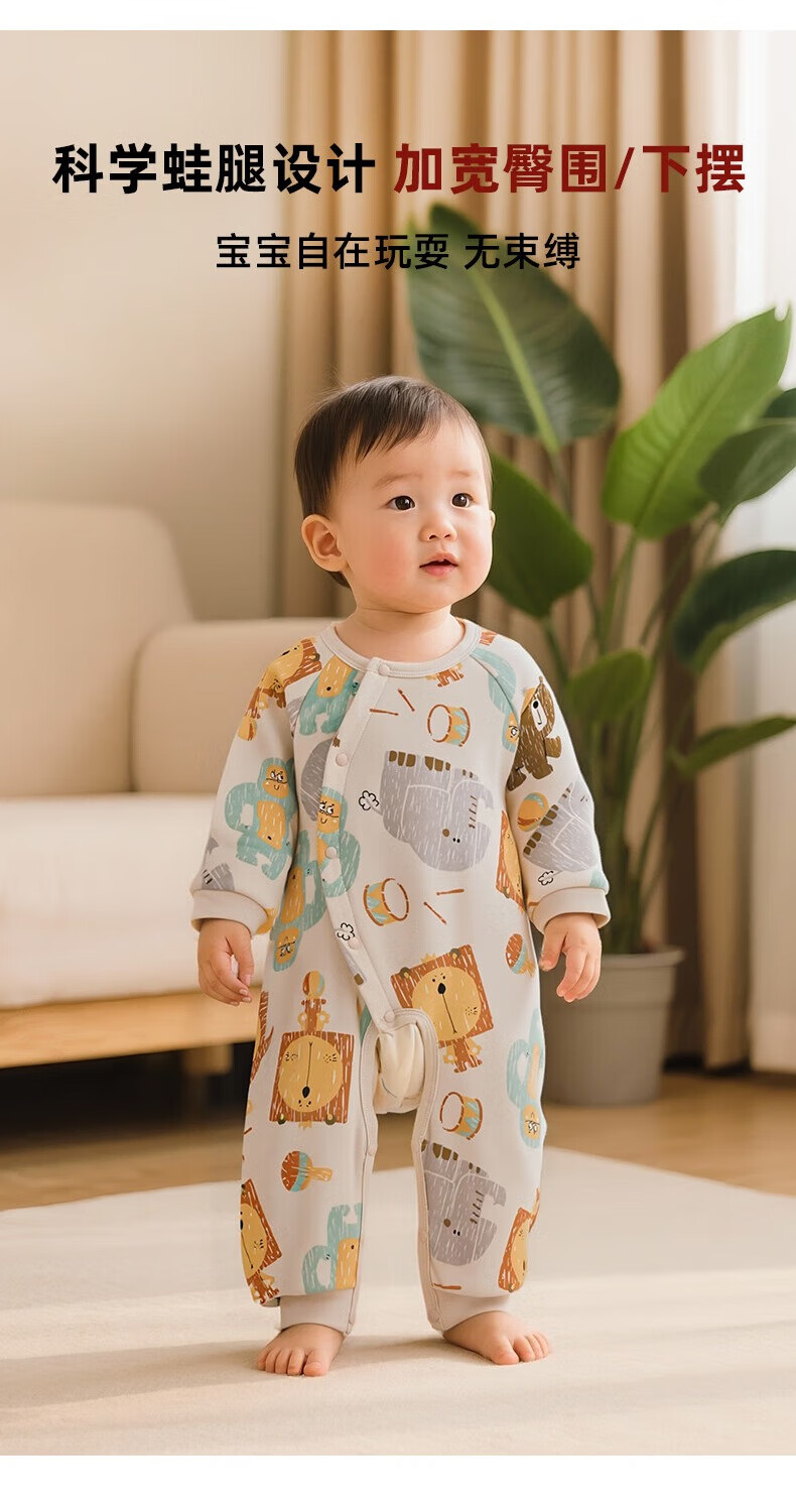 wua·wua婴儿连体衣薄款春秋纯棉开裆睡衣开档宝宝衣服婴幼儿爬服学尿戒尿 满印马戏团 90cm (适合12-18月 体重18-26斤)