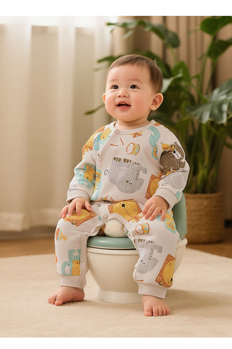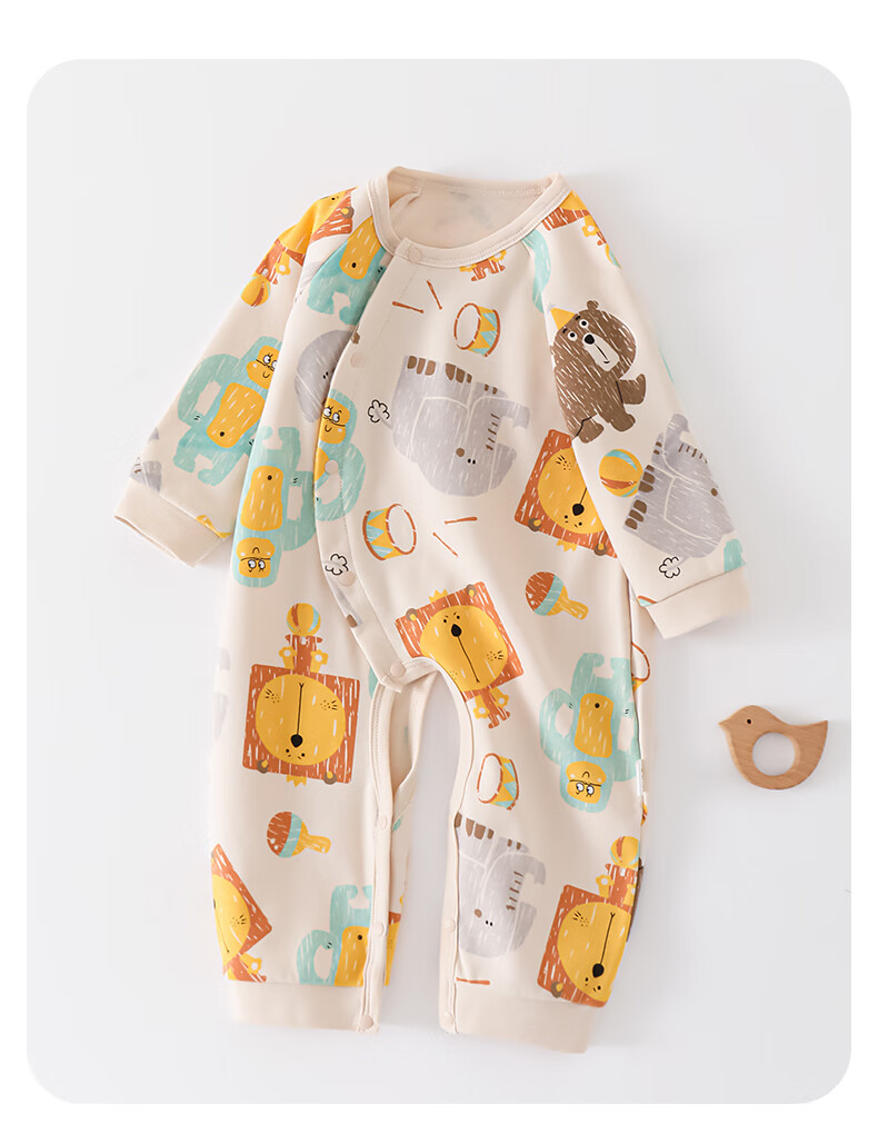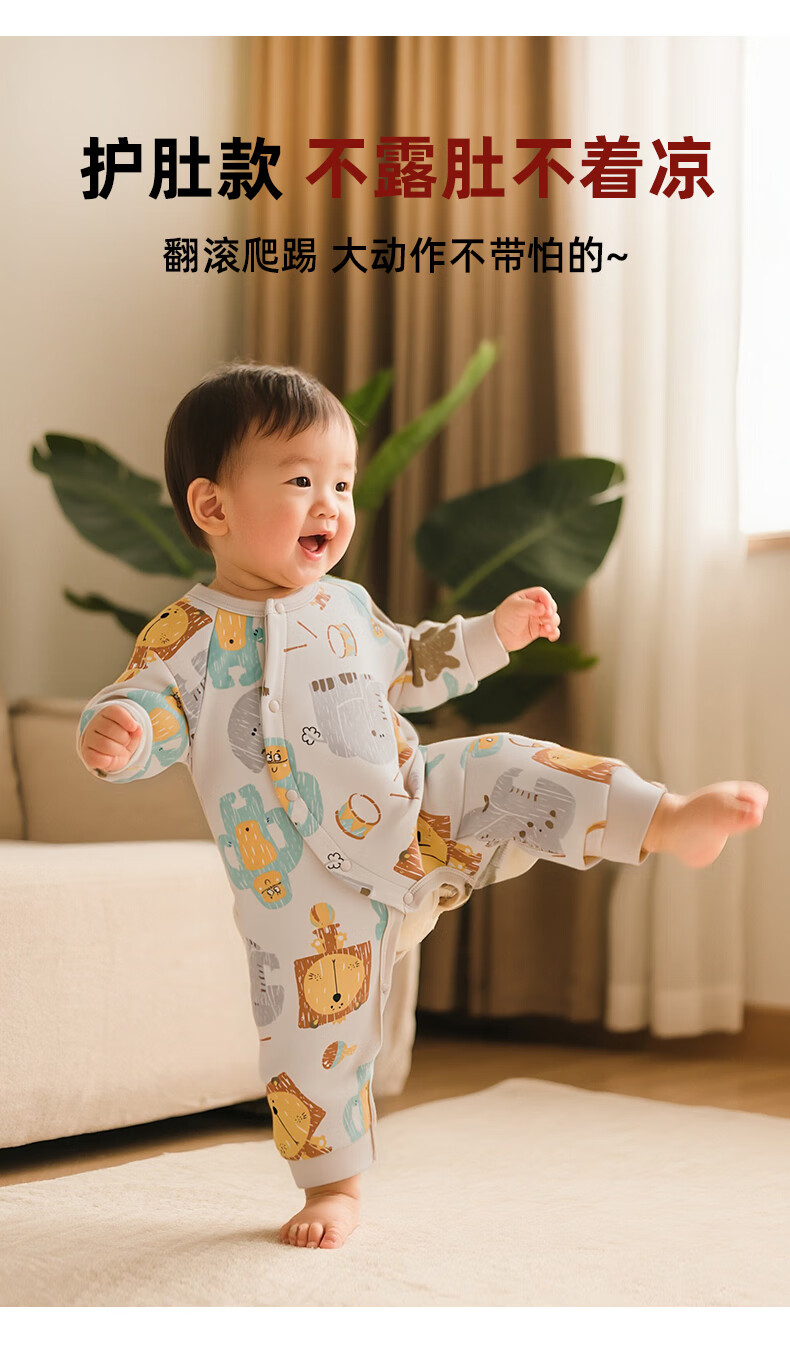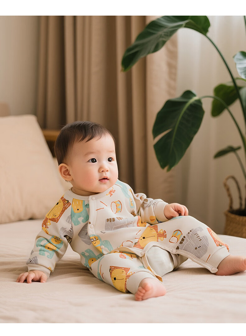 wua·wua婴儿连体衣薄款春秋纯棉开裆睡衣开档宝宝衣服婴幼儿爬服学尿戒尿 满印马戏团 90cm (适合12-18月 体重18-26斤)