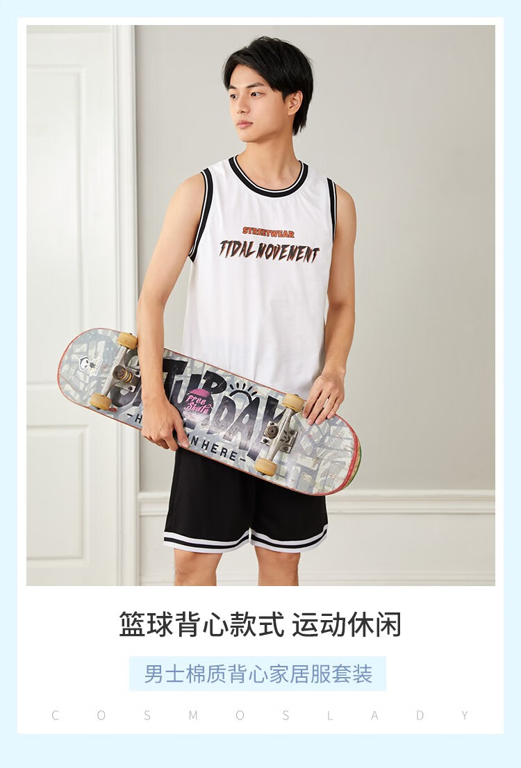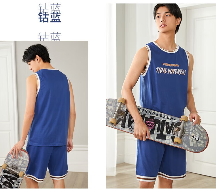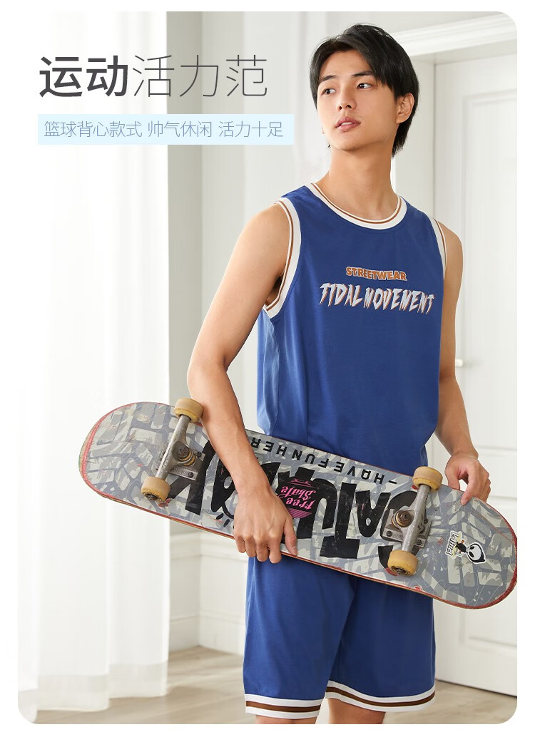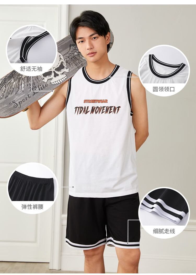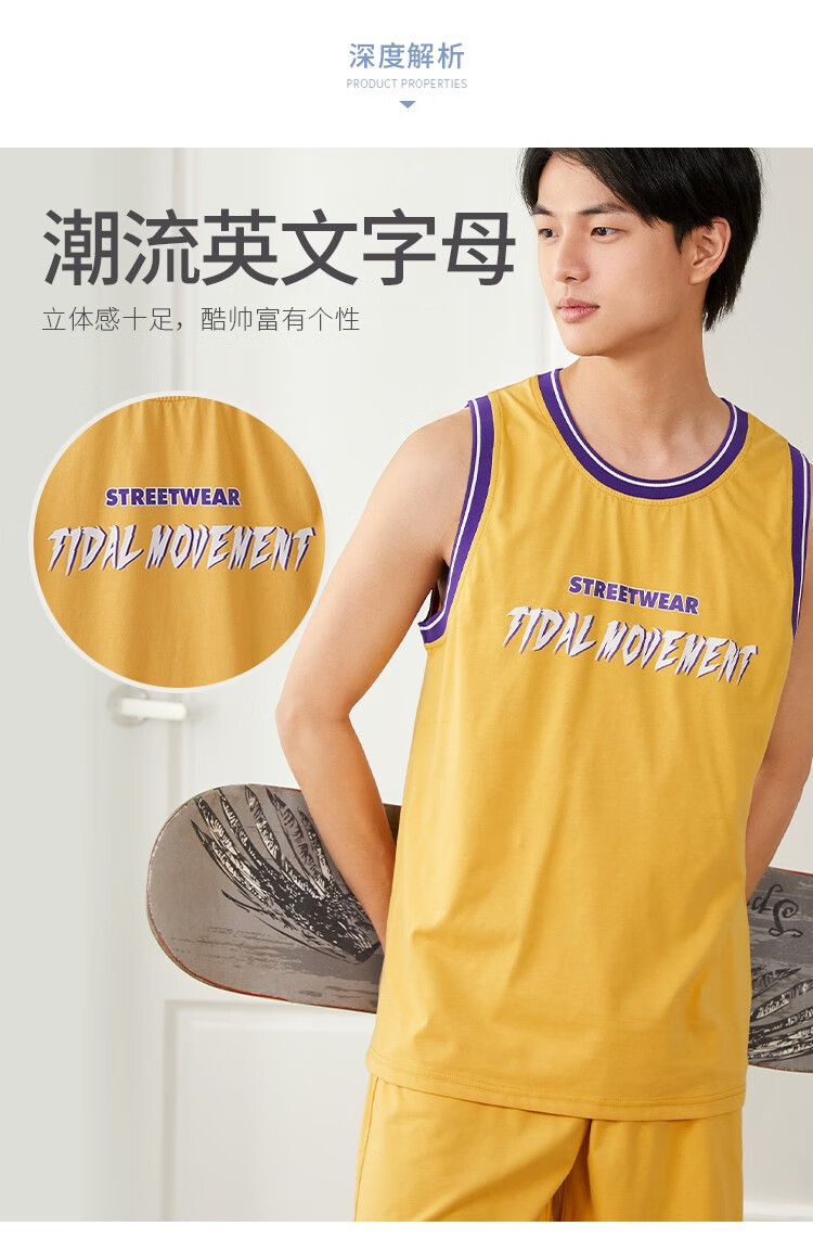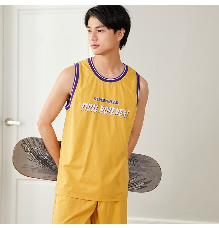 都市丽人睡衣男春季舒适休闲运动背心短裤男士套装4H12A7 黄色 L