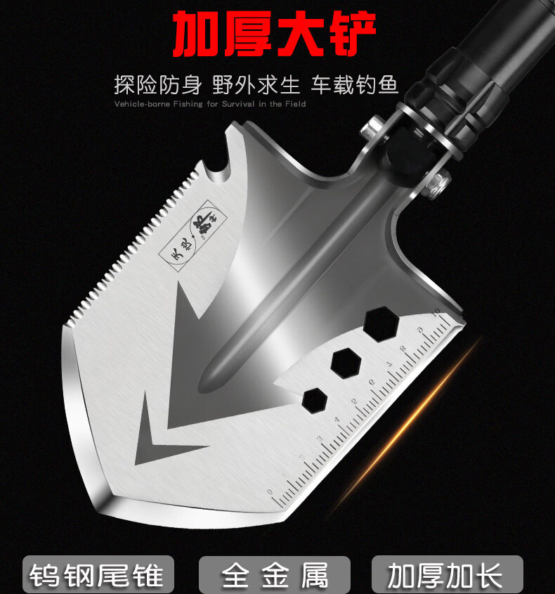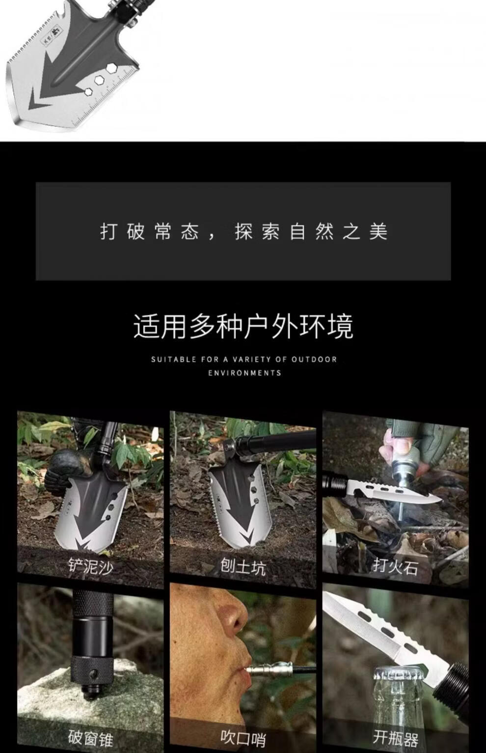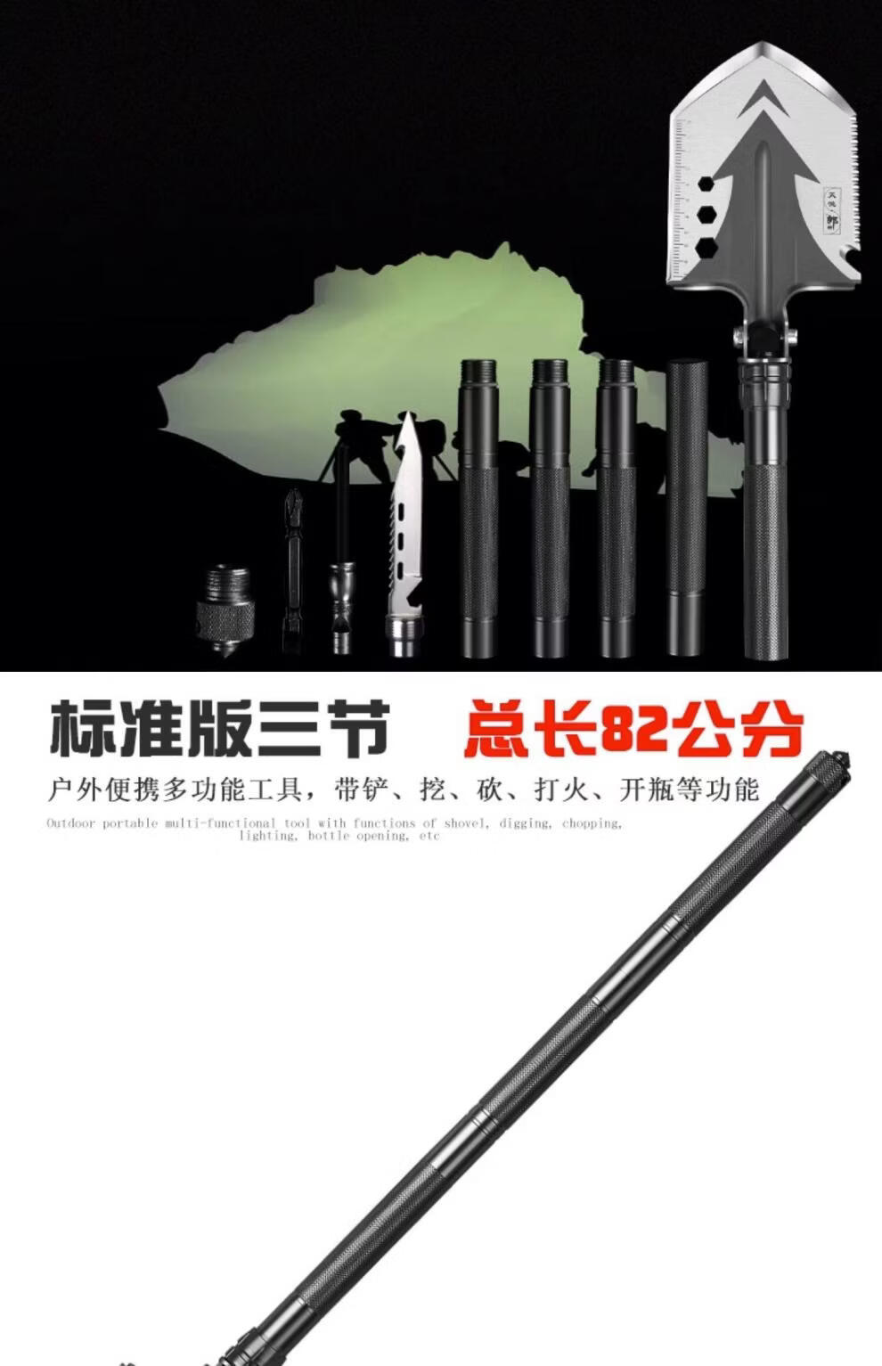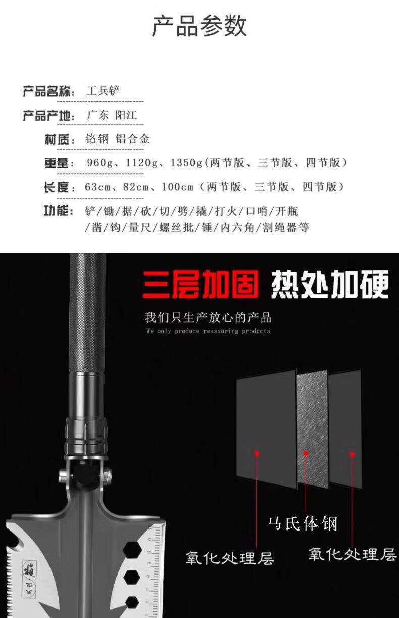 何佳功多功能工兵铲钓鱼户外锰钢加厚兵工铲子中国折叠车载露营铁锹 黑蓝色LS09 双锁 加厚【六节款143CM】+铲包+用断包赔