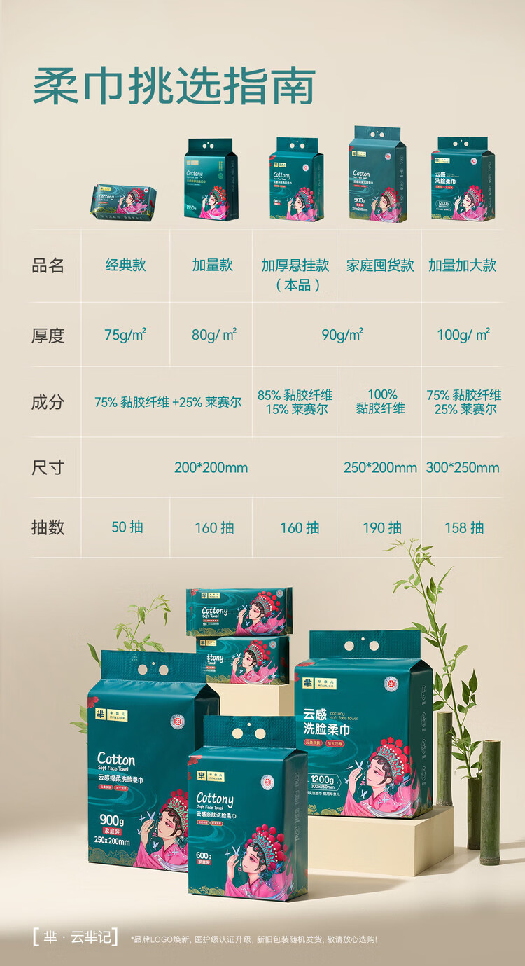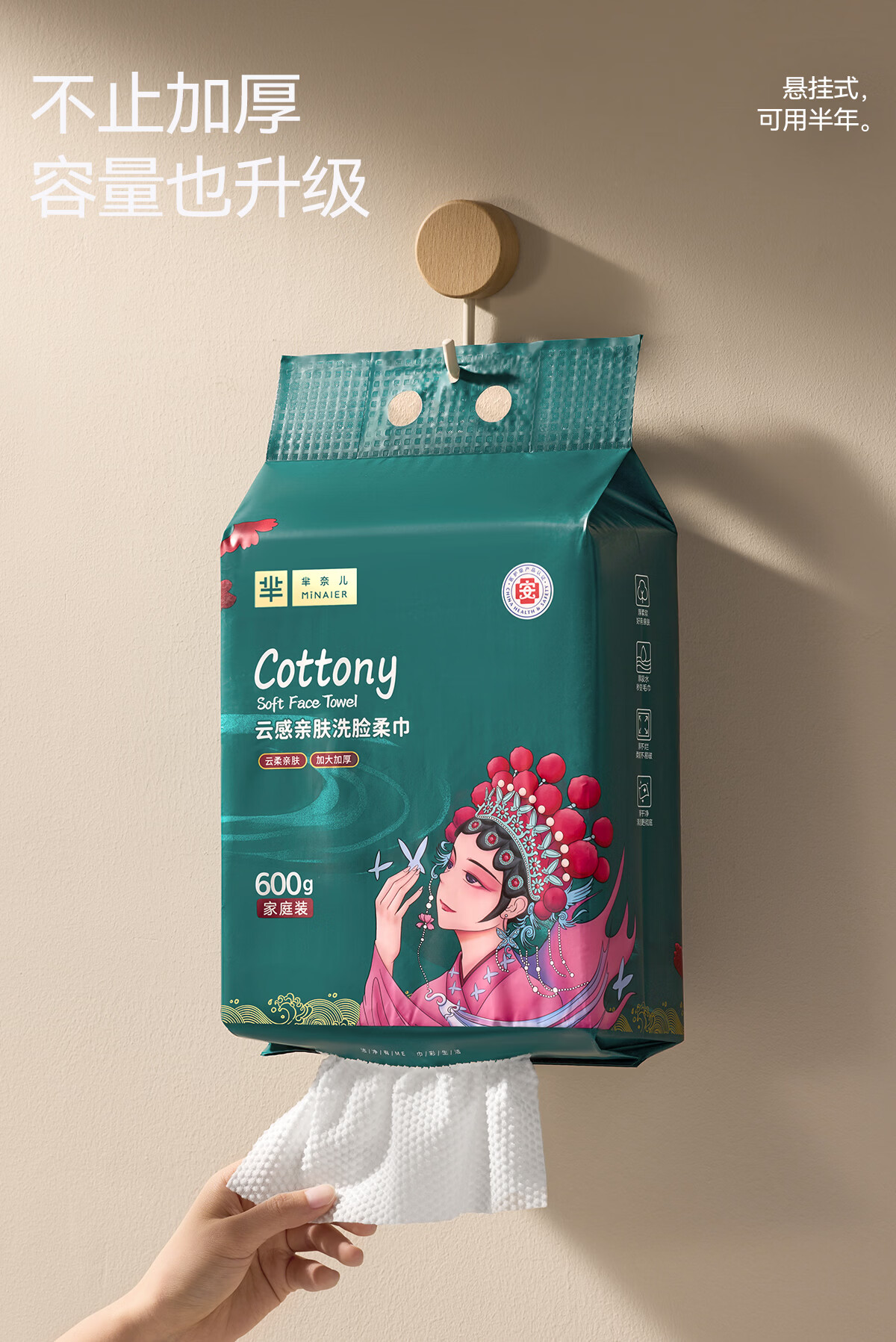 芈奈儿一次性洗脸巾壁挂式国潮系列加厚绵柔巾母婴可用卸妆洗面洁面巾 3提*【加厚90g/㎡】共1800g
