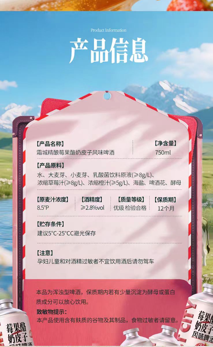 霜城莓果酪奶皮子芭乐柠檬黄油山楂750ml风味精酿啤酒凤梨海盐1L 莓果酪奶皮子 750mL 6瓶 整箱装